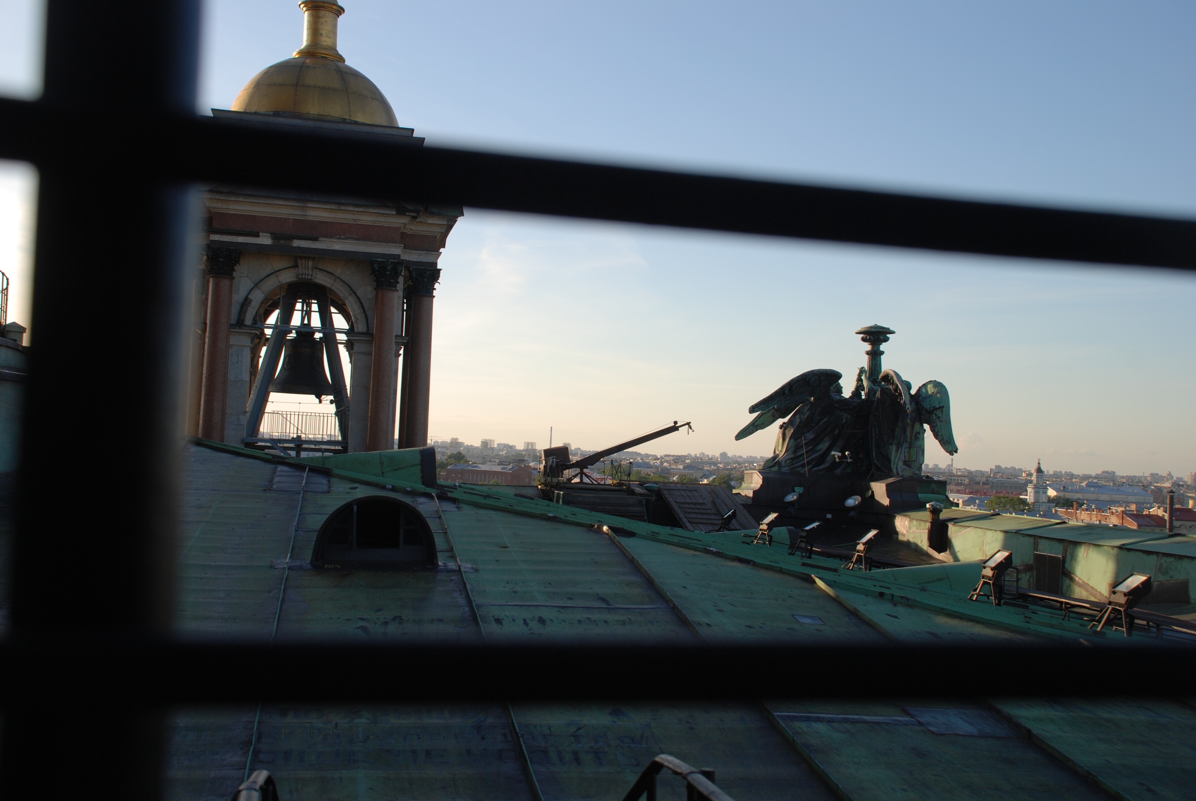 San Isaac es la catedral más grande de Rusia. Su cúpula dorada decorada con ángeles tiene un mirador con impresionantes vistas de la ciudad. San Isaac fue alcanzada por los bombardeos nazis durante el asedio de Leningrado, en la escalinata se conservan huellas del ataque.