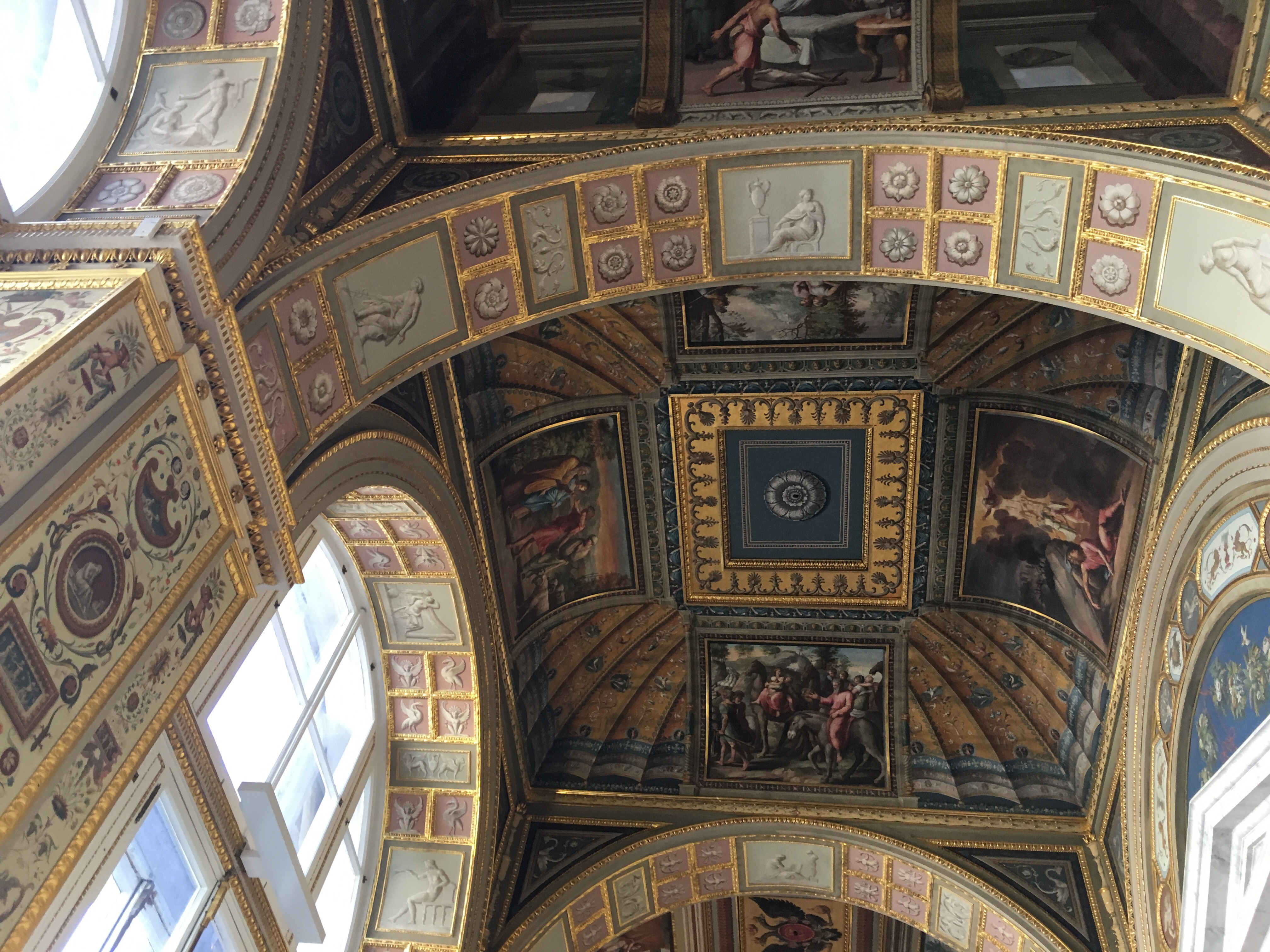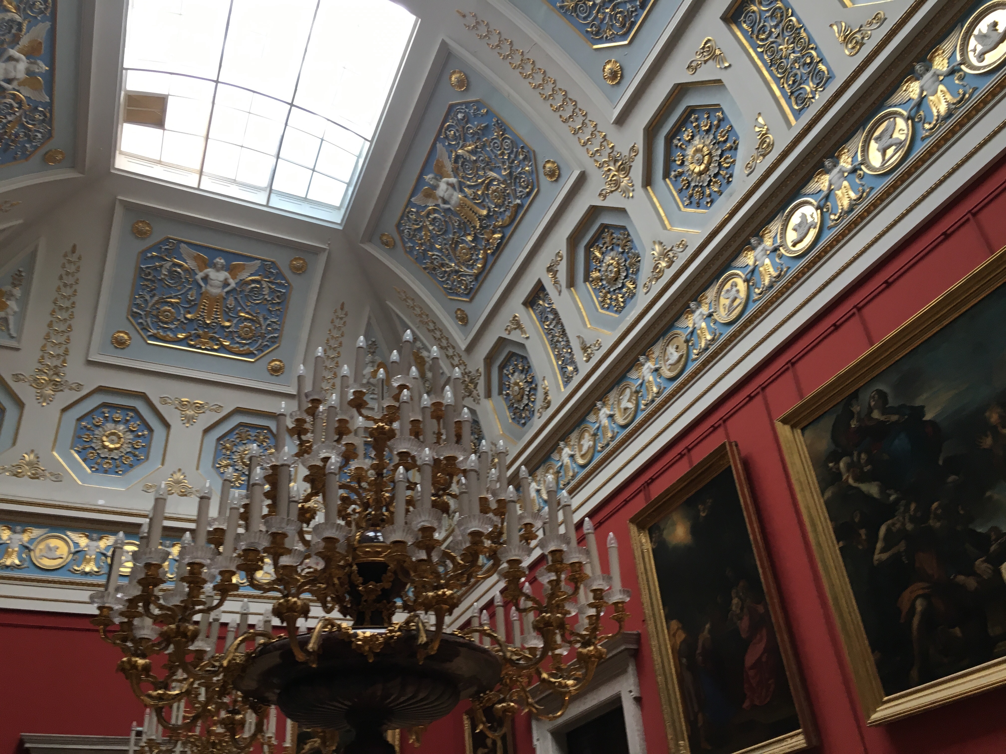 Increíbles salones, paredes y techos, la «sala de escudos», la «galería de la guerra», alucinante…Las salas de Rubens y de Leonardo. La «sala del pabellón» en el pequeño Ermitage con el reloj pavo real, increíble, las Logias de Rafael y la «Escalera de Honor» en el Nuevo Hermitage…