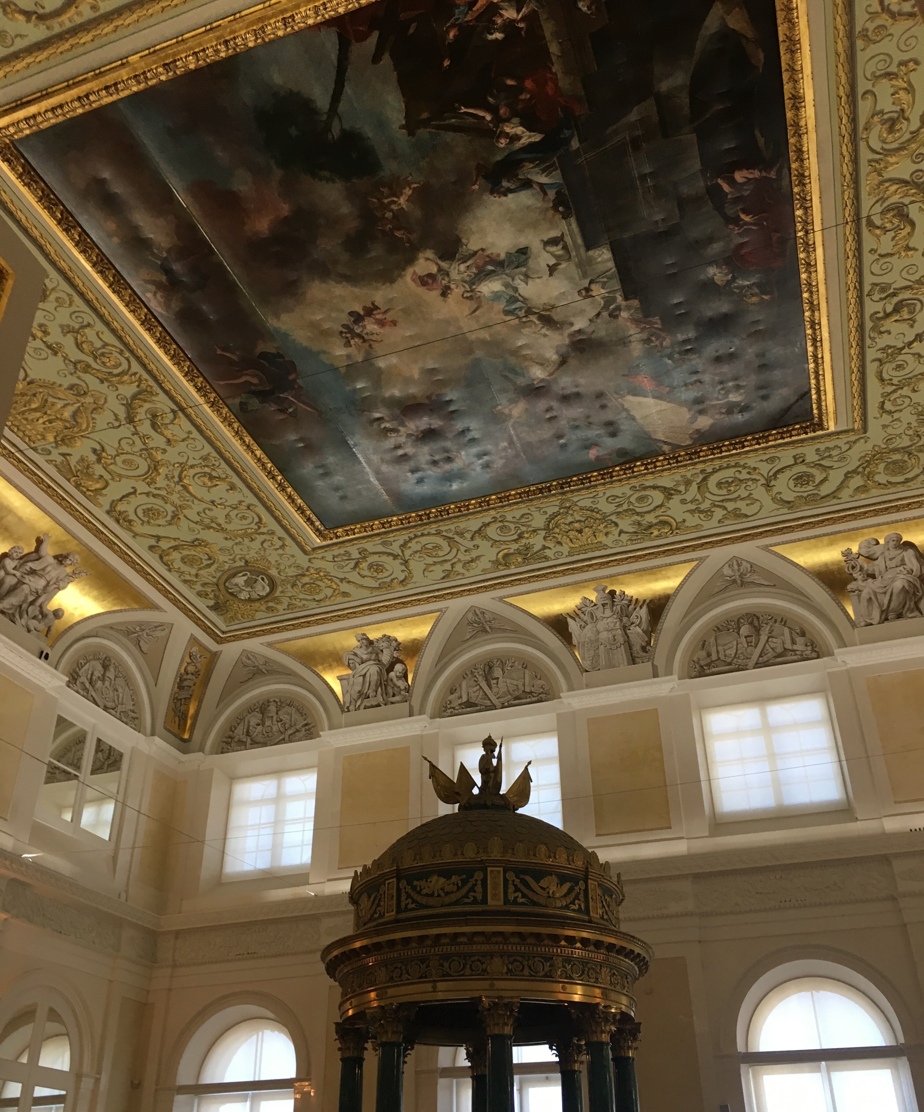 Increíbles salones, paredes y techos, la «sala de escudos», la «galería de la guerra», alucinante…Las salas de Rubens y de Leonardo. La «sala del pabellón» en el pequeño Ermitage con el reloj pavo real, increíble, las Logias de Rafael y la «Escalera de Honor» en el Nuevo Hermitage…
