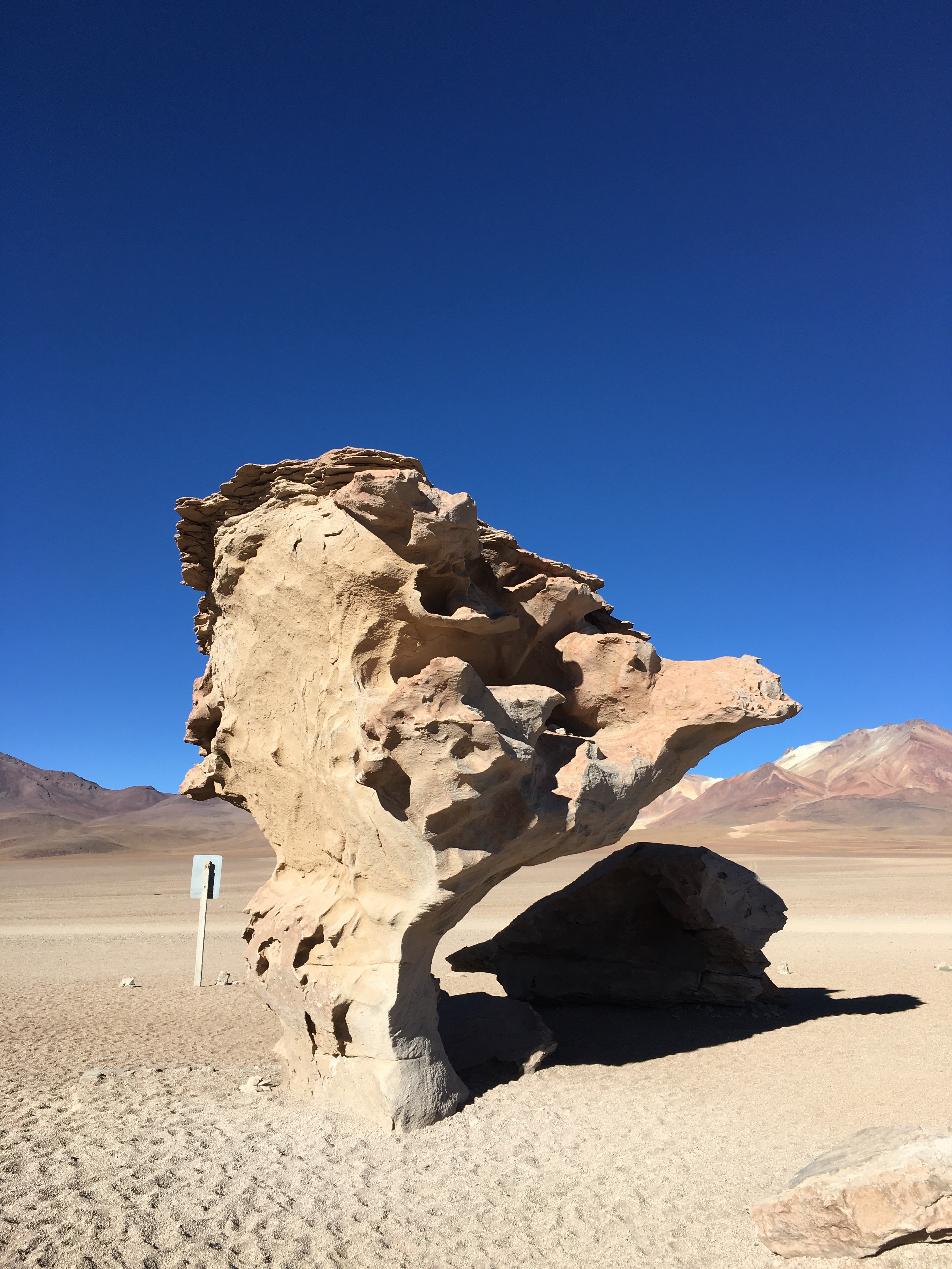 Salar de Uyuni: El salar de Uyuni es una experiencia inolvidable. Hicimos la excursión de un día por el Salar en jeep 4×4. (Hay excursiones de 1-2-3 días del salar+lagunas+desierto que puedes contratar en el mismo pueblo de uyuni o llevar contratada de antemano). Importante no olvidar: gafas de sol y protección de +50 o te abrasarás sin darte cuenta ya que no hace frío al sol. Este es el salar más grande de la Tierra, con una superficie de 12.000 Km2; el silencio, los surrealistas pentágonos de sal y la falta de perspectiva, te dejan sin palabras y te hace estar buscando la foto más rara y más curiosa durante un buen rato: haces el pino, saltas, te tumbas, te alejas…Y te da igual porque estarás solo, cada día salen tours y excursiones pero estas literalmente SOLO (Eso si, si buscas la foto del espejo, sólo la podrás realizar en época de lluvia a principios de año, o si ha llovido el día antes ya que se queda una capa de agua sobre la sal que hace el efecto). Únicamente encontrarás más turistas en la llamada isla «Incawasi», un oasis en medio del salar cubierto por miles de cactus gigantes, algunos con más de cien años, creciendo a una altura de más de 12 metros. Hay que subir hasta arriba, cuesta un poco por la altura pero la vista lo merece. En la parte de abajo de la isla tienes alguna tienda y unos baños muy concurridos (y bastante sucios. ¿Recuerdas el papel higiénico de antes?). El paisaje del Salar de Uyuni se pierde en el horizonte, la vista desde el Volcán Thunupa te deja boquiabierto. Hay excursiones que incluyen el amanecer y el atardecer, merece la pena, paisaje increíble. La noche la pasamos en hotel Jardines de Uyuni: es un hotel con encanto, habitaciones pequeñas pero con camas de 1,35 y muy confortables, desayuno muy bueno. Antes de dormir: unas cervezas en el «Extreme Fun Pub» local curioso para mochileros y guías donde comentar el día. Recuerda antes de salir de Uyuni parar en La Oficina de correos para mandar unas postales, tardarán casi un mes en llegar pero es un buen recuerdo.