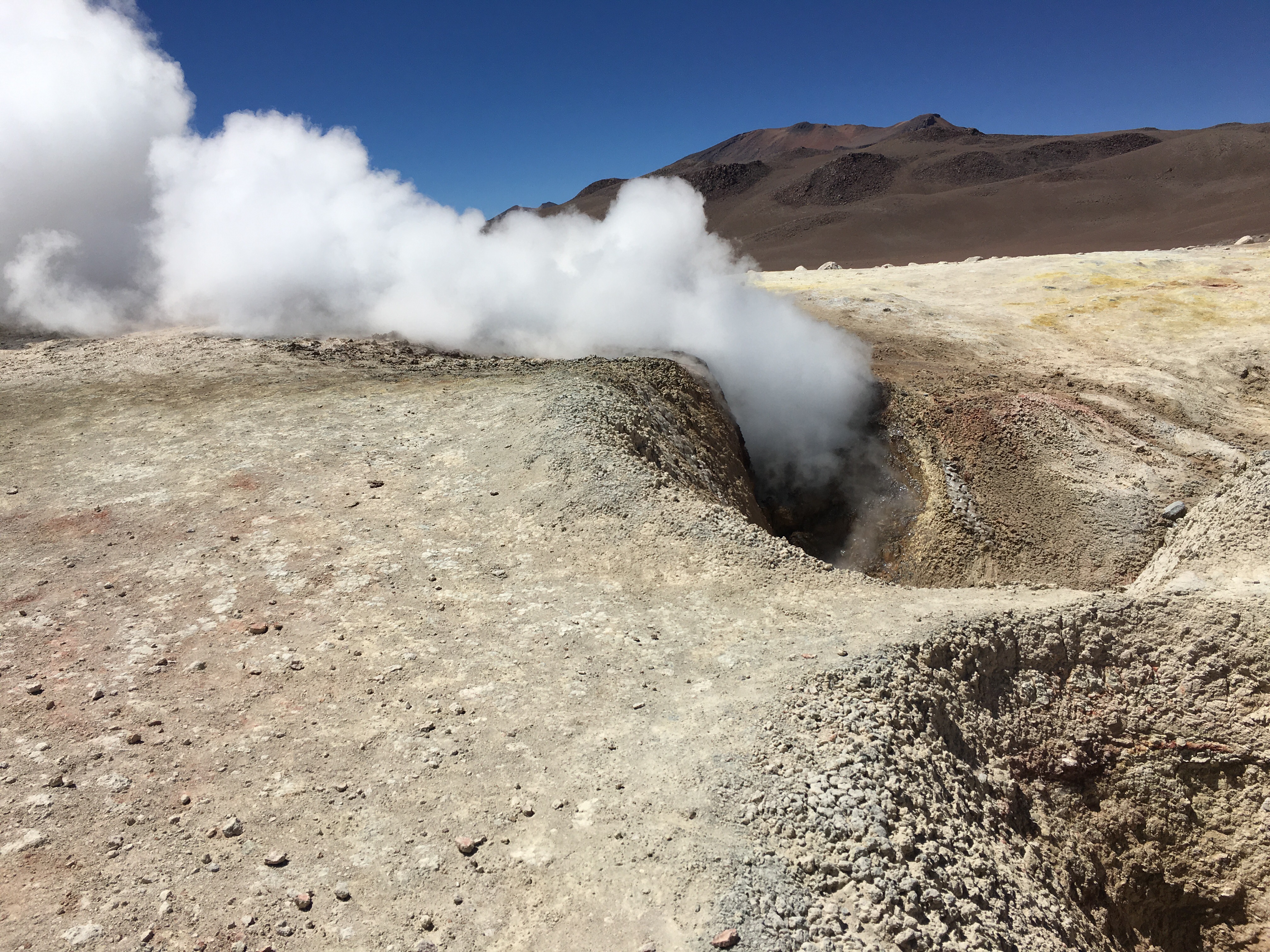 Visita obligada a los Geysers «Sol de la Mañana»: Géiseres, fumarolas y pozos volcánicos forman un conjunto espectacular. En los cráteres se puede observar lava hirviendo; las fumarolas emiten vapores mixtos de agua y vapor caliente. Este campo geotérmico está ubicado a una altitud de 4.900 msnm, así que antes de llegar hasta aquí tendrás que haber hecho una buena aclimatación.