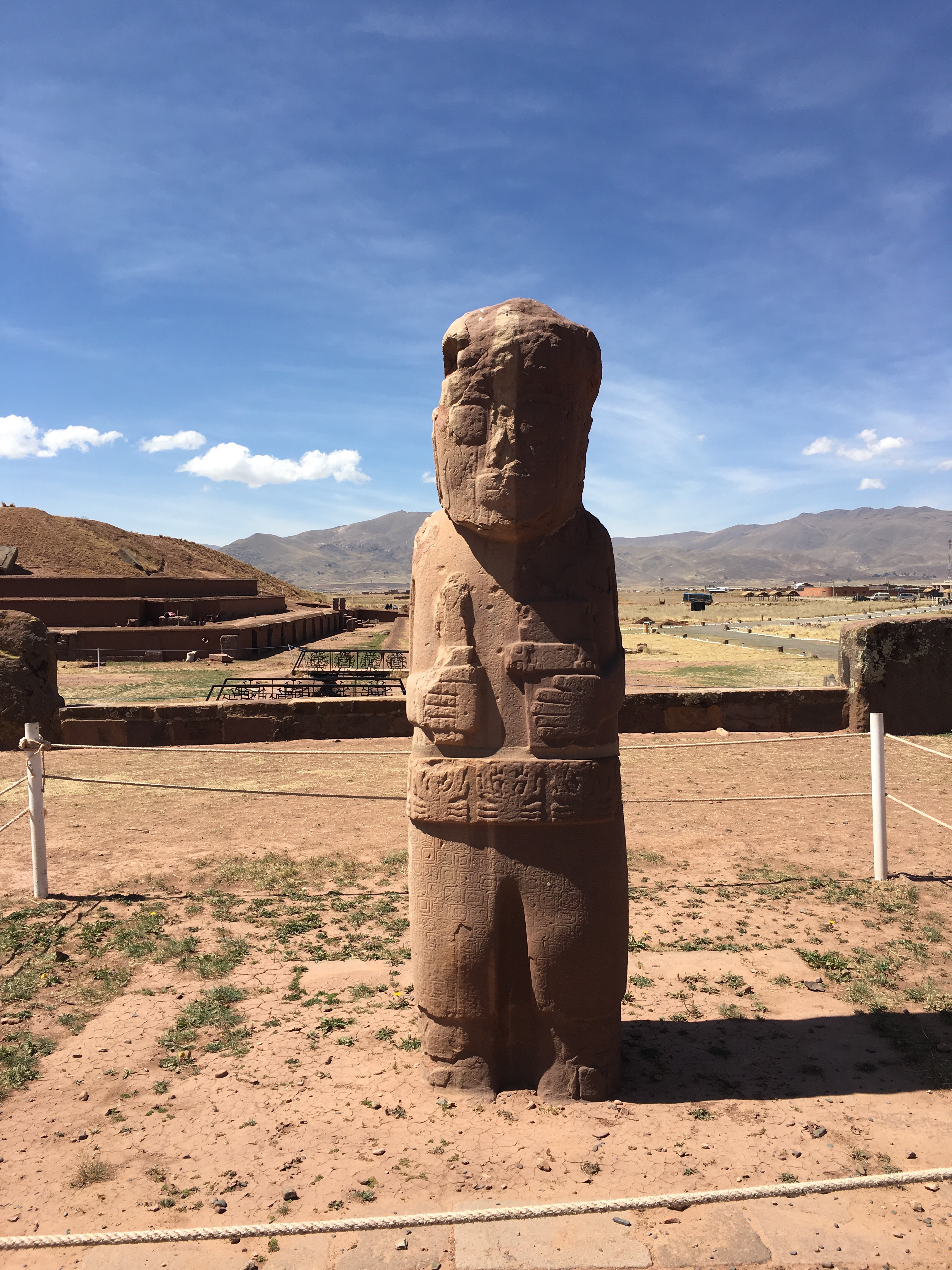 Desde La Paz también se visita el complejo de Tiawanaku (1.580 AC– 1.000 DC) a unos 70km (puede parecer cerca, y se puede hacer en autobús, pero hay que salir de La Paz, atravesar El Alto, que está en proceso de urbanizar…por decir algo y luego hacer los 70km, 2 horas con suerte). El centro de una civilización pre-incaica sustentada por una economía agraria, con una población estimada de 115.000 habitantes. Tiawanaku o Tiahuanaco se caracterizó por un amplio conocimiento de agricultura, hidráulica, arquitectura y medicina, así como por su destacada organización social. Debido a una crisis económica causada por una larga sequía, Tiawanaku colapsó alrededor del 1.000 DC. El complejo es impresionante, la Puerta del Sol y de la Luna, el templo de Kalasasaya y la pirámide de Akapana. Sus increíbles monolitos, uno de ellos de 7,30m de alto y tallado en un solo bloque (en el museo, tienen dos museos), impresionantes las cabezas clavas en su templo subterráneo (¿cabezas de extraterrestres?) Puma Punku es parte del complejo de Tiwanaku, en aimara su nombre significa «La puerta del puma» te sorprenderán sus piedras talladas con una perfección imposible para una comunidad que vivió hace más de 3000 años. Turistas casi ninguno. Excursiones de colegios y niños, bastantes