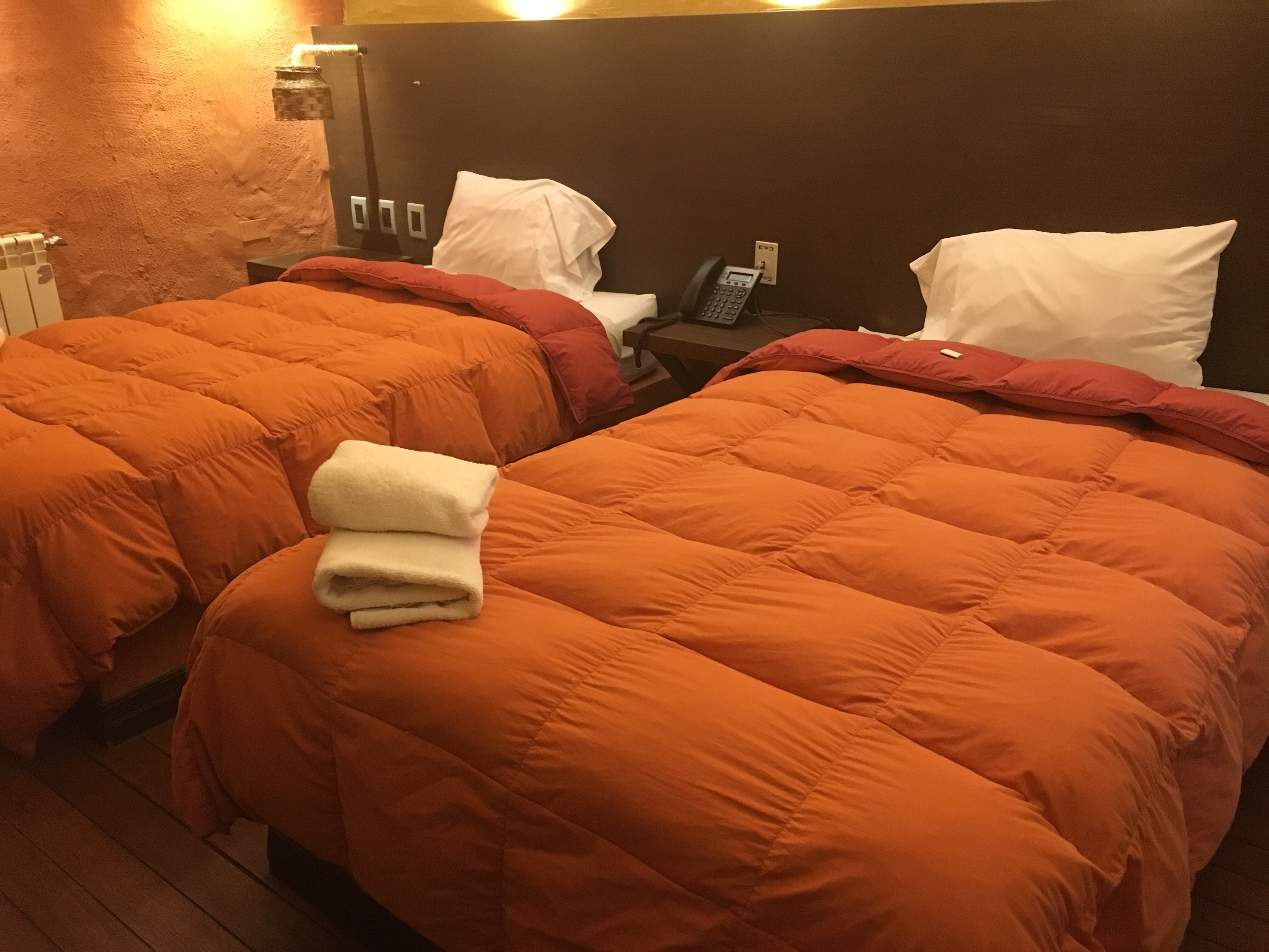 Hicimos noche en hotel Ojos de Perdiz (Tayka del desierto). Hotel a más de 4900msnm, lo que significa: agua, mate de coca, sorojchi pills (aspirina AAS) y tranquilidad. Es el punto más alto de toda la ruta y se nota, por el dolor de cabeza, y por el frío (bastante bajo cero de sensación térmica-en primavera) y el viento que sopla (plumífero, gorro y guantes, necesarios para la puesta de sol) Si vas, llévate o consigue un trípode, aquí el cielo nocturno es una maravilla, si te estás un rato podrás ver la vía láctea a simple vista. Fotografiarla es un reto. Necesitarás una linterna ¿te he dicho ya que no hay ninguna luz afuera?