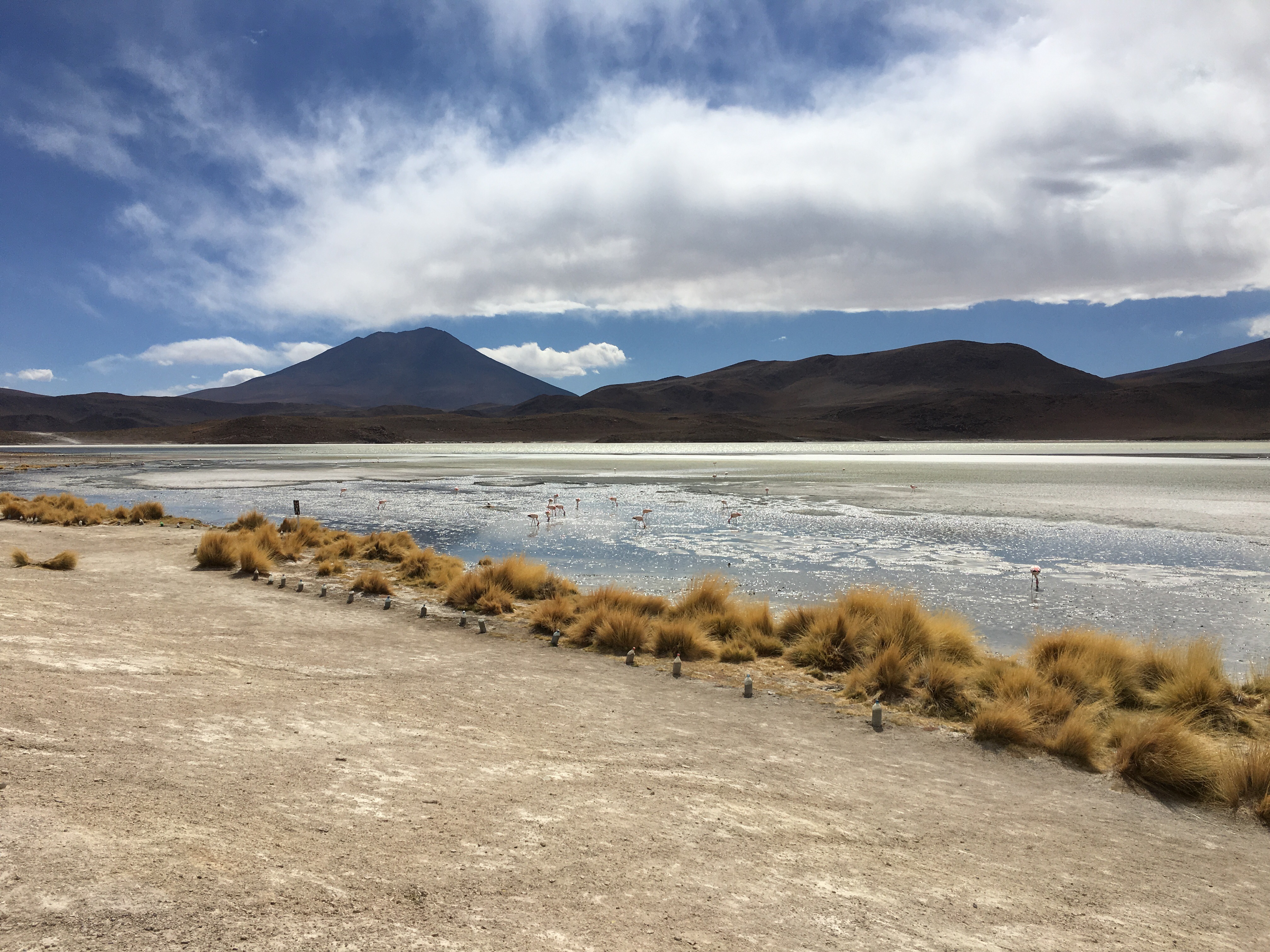 De Potosí nos dirigimos por carretera hacia Uyuni, para empezar al día siguiente la ruta por las Lagunas Mayores y Menores: Parada obligatoria en la ruta de las lagunas es la laguna Hedionda; denominada de esta manera por el alto contenido de azufre en sus aguas y pese a su nombre no huele tan mal y la fauna que se puede observar es increíble. En esta laguna hay una caseta con baños (muy mejorables. ¿Te he dicho ya que deberías equiparte con un rollo de papel higiénico? Esta es una muy buena recomendación) y una pequeña zona de picnic. Los sonidos de la laguna te dejan sin aliento. La Laguna Kañapa, laguna de agua salada, tiene una superficie de 1,42 kilómetros cuadrados aunque la mayor parte de esta es costra salina. Continuamos al Desierto de Siloli, km de piedras y silencio, donde con un poco de suerte podrás dar galletas a alguna vizcacha que asome a la carretera.
