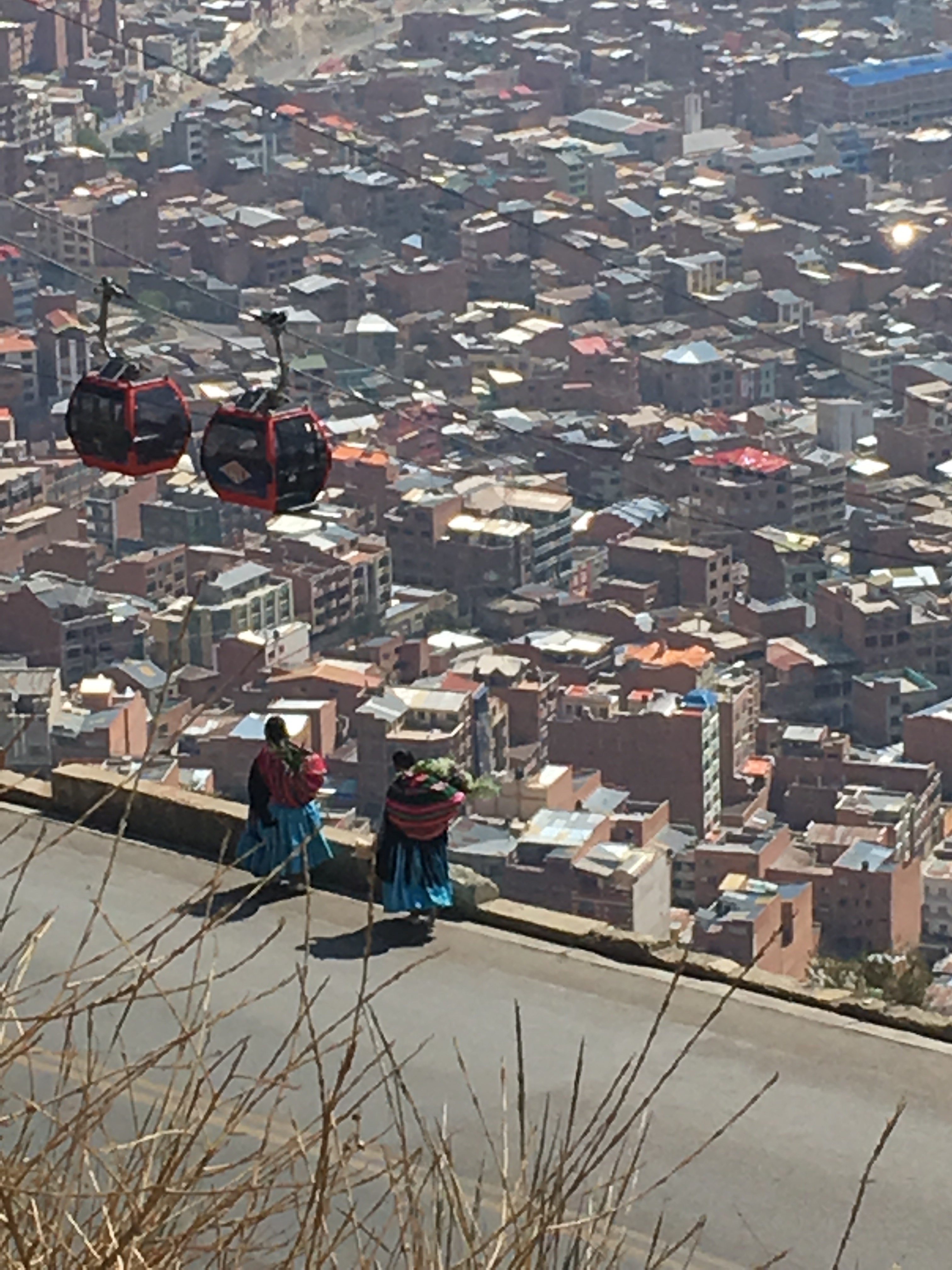 De Uyuni vuelo a La Paz. La Paz y sus alrededores transportan al visitante a un curioso lugar: caos de coches y gente, mercados indígenas, un mercado de pócimas secretas, ungüentos y polvos mágicos: el mercado de las brujas, la calle Sagárnaga donde encontrar cualquiera de los souvenirs que puedas querer y paisajes extraordinarios (El Alto, sin urbanizar donde destacan los «cholets» construcciones realmente curiosas (¿horteras?), la ciudad en cuesta y la majestuosidad del nevado “Illimani”. La visita al teleférico hay que hacerla. El Alto no es una zona recomendable, así que mejor no ir, es paso obligatorio para salir y entrar en la Paz, así que verlo, lo verás. En la Paz se puede visitar el Valle de la Luna, cuyas formaciones arcillosas se asemejan a la superficie de la luna (Después de todo lo visto, no resulta tan espectacular). A pesar de lo que pudiera parecer, en el centro tienes bares y restaurantes muy modernos para cenar y tomar unas copas.