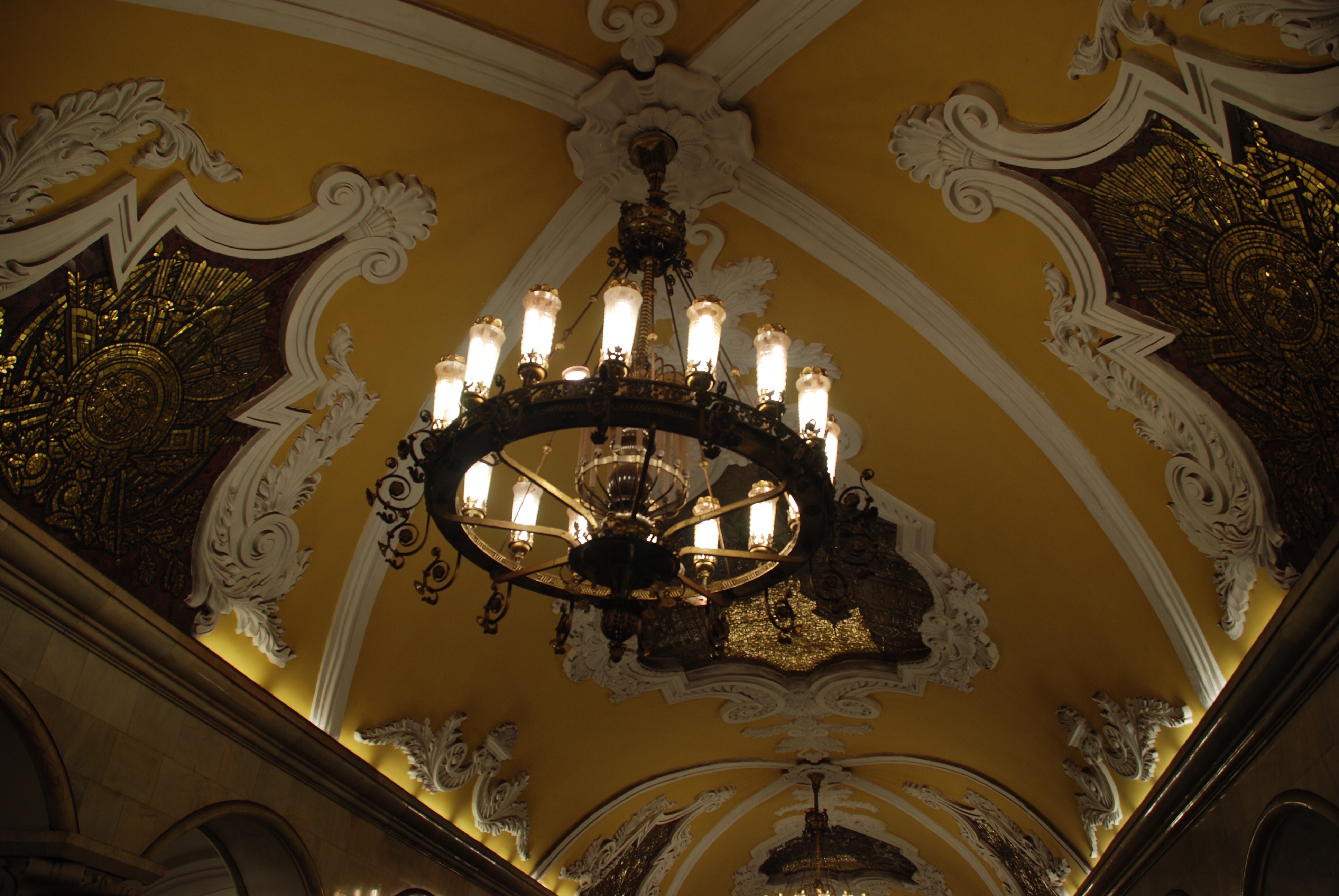 Las estaciones más bonitas son las siguientes: Komsomol’skaja (1952, la sala principal tiene una bóveda de 7m y 190m de longitud y está iluminada por gigantescas lámparas) Kievskaja (bajos pilones recubiertos de marmol blanco sobre los que encontramos grandes mosaicos con molduras doradas), Krasnye Vorota (Grandes columnas cubiertas de marmol rojo), Arbatskaja (con techos de estuco y lámparas de estilo tradicional ruso), Kurskaja (Dedicada al campo, el vestibulo central es increíble), Ploscad Revoljucii (una de las más famosas. Construida en 1939 bajo los 40 arcos del tunel destacan esculturas en bronce de los héroes de la revolución, una de las esculturas de un perro que acompaña a un guardia de frontera se dice que trae buena suerte si le frotas la nariz, al perro), Majakovskaja (Finalizada entre 1936-1939, los mosaicos presentan en 35 escenas la conquista del cielo por los deportistas soviéticos) Park kultury (popular por sus bajorelieves que representan diferentes deportes y juegos), Slavyansky Bulvar (con estilo art-nouveau y sus farolas, parece París)