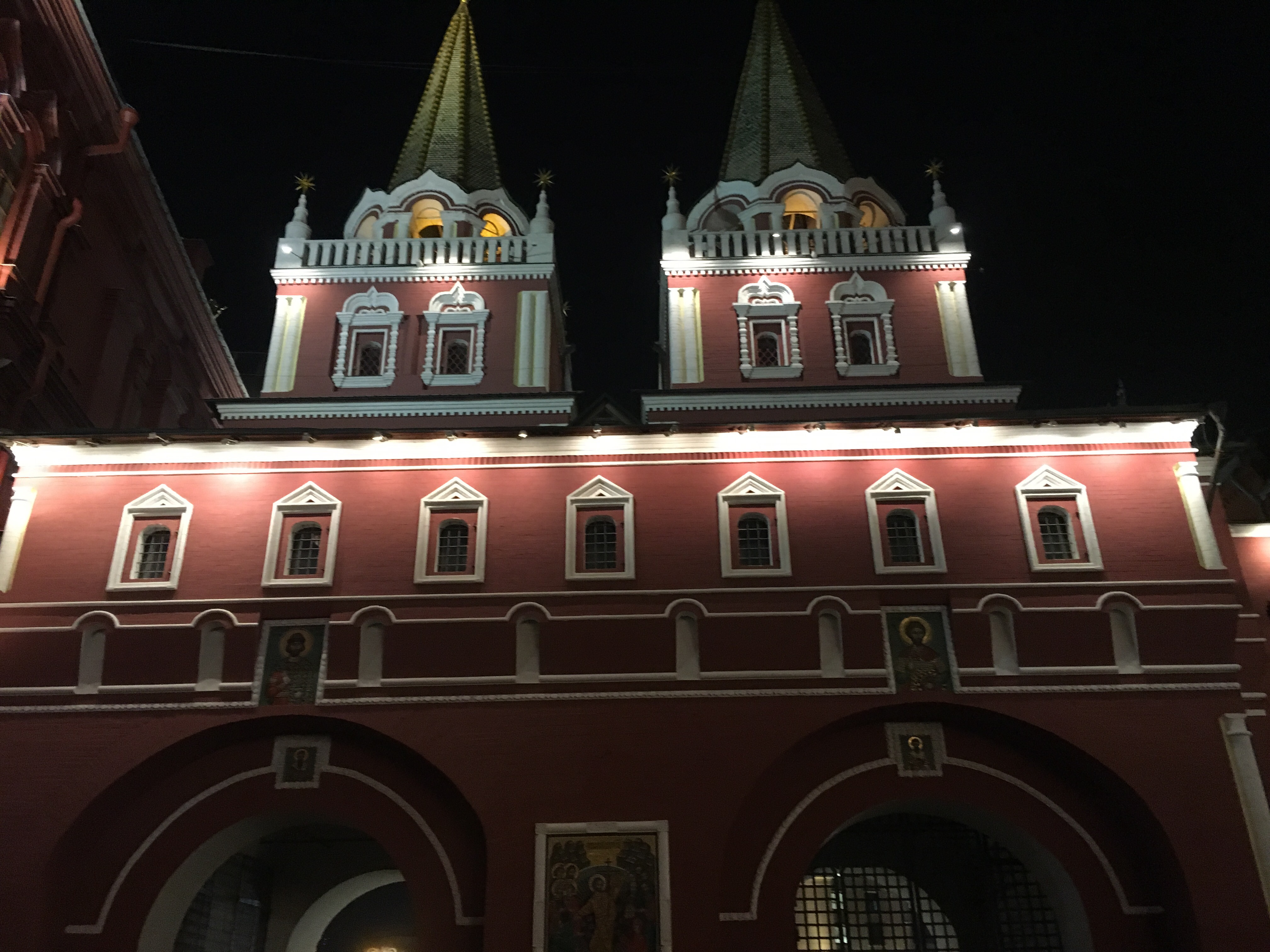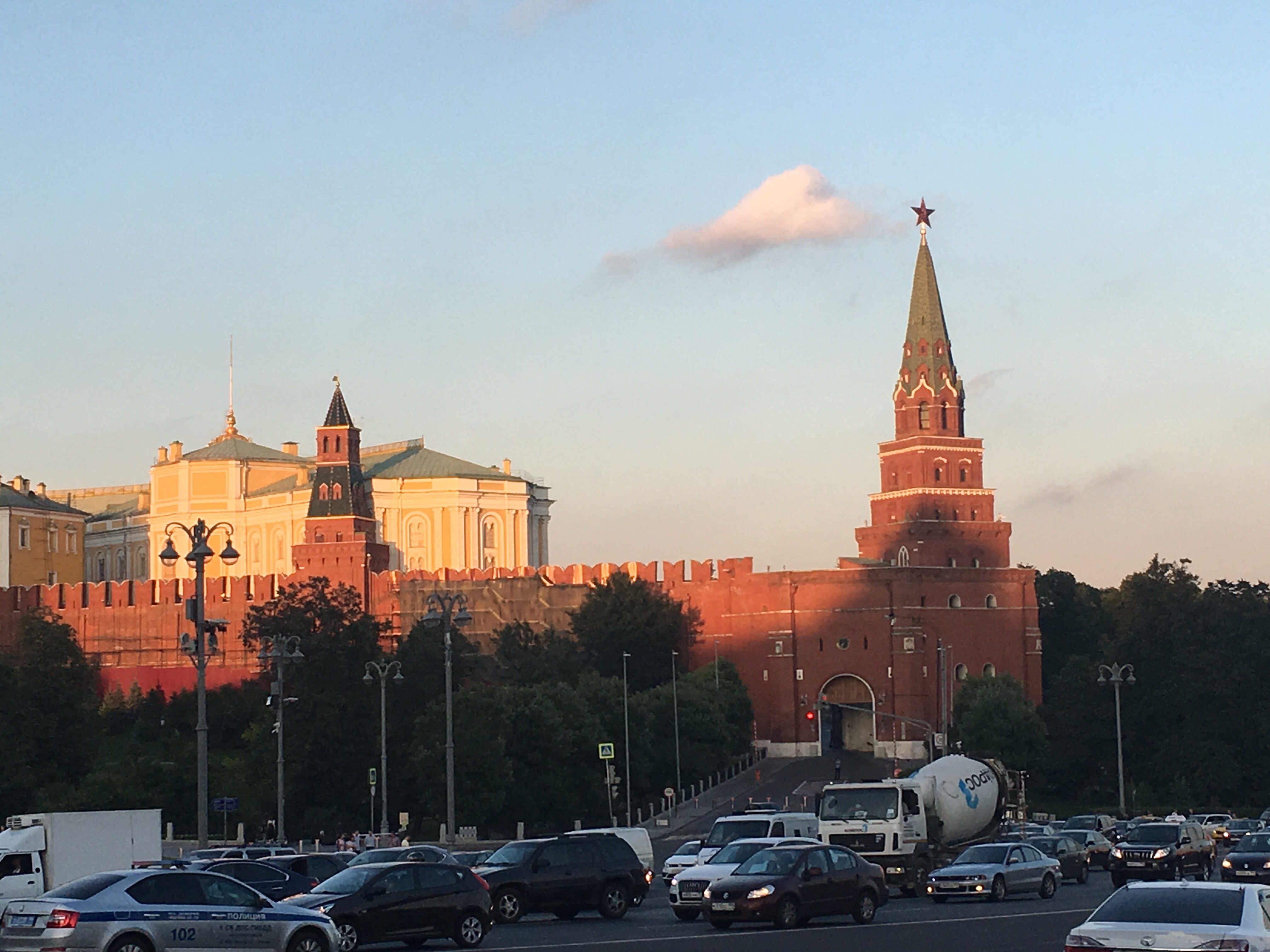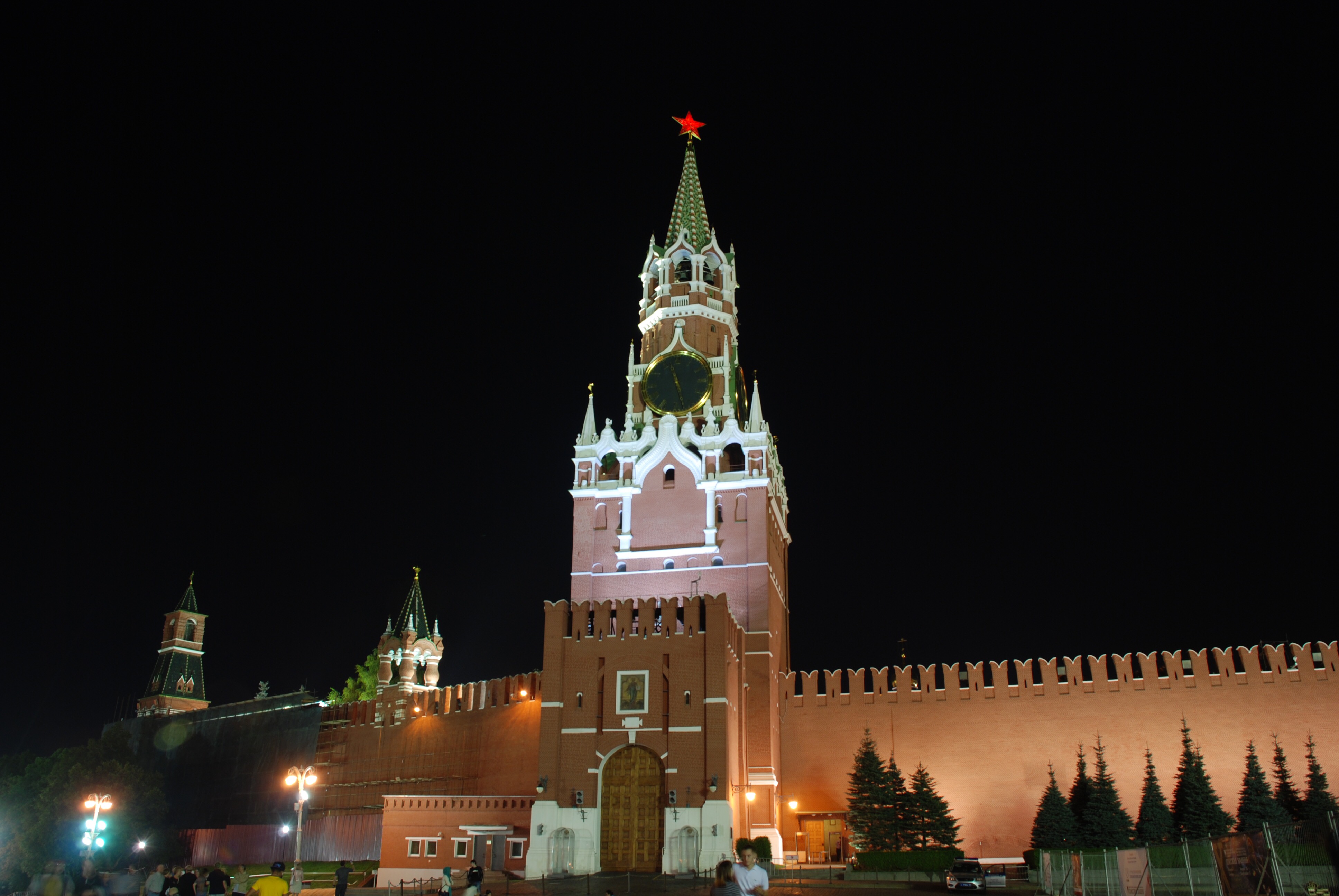 Las murallas son en ladrillo y tienen entre 8 y 17m. Increíbles. Sobre las 5 Torres más altas hay colocadas estrellas de rubi sintético sobre monturas doradas, la más pequeña pesa 1tn, las más grandes pesan 1,5tn están montadas sobre cojinetes de bolas y se mueven con el viento. ¿Te lo puedes creer? Yo tampoco. La Torre Spasskaia es la más bonita, es la que se encuentra frente a San Basilio y que era la entrada de los zares.