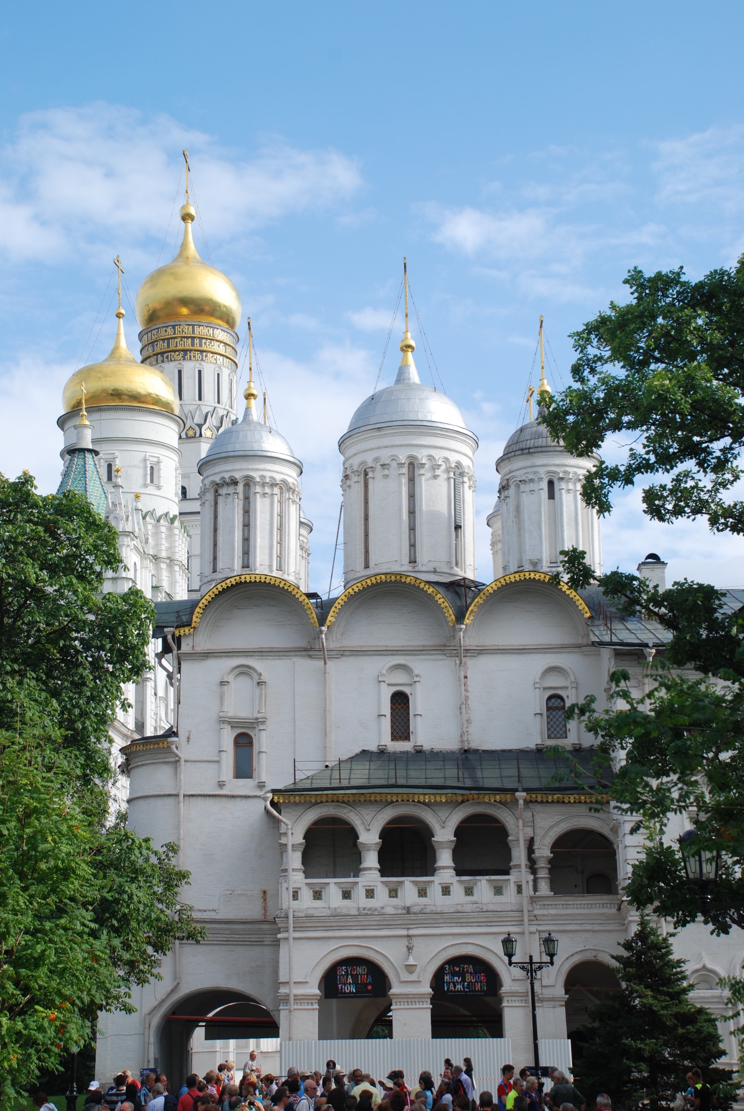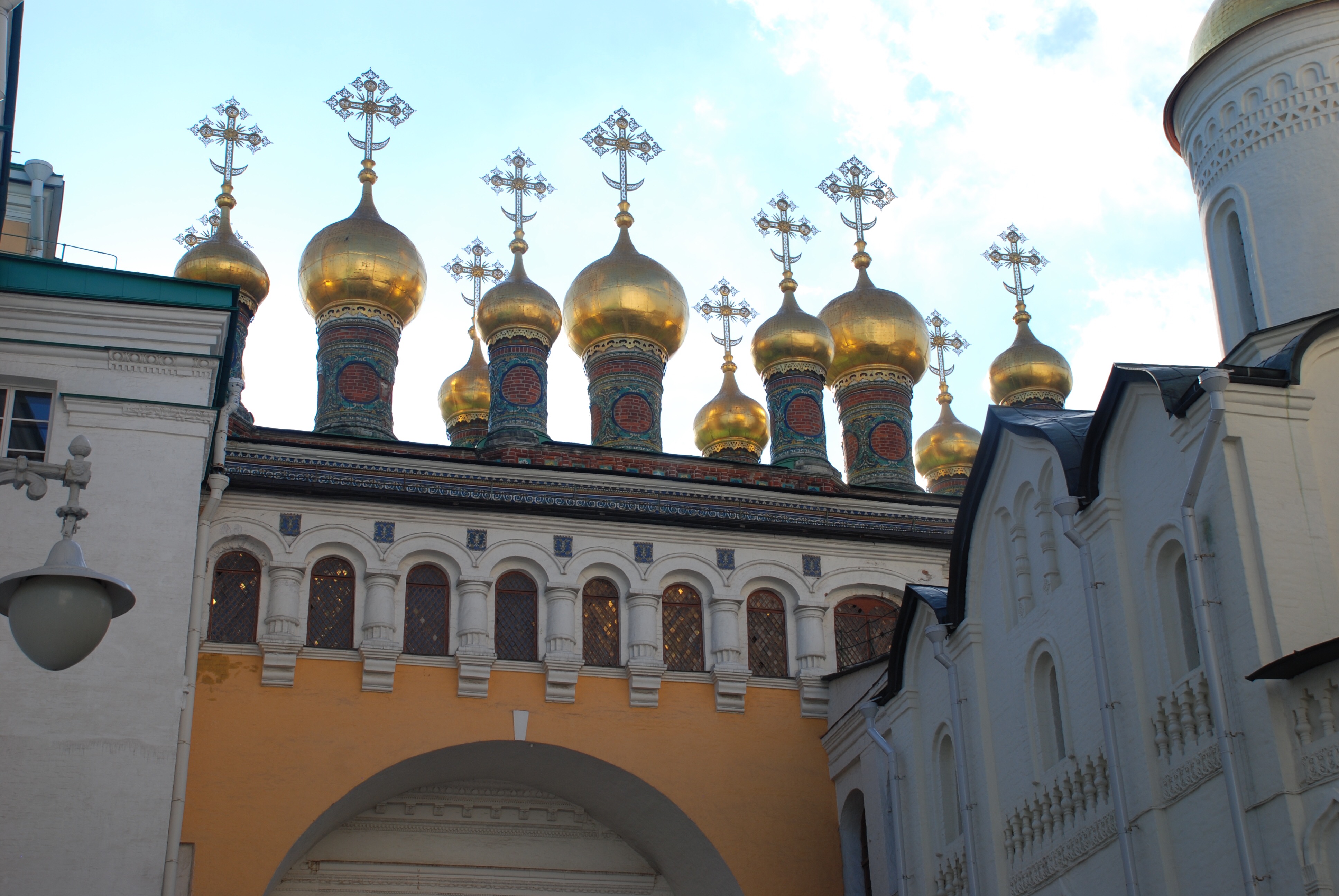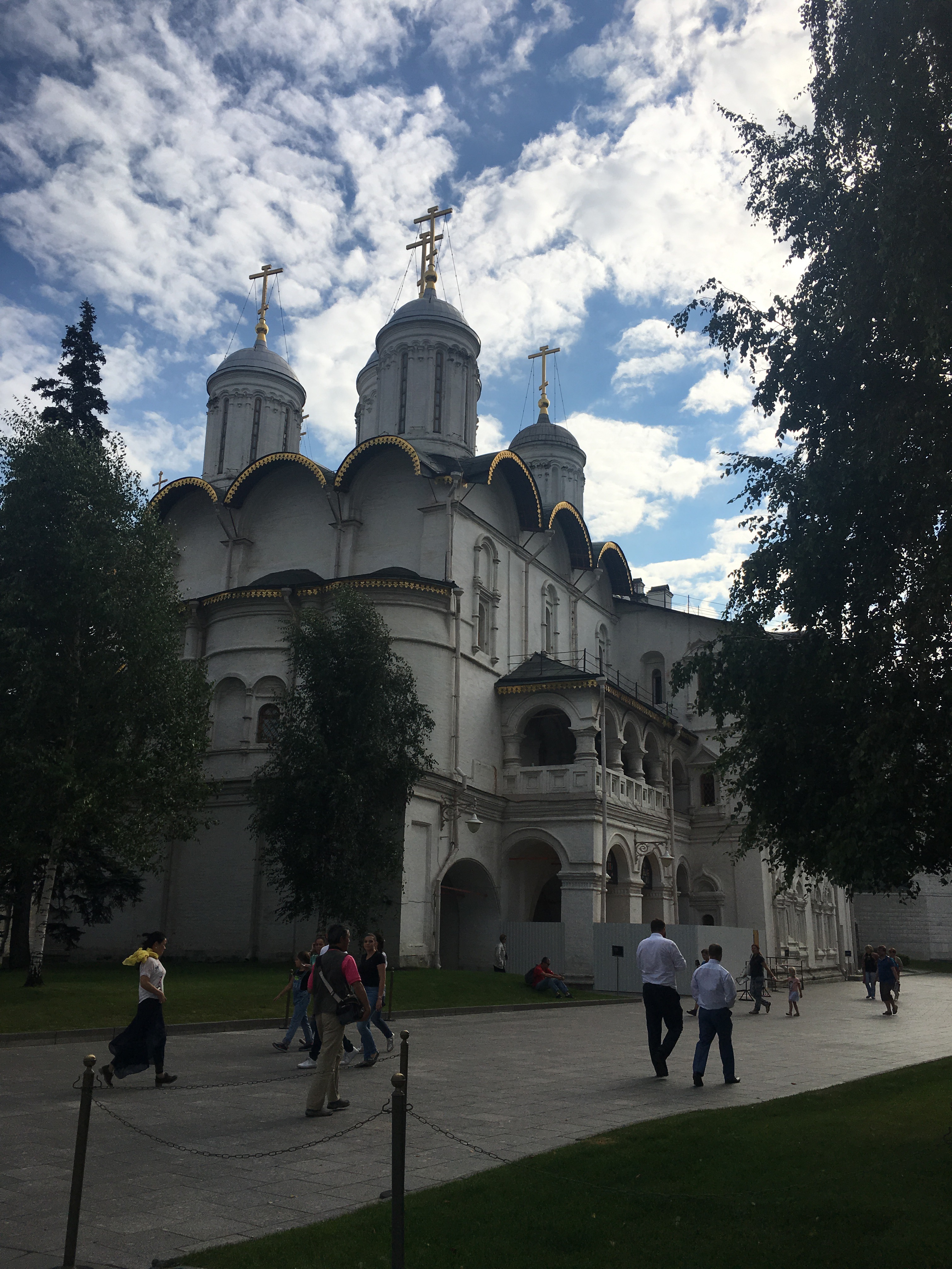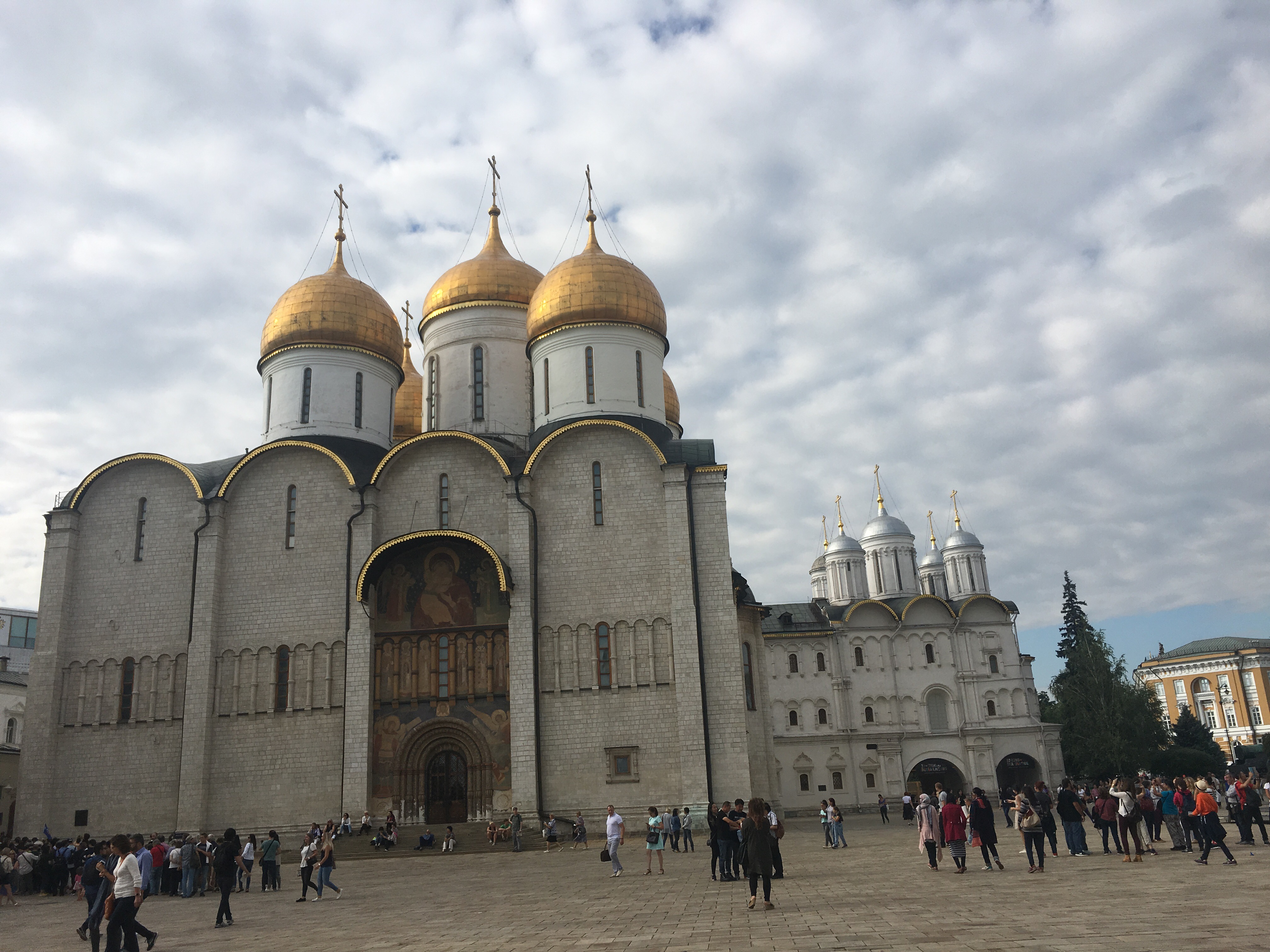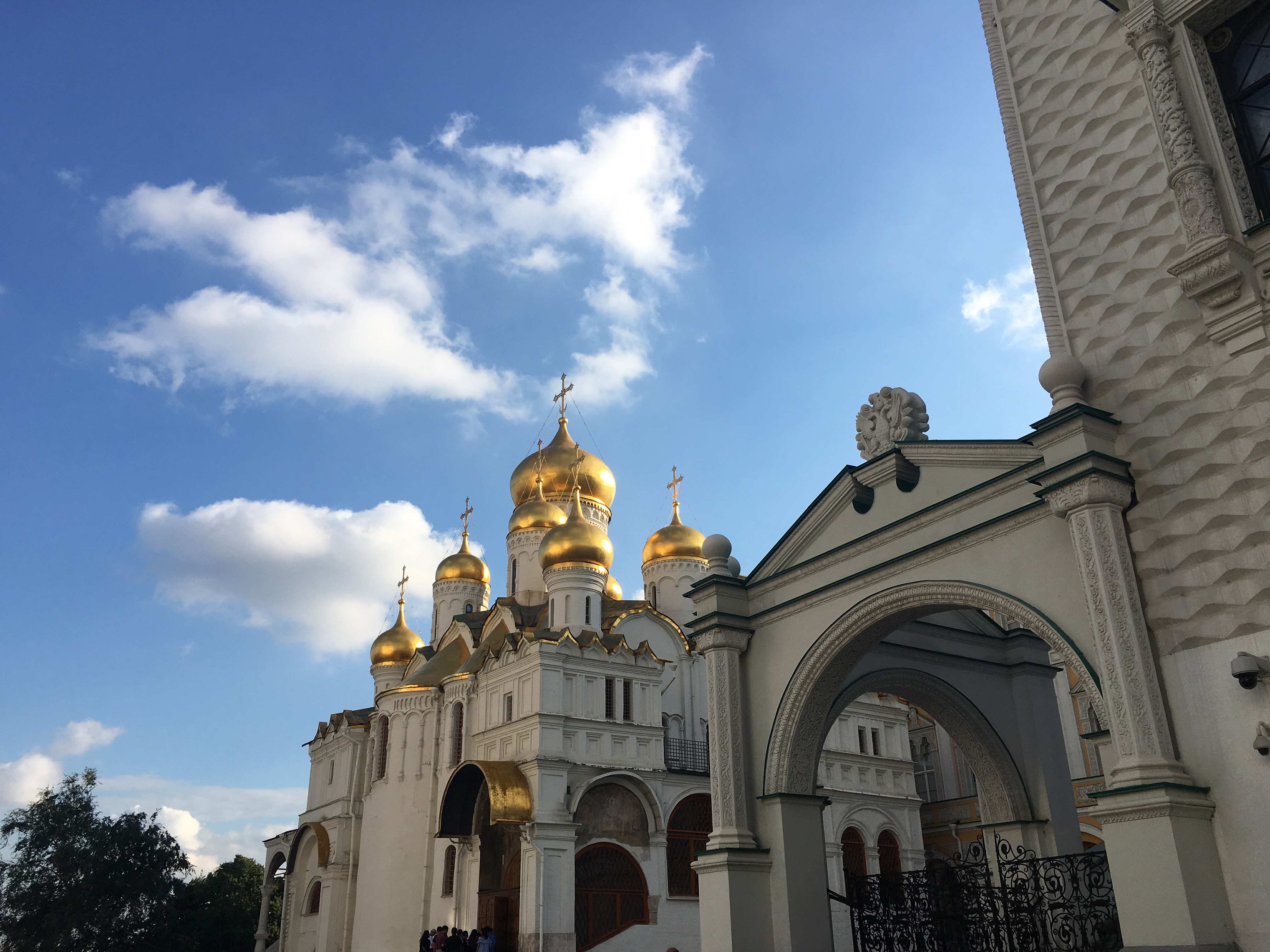 Pero lo más increíble es la Plaza de las catedrales donde encontrarás las 4 catedrales juntas: Catedral de la Anunciación (Con 9 cúpulas, estaba destinada a ceremonias de carácter familiar, su iconostasio es de los más espectaculares y antiguos, con casi 100 iconos en 6 filas, en el exterior, se ve una escalera cubierta en el lado izquierdo, la mandó construir Ivan el Terrible ya que se le prohibió el acceso con motivo de su tercer divorcio, desde esta escalera Iván seguía la Liturgia) Catedral del Arcangel Miguel (donde está el sepulcro más grande de príncipes y zares rusos, aquí está enterrado Ivan el Terrible), Catedral de los Doce Apóstoles (con 5 cúpulas, cerrada en 1918, hoy sirve como museo, sus dos arcos dan paso a la plaza de las catedrales) y la Catedral de la Asunción o de la Dormición (Coronada por 5 cupulas, donde se coronaban los zares rusos, realizaban ritos funerarios de patriarcas, elegían jefes de la iglesia, aqui se casó Ivan el Terrible con Anastasia Románova…) Increíble. Imposible hacer una foto/panorámica con las cuatro no lo intentes más de un par o tres de veces.