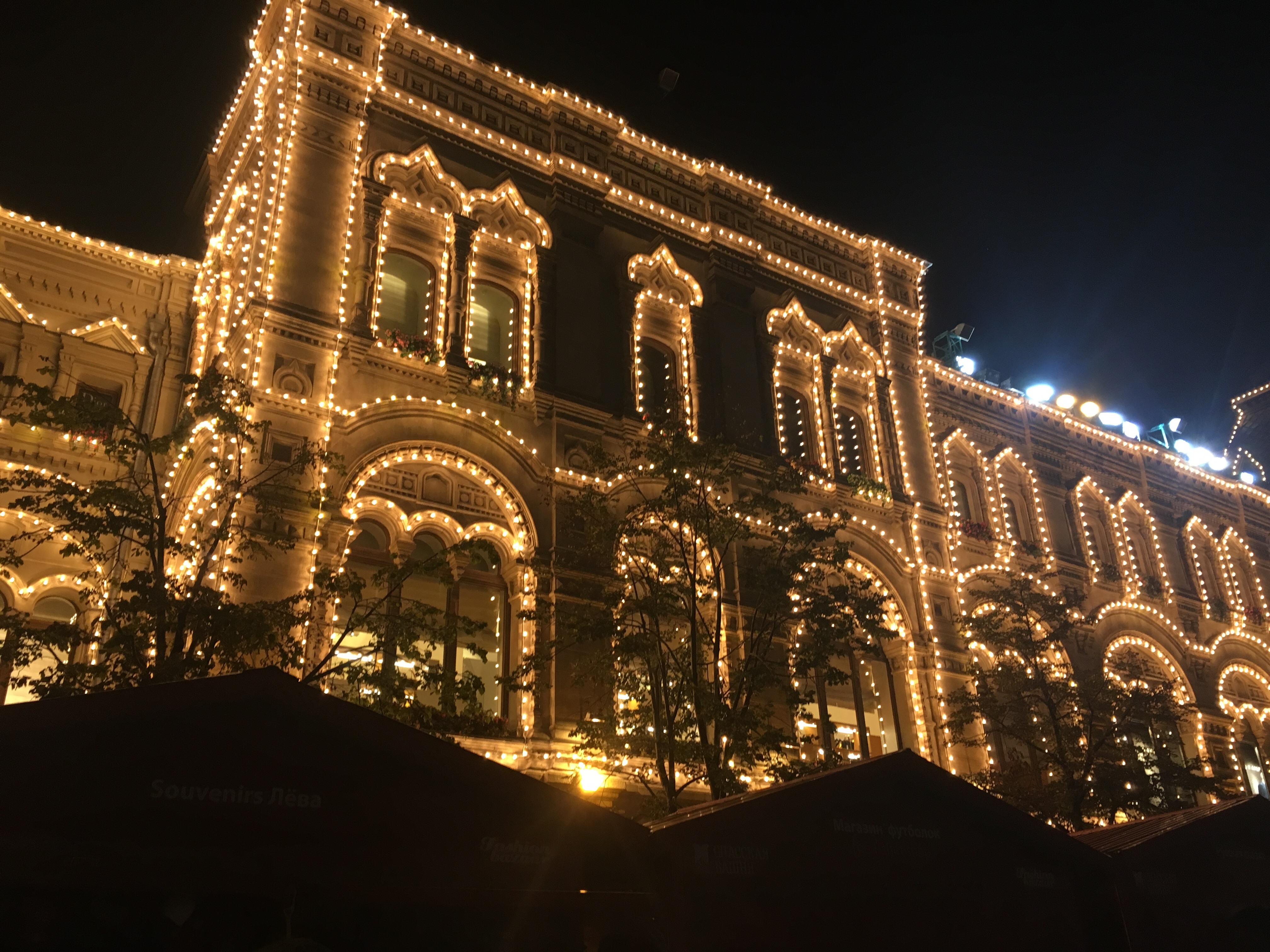 2. Recorrer la Plaza Roja: Impactante la plaza roja y los edificios que la bordean. Franqueada la entrada principal , donde está el «km cero», por el Museo de Historia y el Museo de la guerra de 1812, bordeada por los muros del Kremlin, el mausoleo de Lenin, la catedral de San Basilio y el GUM (centro comercial que queda increiblemente iluminado y que merece al menos una visita rápida por dentro, donde verás las tiendas más caras, un derroche de lujo y sofisticación. Abren de 10 a 22h). Antes de hacer la visita a Moscú, si únicamente vas a moscú y no es un viaje más largo, revisa que no haya una fiesta importante, festividad local, parada militar o algo similar, ya que en situaciones como esas, suelen cerra la plaza, y no se puede visitar ni apreciar en su magnitud, igual puedes cambiar la fecha. Para la visita al Mausoleo de Lenin prepárate a hacer cola (la entrada es gratuita, así que la cola hay que hacerla, aunque va rápido, porque no te puedes parar, ni hacer fotos…). Es obligada la visita por la noche a la plaza. Se puede acceder a la misma desde varios puntos y hay varias paradas de metro que te dejan cerca: OHOTNYJ RJAD y PLOSCAD REVOLJUCII son las más cercanas. Cuidado porque a veces les da por cerrar la plaza por organizar a la gente, despejar…o quién sabe, generalmente abren en un rato otra vez.