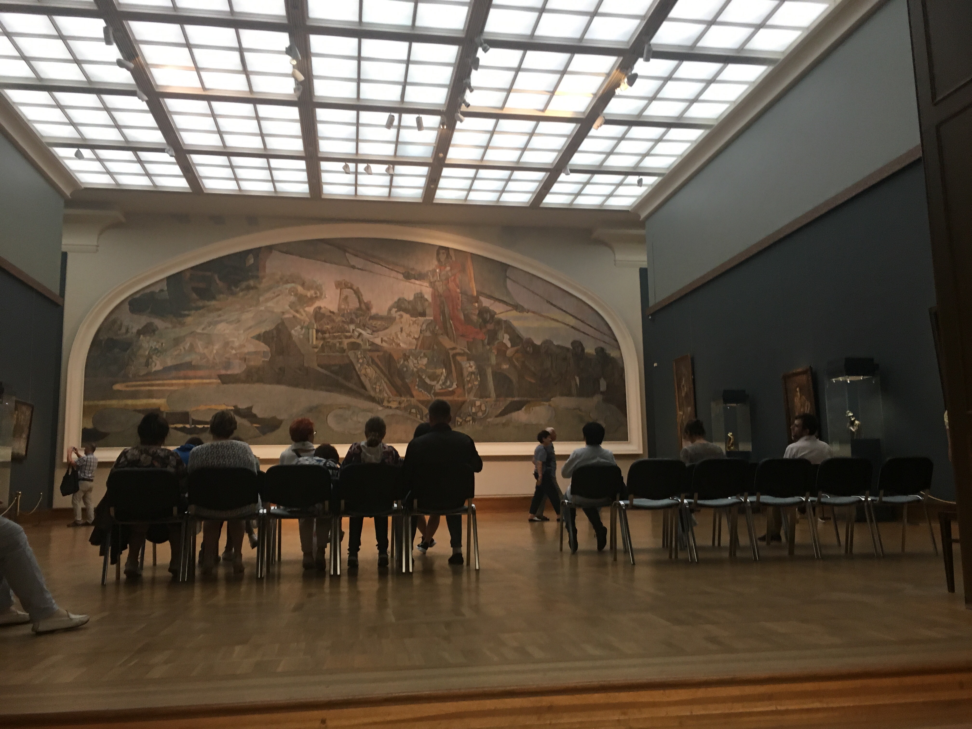 8. Descansar de turistas entrando a última hora en el Museo Estatal de Bellas Artes, Pushkin. El museo se encuentra bastante cerca del Kremlin, y casi al lado de la Iglesia del Cristo Redentor así que deberías aprovechar el día de la visita al kremlin o a la Iglesia para acercarte. El museo tiene varios edificios en la misma calle, el edificio principal en la calle Voljonka nº12, tiene replicas en yeso de grandes obras maestras (en definitiva fue fundado como museo didáctico para los estudiantes de bellas artes) así que no tiene más interés que el visual, sin embargo en dicho edificio principal se puede ver el famoso Tesoro de Príamo (Tesoro de Troya de Schielemann) disputado por varios países y que había desaparecido tras la II Guerra Mundial y que es reclamado por Alemania, Grecia y Turquía y algunas obras maestras de Rembrandt, Rubens, Rivera, Zurbarán, Murillo…En el Palacio ubicado en el nº14 de la misma calle tiene una colección con obras que van de los impresionistas hasta el S.XX: Manet, Degàs, Lautrec, Monet, Renoir, Van Gogh y algunas obras de Picasso, Gaugin, Matisse, Delacroix, Goya..Merece la pena una visita, las dos entradas son por separado pero no suman más de 800RUB. Si vas a última hora en verano (cierran a las 20h, a las 21h los jueves, ojo última admisión a las 19h en los dos casos) podrás tener una bonita fotografía del kremlin con la luz del atardecer. Las paradas de metro más cercanas son: Kropotkinskaya (casi en frente), y Borovitskaya.