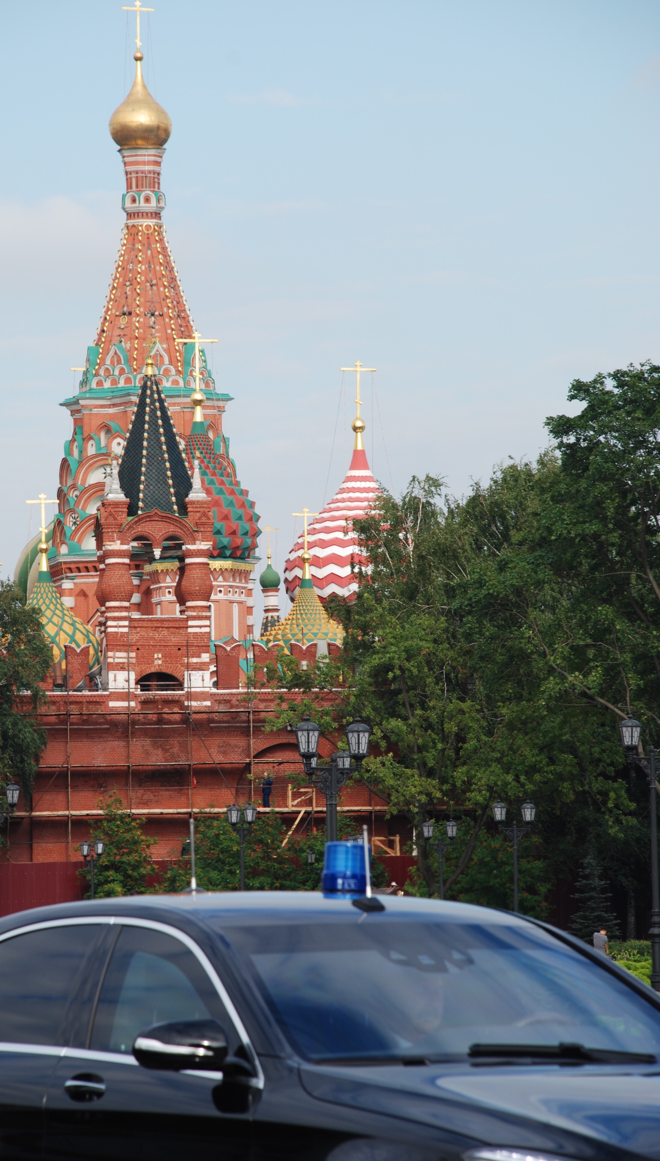 Las murallas son en ladrillo y tienen entre 8 y 17m. Increíbles. Sobre las 5 Torres más altas hay colocadas estrellas de rubi sintético sobre monturas doradas, la más pequeña pesa 1tn, las más grandes pesan 1,5tn están montadas sobre cojinetes de bolas y se mueven con el viento. ¿Te lo puedes creer? Yo tampoco. La Torre Spasskaia es la más bonita, es la que se encuentra frente a San Basilio y que era la entrada de los zares.