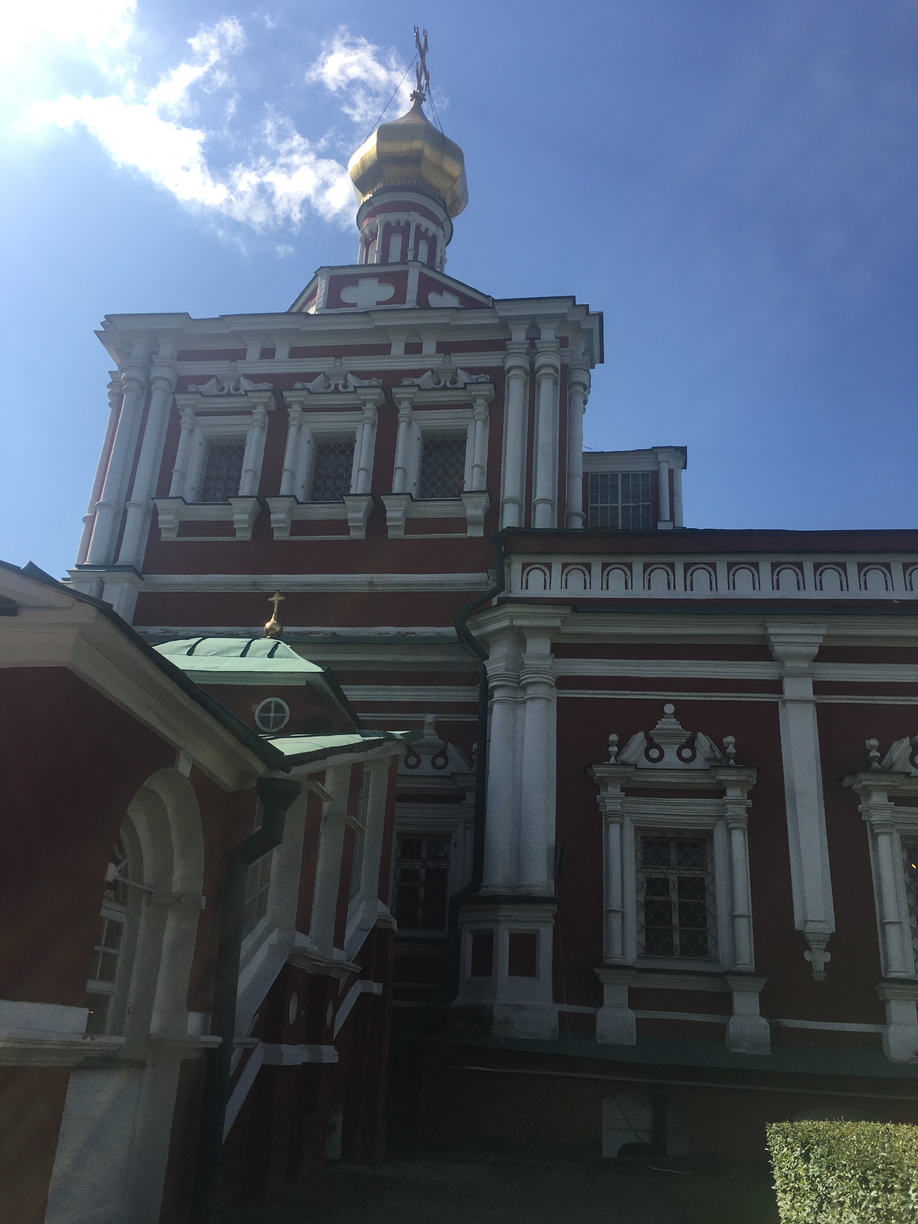 11. Pasear por el Monasterio Novodevicij y sacarte fotos Junto al río. A un paseo de la parada Sportinavnaja y Patrimonio de la Humanidad de la UNESCO desde 2004. El convento más rico de Moscú en el que tomaron sus votos menos voluntariamente que más, algunas zarinas (hijas del Zar) y algunas hermanas y esposas repudiadas de los zares, viudas de nobles…la Iglesia de Smolensk es la Iglesia de la abadía. La mayor parte de complejo se encontraba en obras y con andamios. En el patio se observan las lápidas de las mujeres obligadas por Pedro el Grande a recluirse en el monasterio: su hermana, una esposa repudiada y la hermanastra. En el complejo hay otras cuatro iglesias. Al lado del monasterio pero con acceso independiente encontrarás un cementerio con ilustres nombres, entre ellos Boris Yeltzin y Nikita Jruschov.