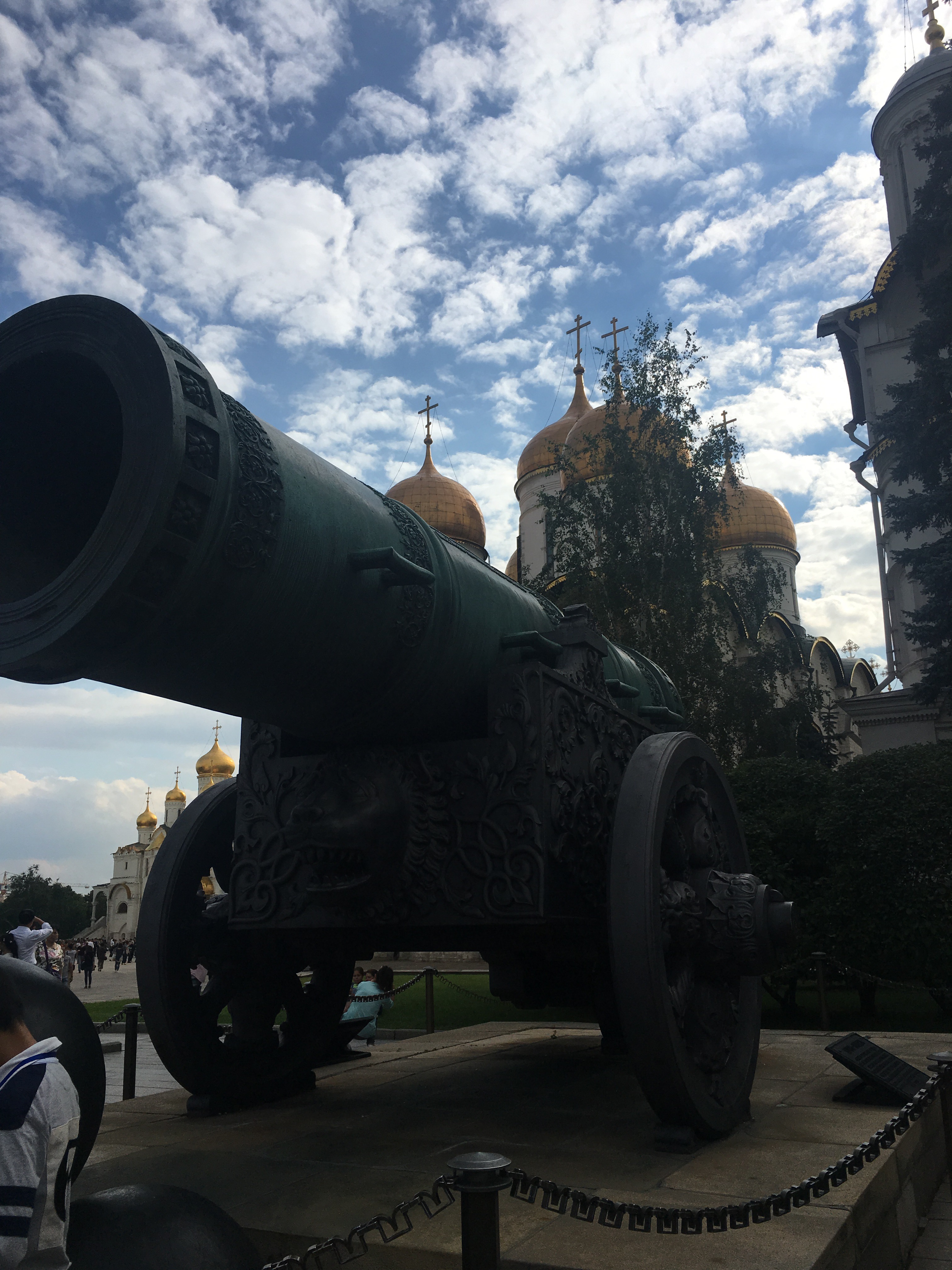 En la misma plaza nos encontramos con el Zar de los Cañones de 40tn que no se usó nunca por defecto de fabricación y más adelante la Zarina de las campanas, la mayor del mundo que pesa 211 tn.