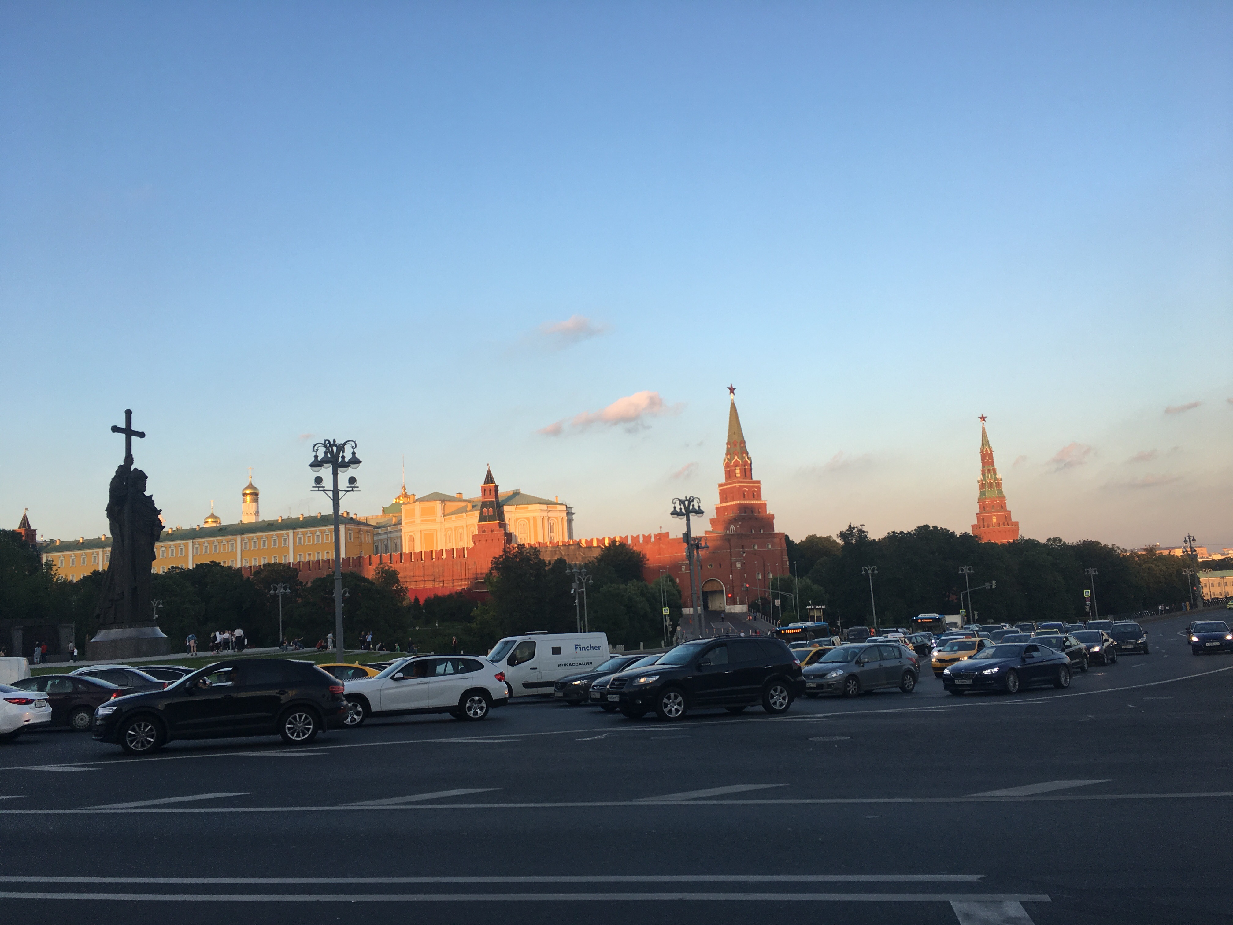 8. Descansar de turistas entrando a última hora en el Museo Estatal de Bellas Artes, Pushkin. El museo se encuentra bastante cerca del Kremlin, y casi al lado de la Iglesia del Cristo Redentor así que deberías aprovechar el día de la visita al kremlin o a la Iglesia para acercarte. El museo tiene varios edificios en la misma calle, el edificio principal en la calle Voljonka nº12, tiene replicas en yeso de grandes obras maestras (en definitiva fue fundado como museo didáctico para los estudiantes de bellas artes) así que no tiene más interés que el visual, sin embargo en dicho edificio principal se puede ver el famoso Tesoro de Príamo (Tesoro de Troya de Schielemann) disputado por varios países y que había desaparecido tras la II Guerra Mundial y que es reclamado por Alemania, Grecia y Turquía y algunas obras maestras de Rembrandt, Rubens, Rivera, Zurbarán, Murillo…En el Palacio ubicado en el nº14 de la misma calle tiene una colección con obras que van de los impresionistas hasta el S.XX: Manet, Degàs, Lautrec, Monet, Renoir, Van Gogh y algunas obras de Picasso, Gaugin, Matisse, Delacroix, Goya..Merece la pena una visita, las dos entradas son por separado pero no suman más de 800RUB. Si vas a última hora en verano (cierran a las 20h, a las 21h los jueves, ojo última admisión a las 19h en los dos casos) podrás tener una bonita fotografía del kremlin con la luz del atardecer. Las paradas de metro más cercanas son: Kropotkinskaya (casi en frente), y Borovitskaya.