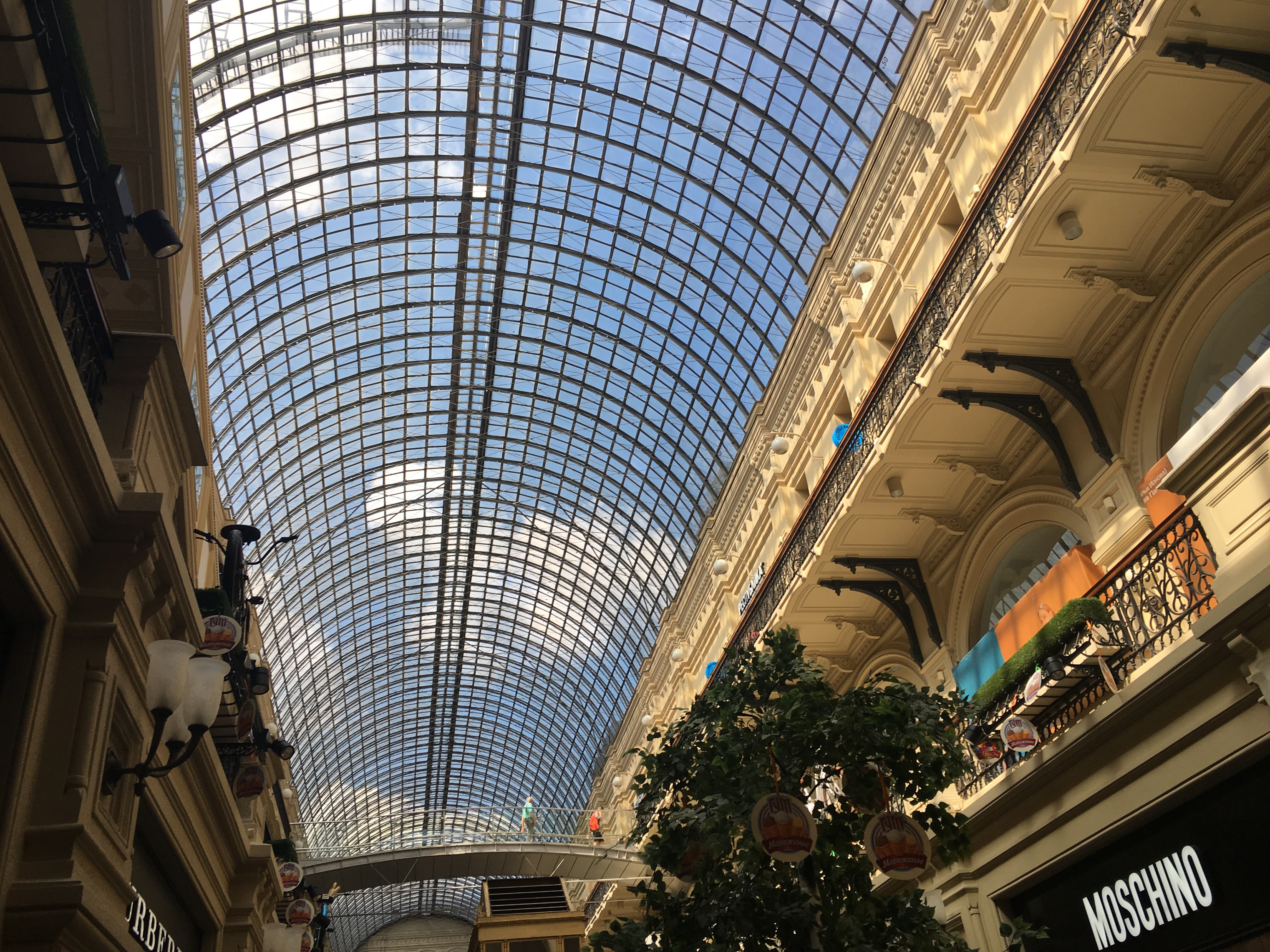 2. Recorrer la Plaza Roja: Impactante la plaza roja y los edificios que la bordean. Franqueada la entrada principal , donde está el «km cero», por el Museo de Historia y el Museo de la guerra de 1812, bordeada por los muros del Kremlin, el mausoleo de Lenin, la catedral de San Basilio y el GUM (centro comercial que queda increiblemente iluminado y que merece al menos una visita rápida por dentro, donde verás las tiendas más caras, un derroche de lujo y sofisticación. Abren de 10 a 22h). Antes de hacer la visita a Moscú, si únicamente vas a moscú y no es un viaje más largo, revisa que no haya una fiesta importante, festividad local, parada militar o algo similar, ya que en situaciones como esas, suelen cerra la plaza, y no se puede visitar ni apreciar en su magnitud, igual puedes cambiar la fecha. Para la visita al Mausoleo de Lenin prepárate a hacer cola (la entrada es gratuita, así que la cola hay que hacerla, aunque va rápido, porque no te puedes parar, ni hacer fotos…). Es obligada la visita por la noche a la plaza. Se puede acceder a la misma desde varios puntos y hay varias paradas de metro que te dejan cerca: OHOTNYJ RJAD y PLOSCAD REVOLJUCII son las más cercanas. Cuidado porque a veces les da por cerrar la plaza por organizar a la gente, despejar…o quién sabe, generalmente abren en un rato otra vez.