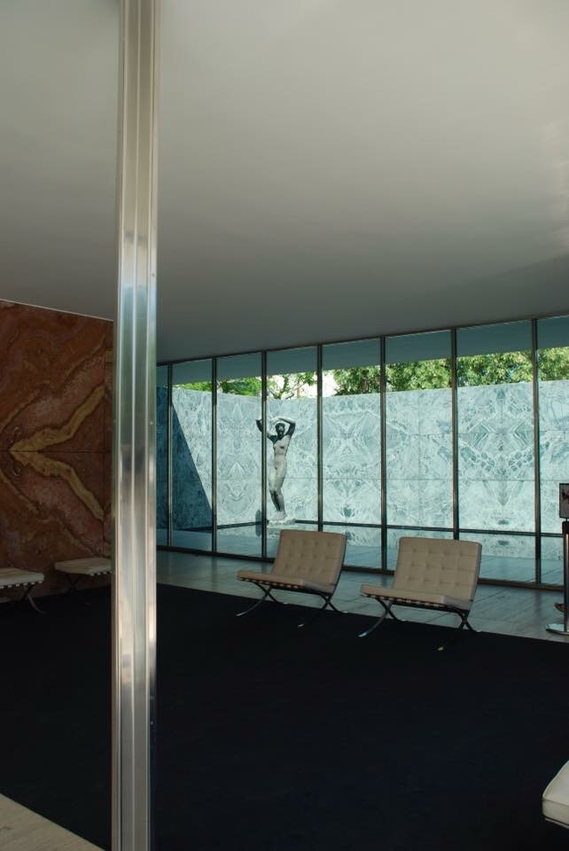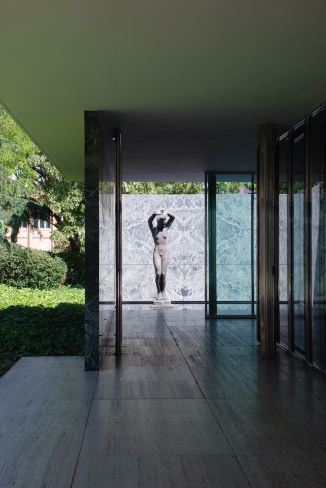 2) Ya que estás en 1929, imagínate paseando por la Expo Universal y entrando en el Pabellón de Alemania de Mies Van der Roe. Este pabellón de la Exposición Universal de 1929 que tuvo lugar en Barcelona, fue diseñado por Ludwig Mies van der Rohe y Lilly Reich, y ésta en pie. Bueno, la verdad es que el pabellón fue desmontado (en enero de 1930) y la reconstrucción (basada enteramente en el diseño original y con los mismos materiales: vidrio, acero y mármol) se inauguró el 2 de junio de 1986.