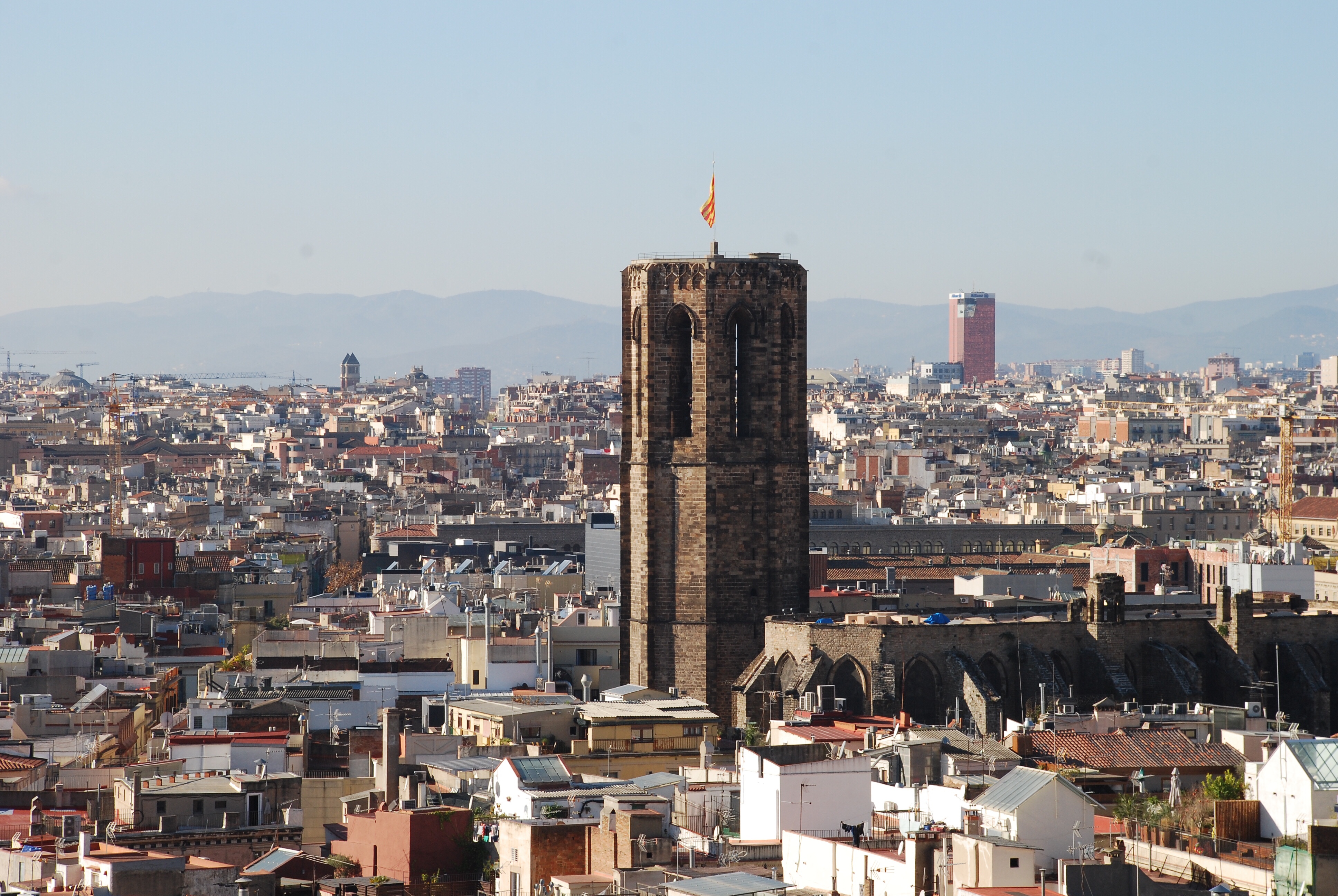 La visita incluye la subida a las terrazas y la torre del campanario, se accede por unas estrechas escaleras llegando primero a la terraza de la iglesia, desde donde se accede por una estrecha escalera de caracol para llegar a la parte alta del campanario (35m) donde hay unas vistas de Barcelona increíbles.