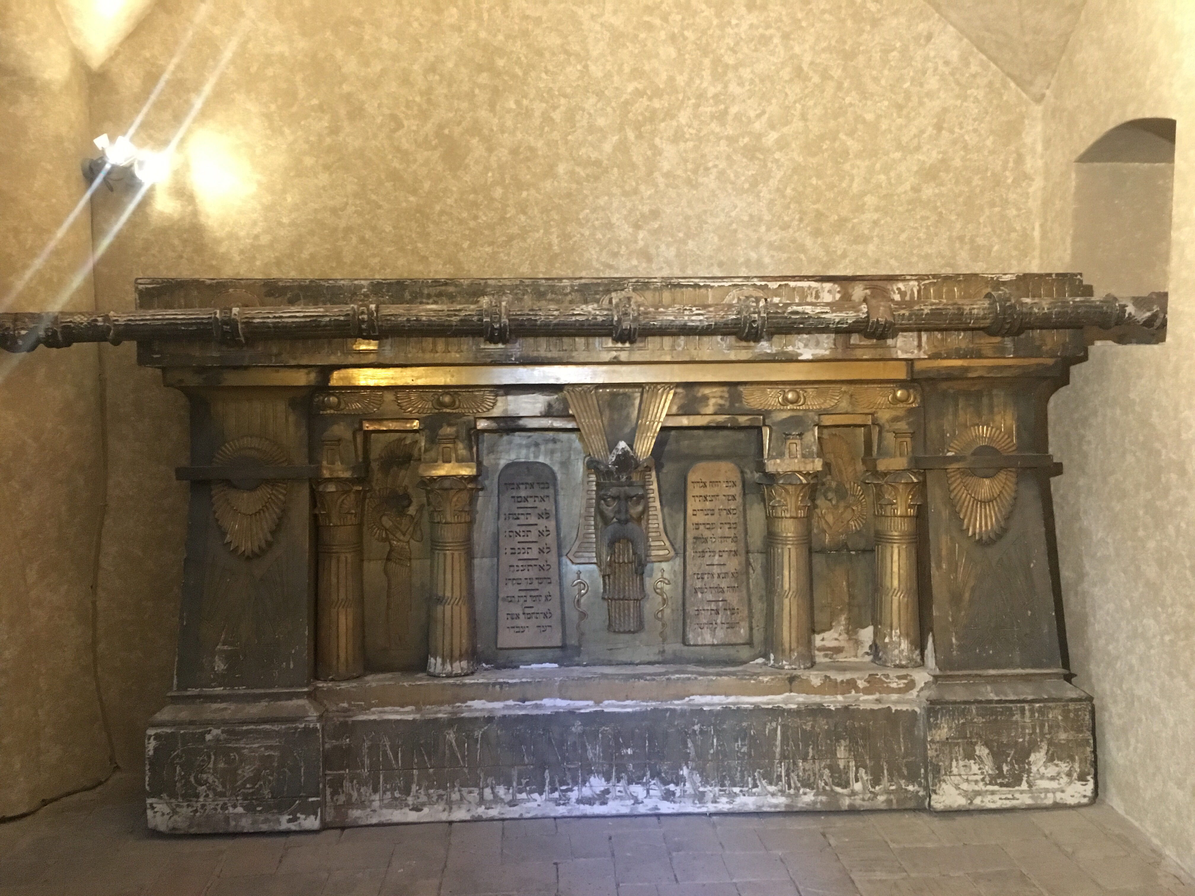 Durante unas nuevas obras en 2015, en la segunda planta, se descubrió una puerta tapiada y tras ésta, una capilla. En su interior se halló una espectacular reproducción de un arca de la alianza en pan de oro de casi 3 metros de largo por 1,70 de alto con inscripciones en hebreo, jeroglíficos y bajorrelieves egipcios. Increíble. En el centro una imagen de Dios, los diez mandamientos en lengua hebrea, dos querubines con simbología egipcia, y una barra superior horizontal, para colocar sobre los hombros y transportar el arca.
