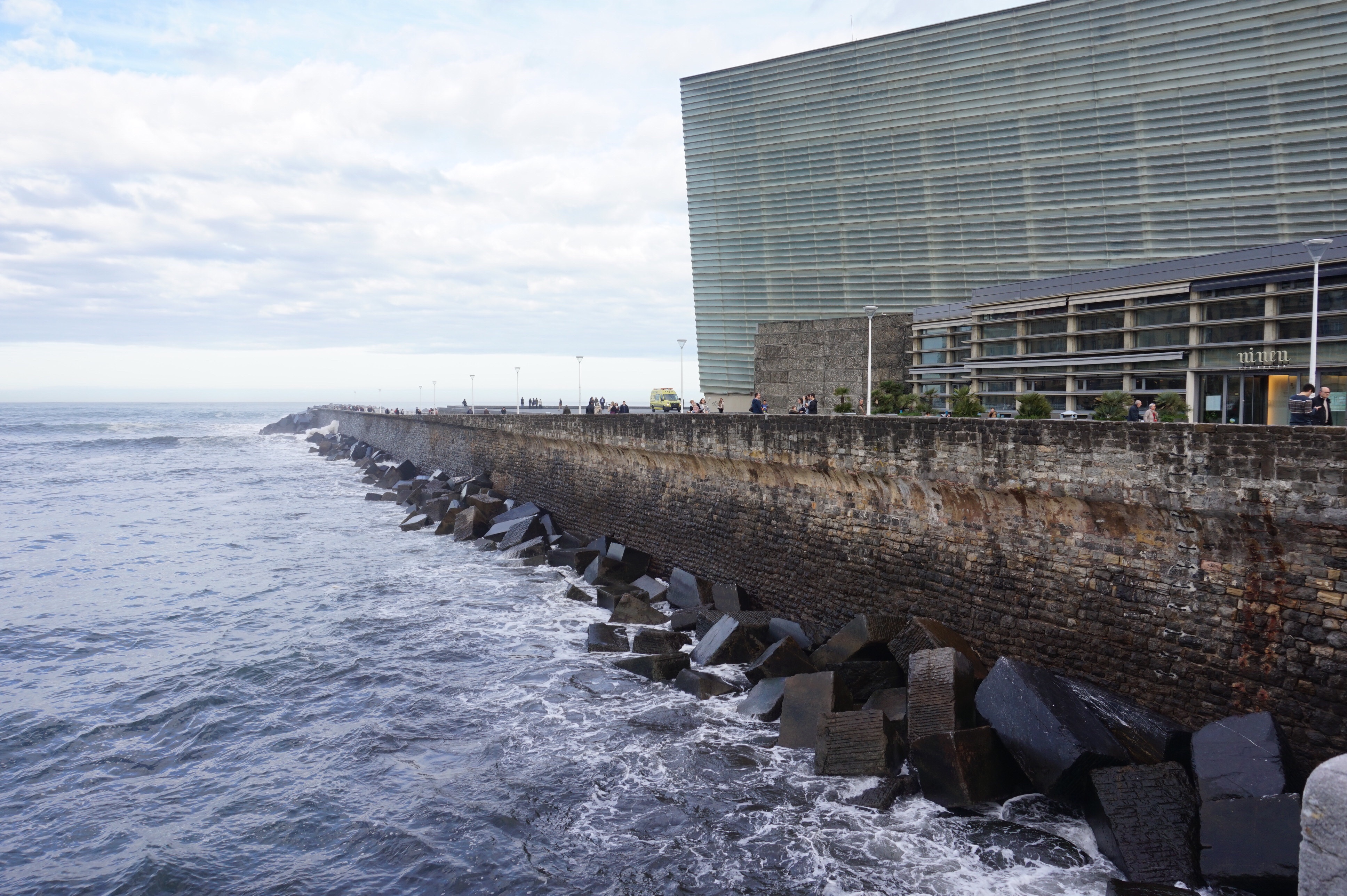 Dia1. Ruta por lo viejo. Si has conseguido hotel en el barrio de Gros, puedes empezar el día desayunando en la zona: En el Belgrado en la avda. de Navarra n°2, o en el Café Loft en la calle Nueva nº9 por ejemplo. Despues puedes dar un paseo (no son más de 3km) pasando por el Kursaal y el Paseo Nuevo hasta el Aquarium y el puerto.