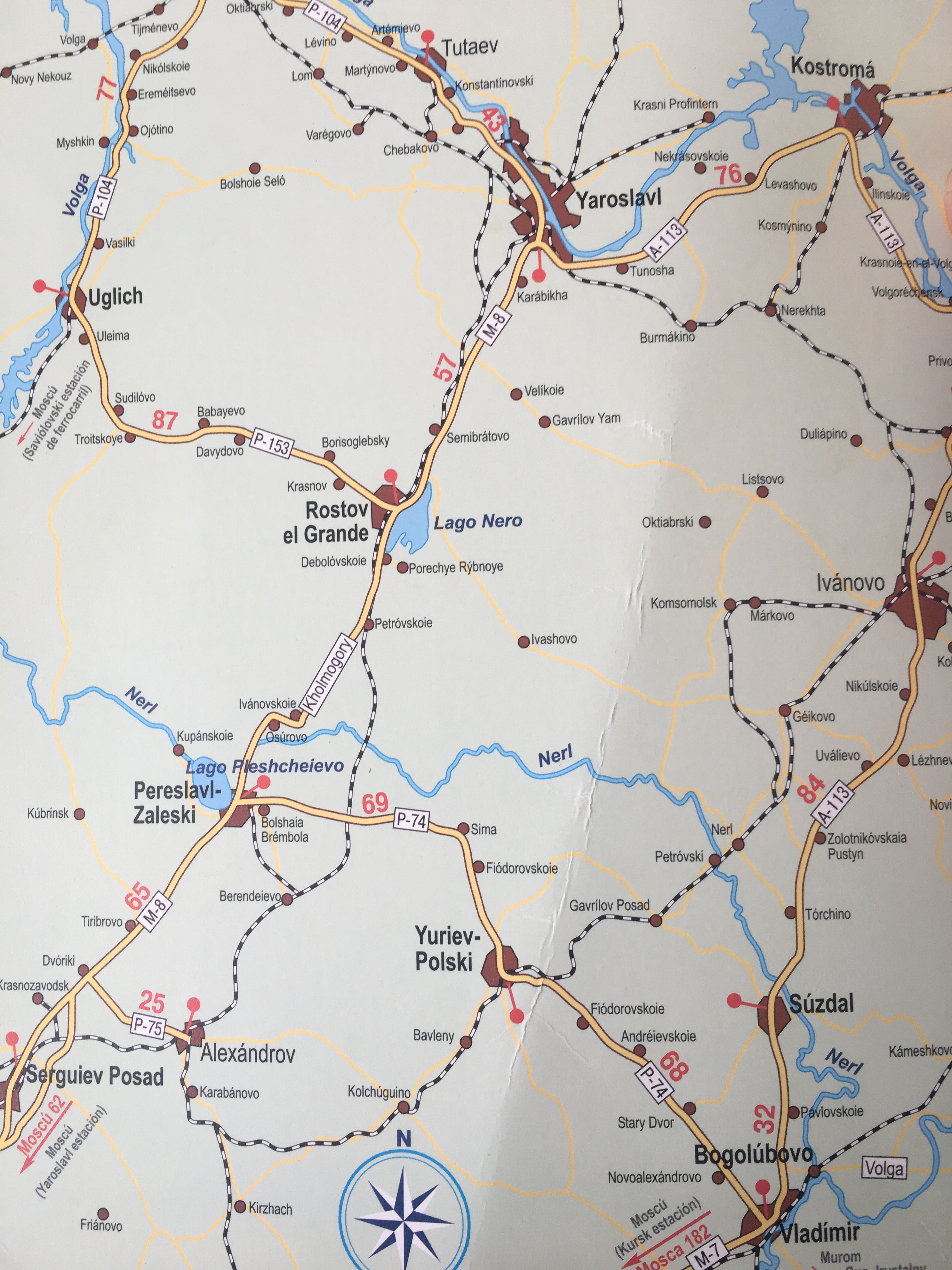 Las excursiones las hicimos todas seguidas dentro de un viaje organizado. Hacer todas las excursiones seguidas hace que pierda interés, es decir, siempre ves lo mismo, así que puedes cansarte. Creo que se podría planificar desde Moscú a pesar de que las distancias son importantes y hacer grupos de visitas, alargando la estancia en Moscú otros 3-4 días más. Es decir intercalar las ciudades del anillo de oro con visitas en el mismo Moscú. Si tuviera que repetirlo por libre lo haría de esa manera, por ejemplo Sergiev y Suzdal-Vladimir desde Moscú en el día (en 2 días diferentes) y la parte más alejada de Rostov-Yaroslavl y Köstromá haciendo noche en Yaroslavl. Os adjunto fotografia de un mapa de las ciudades.