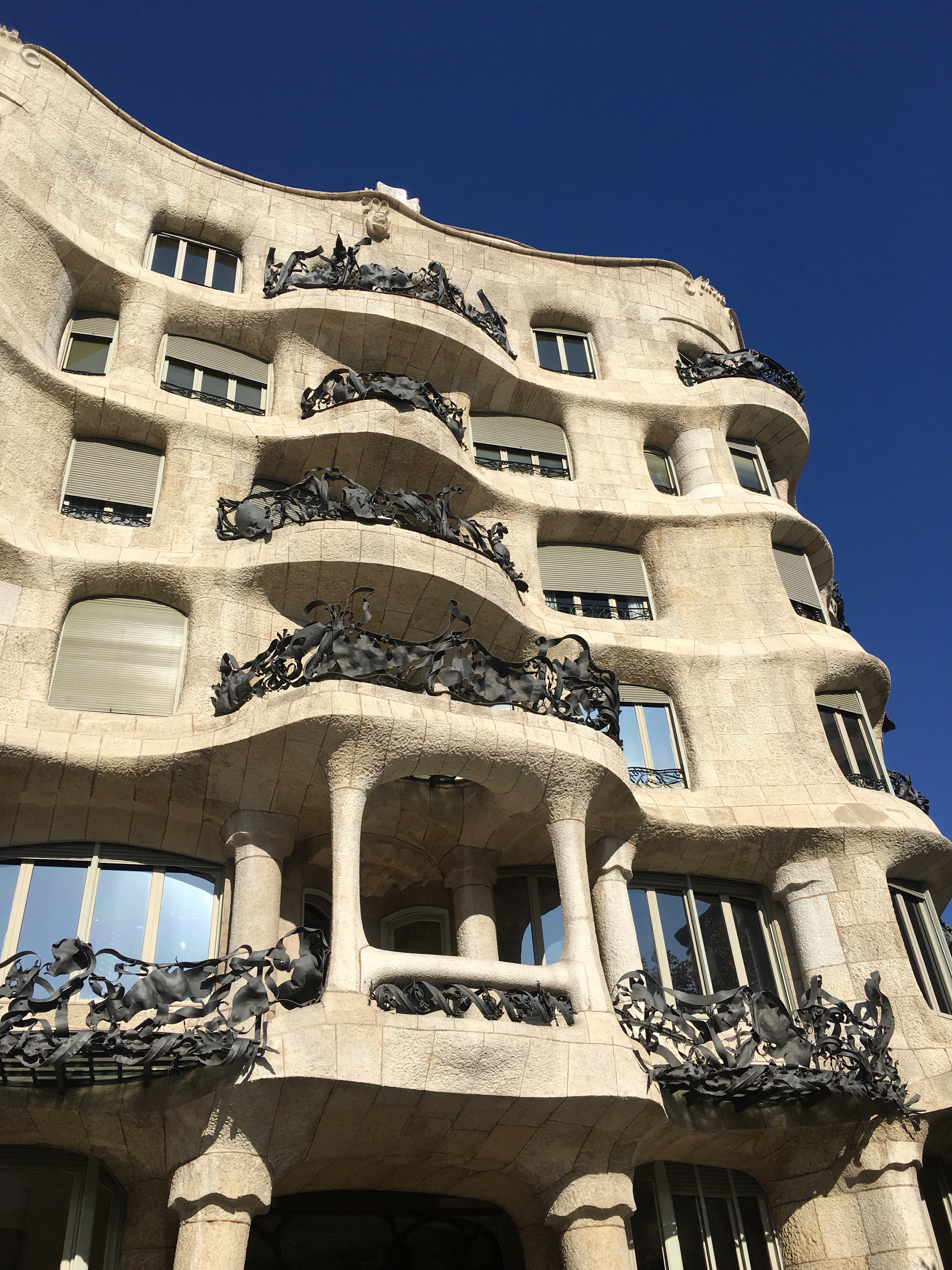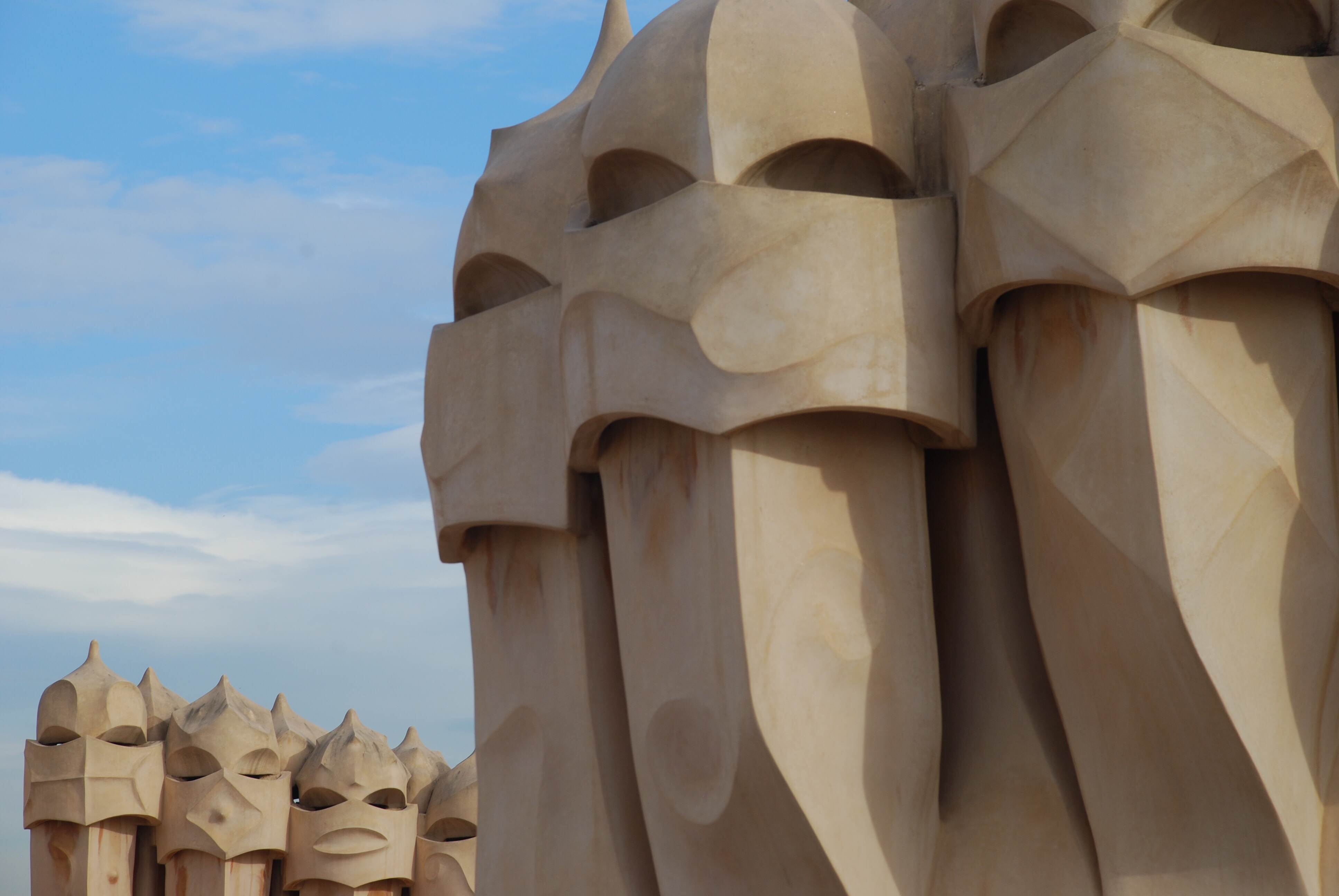 La Casa Milá está a poco más de cinco minutos andando de la casa Batlló. Gaudí con 54 años recibe este encargo en Paseo de Gracia, y fue la última obra civil del artista antes de la Sagrada Familia. Lo más increible de este edificio es su imponente fachada (192 ventanas) con barandillas de forja todas distintas y su azotea con sus interesante y famosas chimeneas. La superfie cuadriplicaba la de la casa Batlló. El mote de La Pedrera, lo recibe por su fachada de piedra.