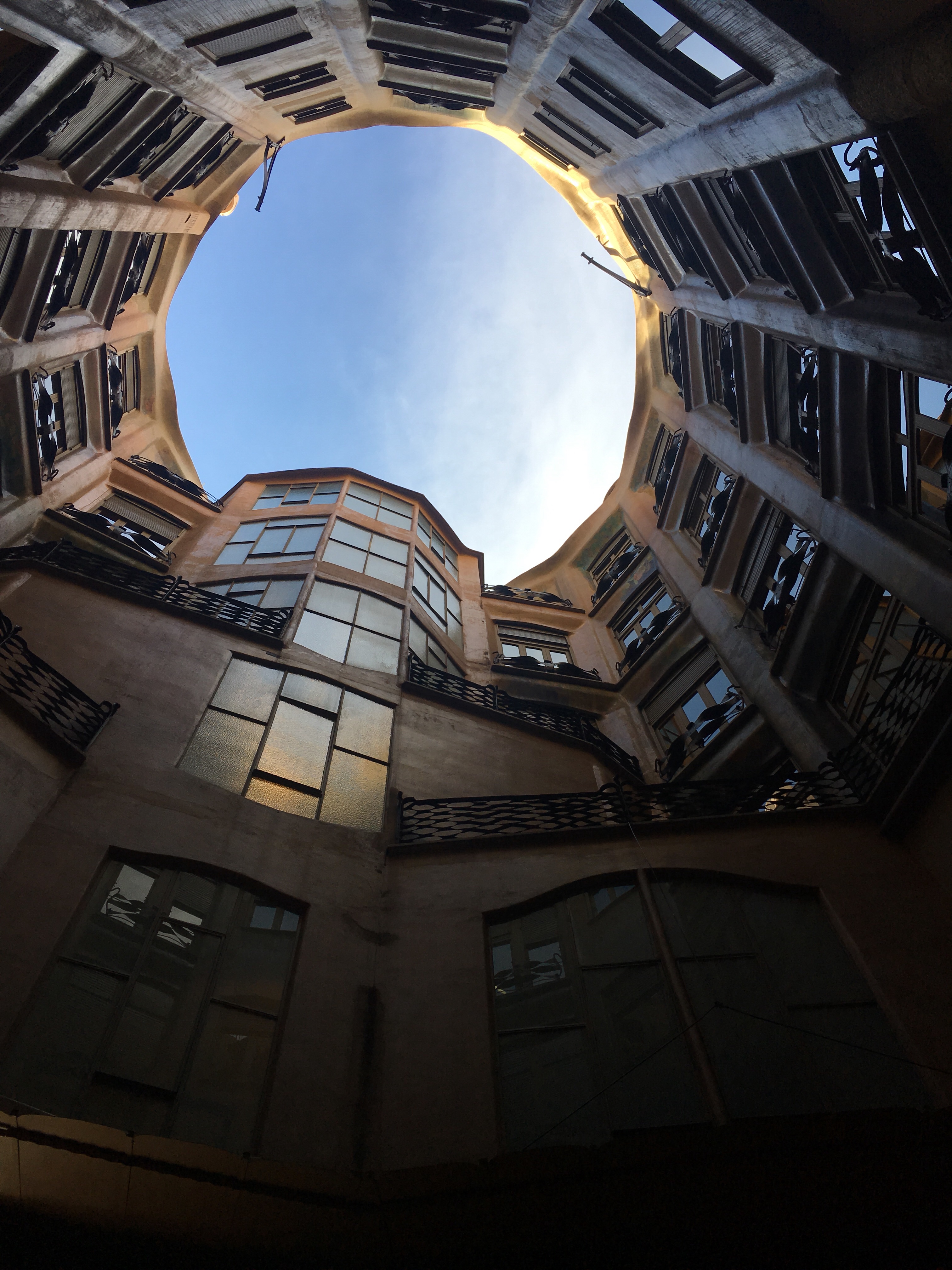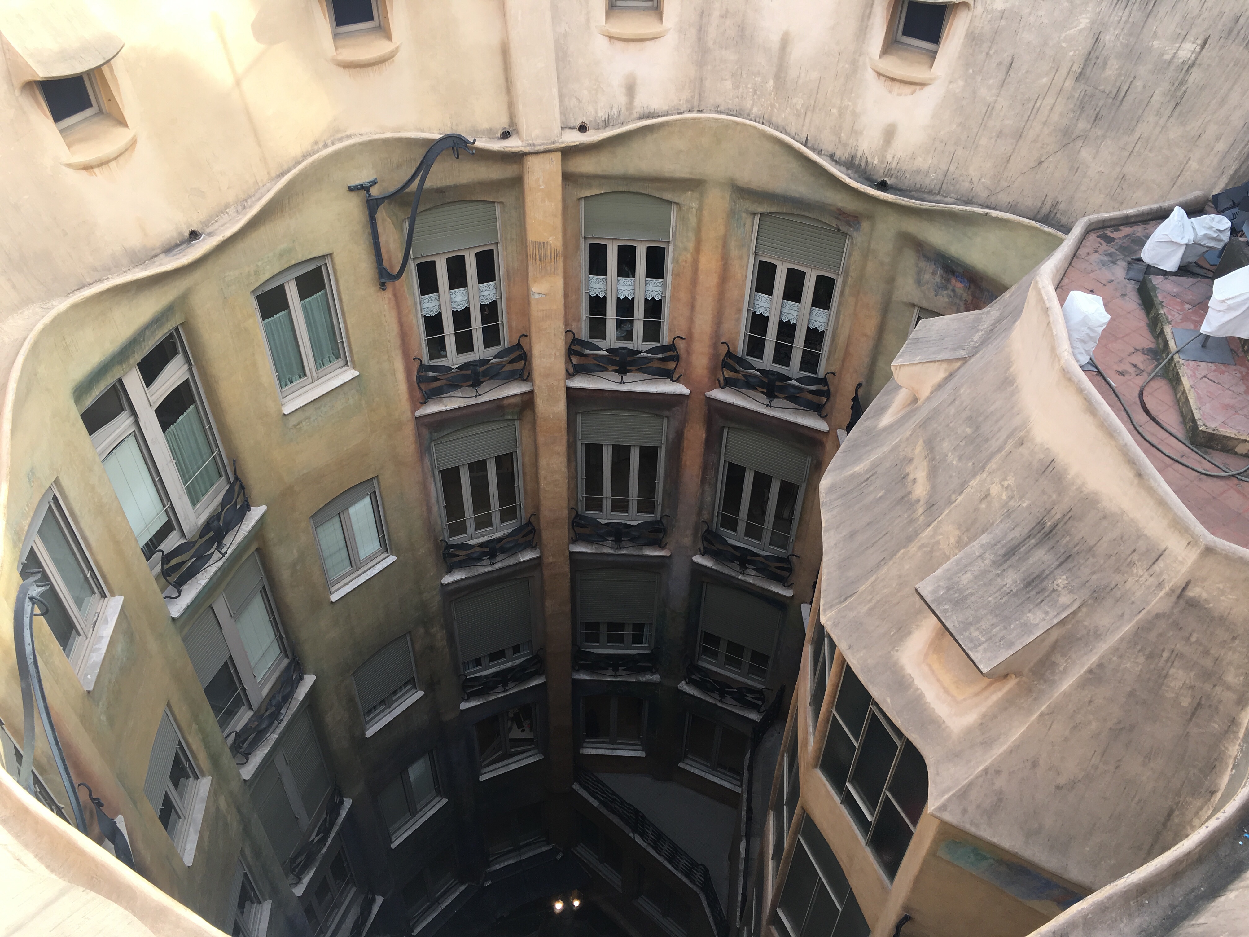 Hay dos patios de luces, uno en la entrada de paseo de gracia, el otro en Provença. La foto más famosa se realiza en la azotea (por donde comienza la visita). El paseo por la azotea es único, sus chimeneas son esculturas, algunas de más de 7,5m.