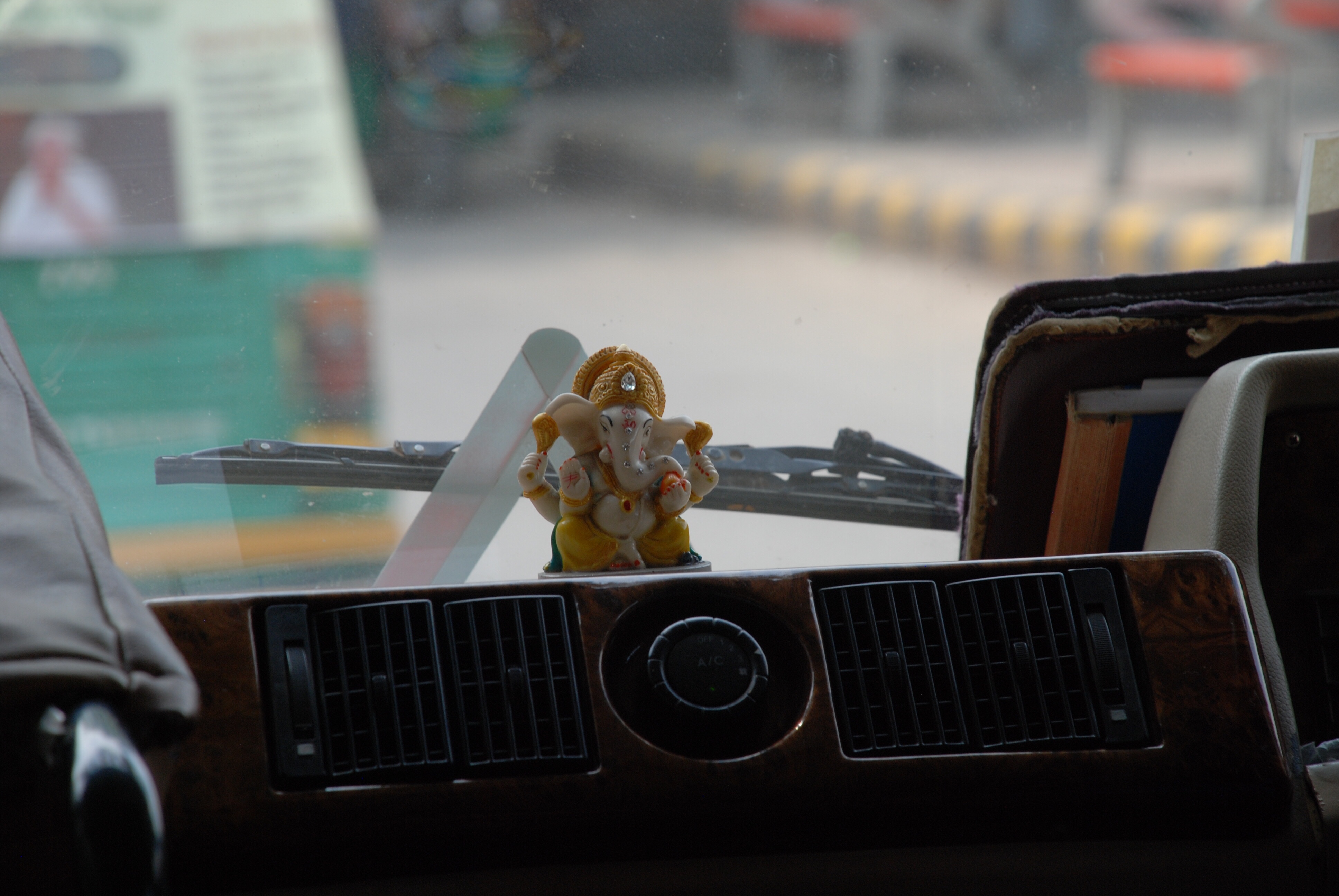La historia cuenta que Shiva se marchó de viaje, sin saber que su esposa la diosa Parvati estaba embarazada. Estando fuera, ésta da a luz a Ganesha. Total, que Shiva vuelve (entiendo que al cabo de los años, la historia no puntualiza este aspecto) y al ver a un extraño en su casa, le corta la cabeza. Cuando Parvati le dice a Shiva que era su hijo, éste envía a un siervo a que le traiga la cabeza del primer ser vivo que encontrara en la selva, y ¿cual fue? Pues un elefante. Y este es el dios al que tenéis que saludar para que guíe vuestro viaje.