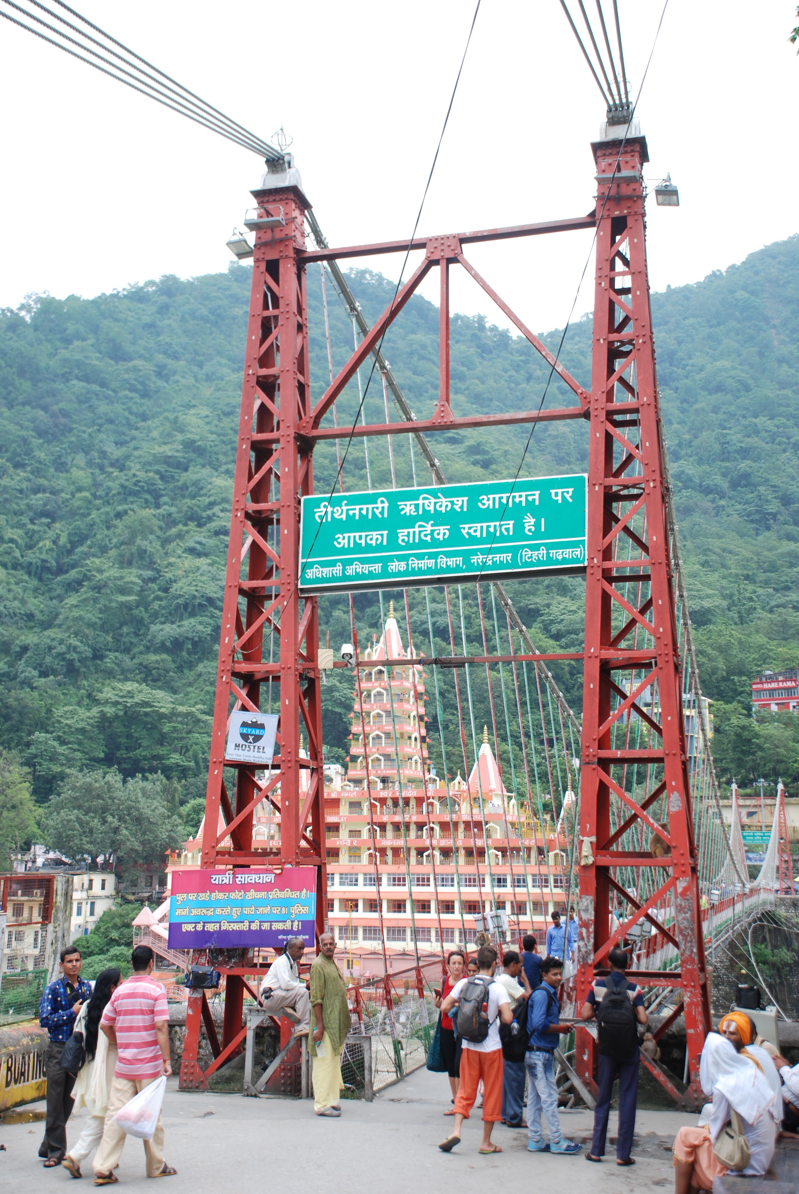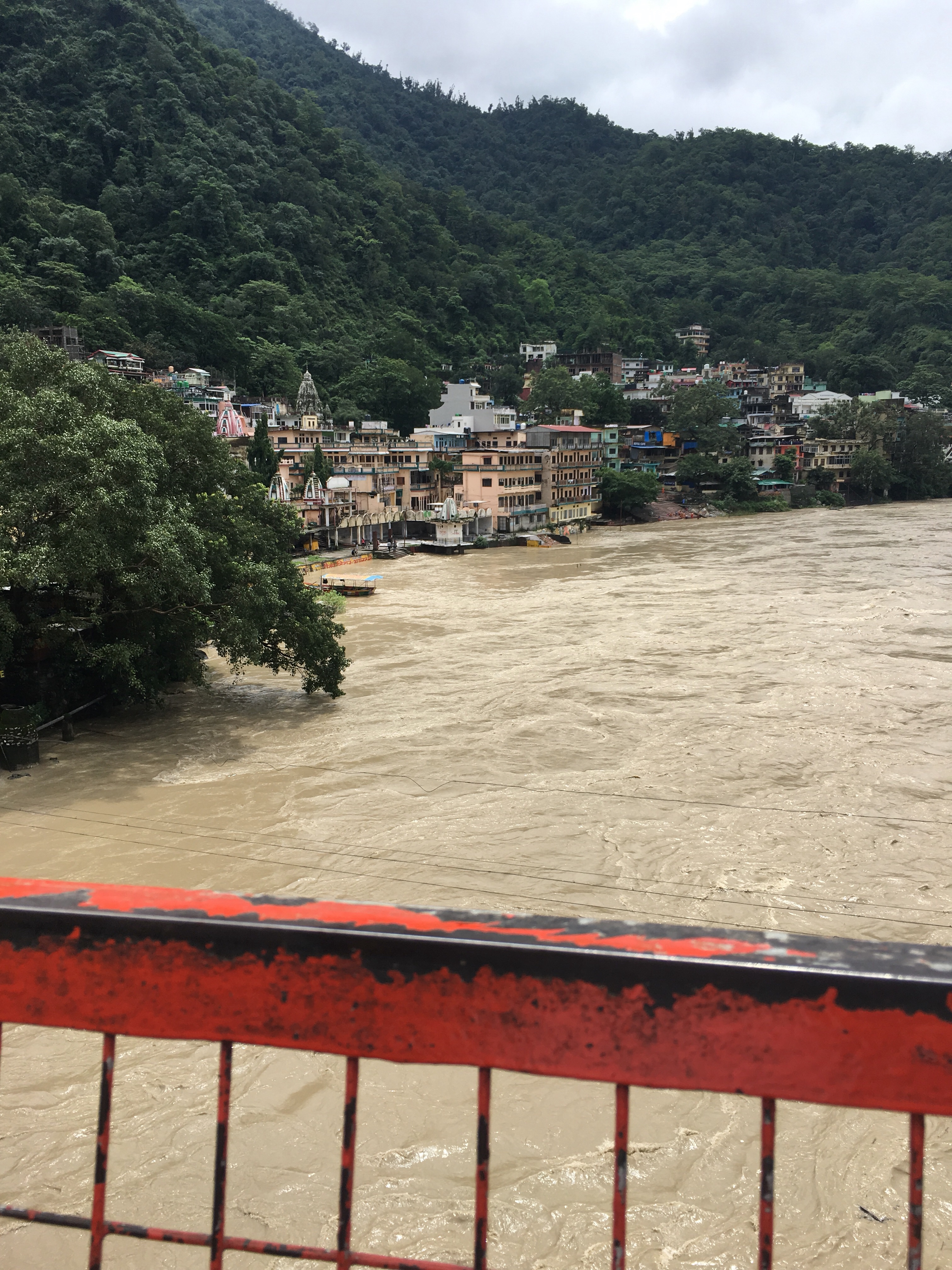 El río parte la ciudad en dos, la parte residencial quedaba a un lado y, la otra, llena de ashrams, templos y ghats al otro. Para cruzar el rio tienes dos puentes: el más famoso Lakshman Jhula (puente de hierro construido en 1939) que se atraviesa varias veces al día, junto con decenas de turistas (indios), yoguis occidentales, montones de vacas y monos.