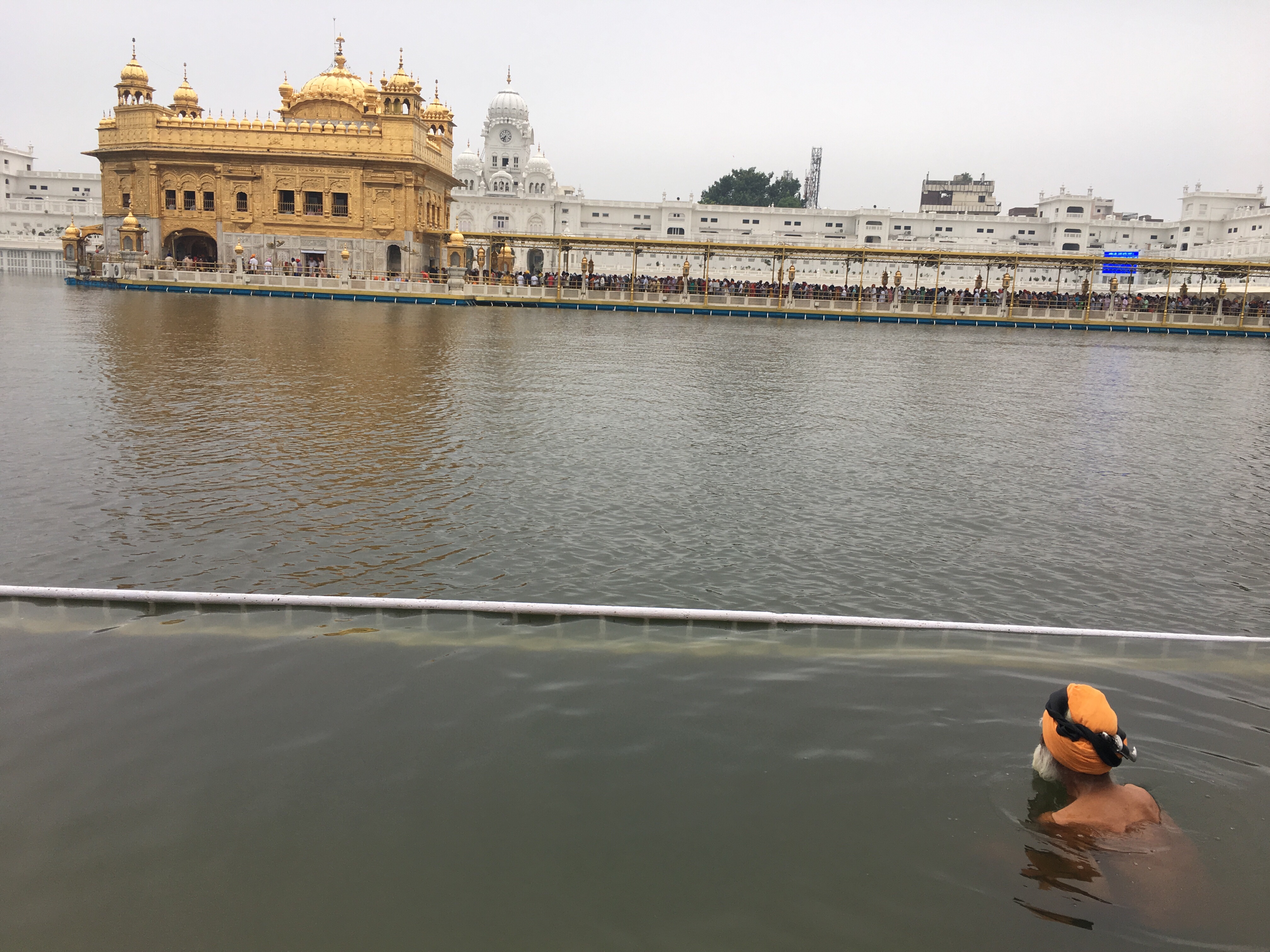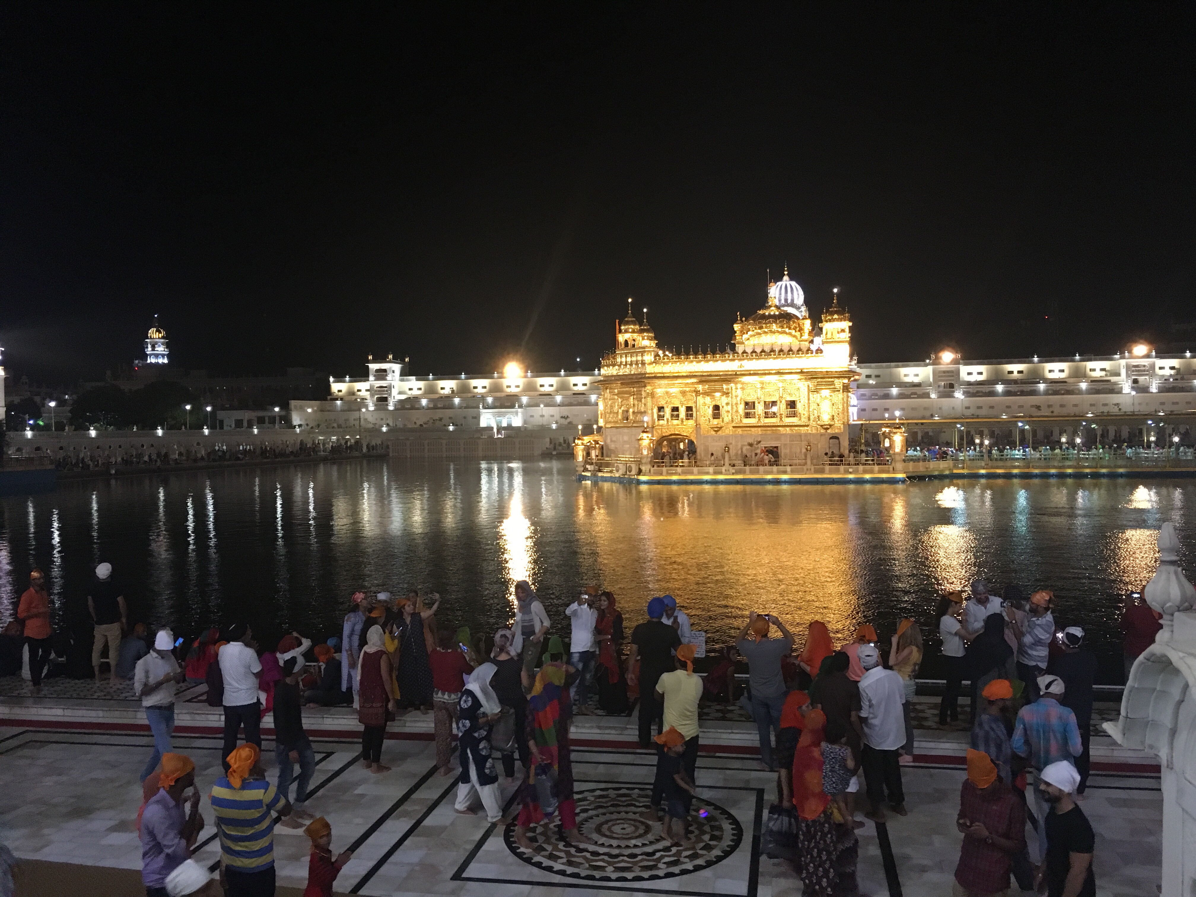 Puedes hacer la visita como prefieras. Normalmente se pasea por el perímetro dando la vuelta en el sentido de las agujas del reloj. Se puede entrar en el Templo en el medio del estanque, lo mejor es hacerlo una vez han sacado el libro sagrado ya que entonces desaparece la increíble cola que hay. No se pueden sacar fotos dentro. Cada día sacan el libro a las 22h para llevarlo en procesión hasta el Akal Takht justo enfrente del Templo y lo vuelven a llevar a las 4 am (creo, aunque lo mejor es preguntar exactamente el horario en el hotel)