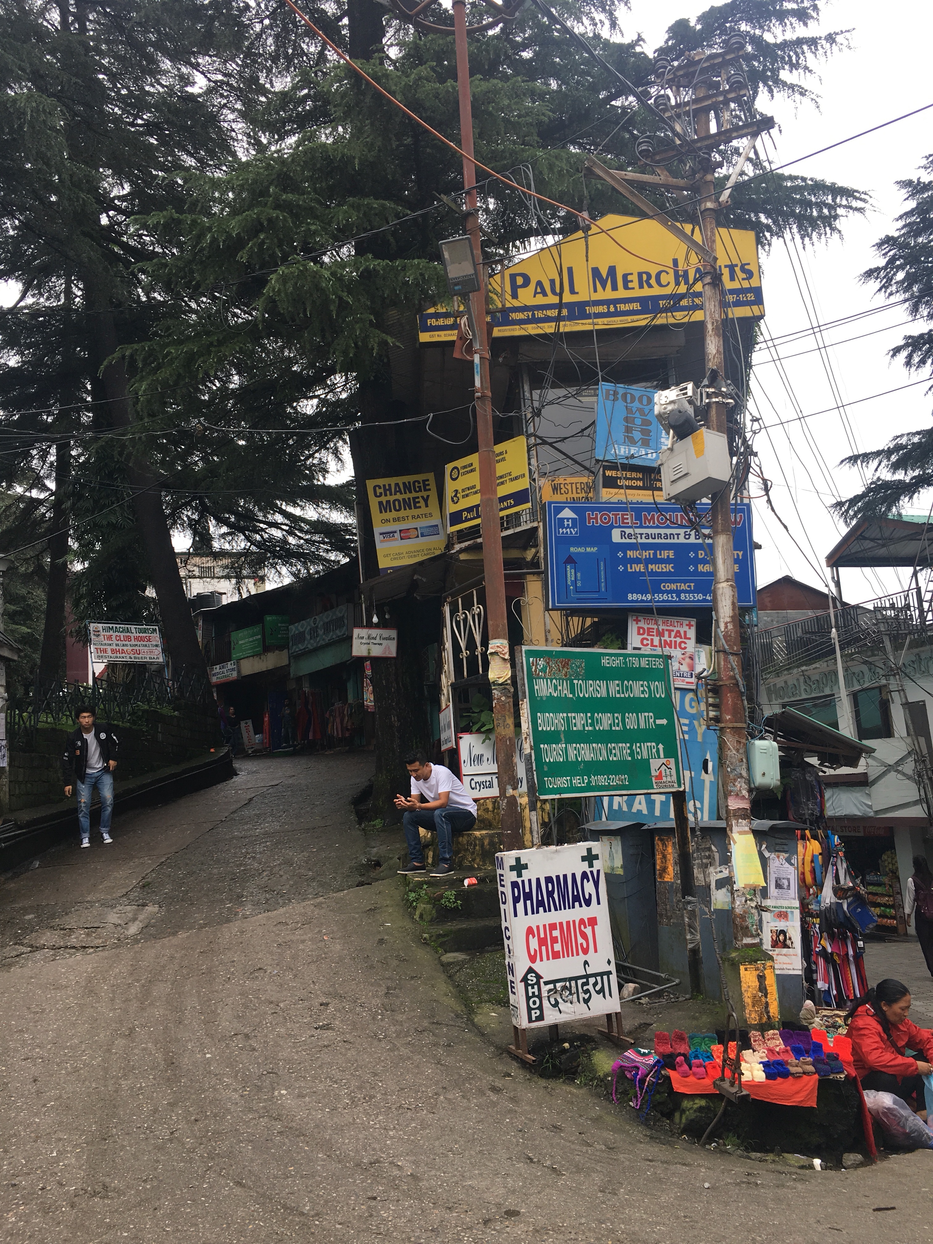La ciudad (que son escasas tres calles) está llena de basura, puestos de jerséis, pulseras e incienso, llena de mochileros occidentales, hippies, monjes, y mujeres que parece que tienen mil años. En las tiendas, fotos del Dalai Lama y fotografías del Monte Kailash, la montaña sagrada de los budistas e hinduistas, de más de 6.600m que nunca se ha intentado escalar (ya que según la tradición, solamente se puede alcanzar la cima a través de la meditación). Pues ahí estás tú pensando en la meditación, mientras esquivas los coches, taxis y motos más ruidosos del planeta. Eso si, el paisaje brumoso y los cedros del Himalaya compensan.