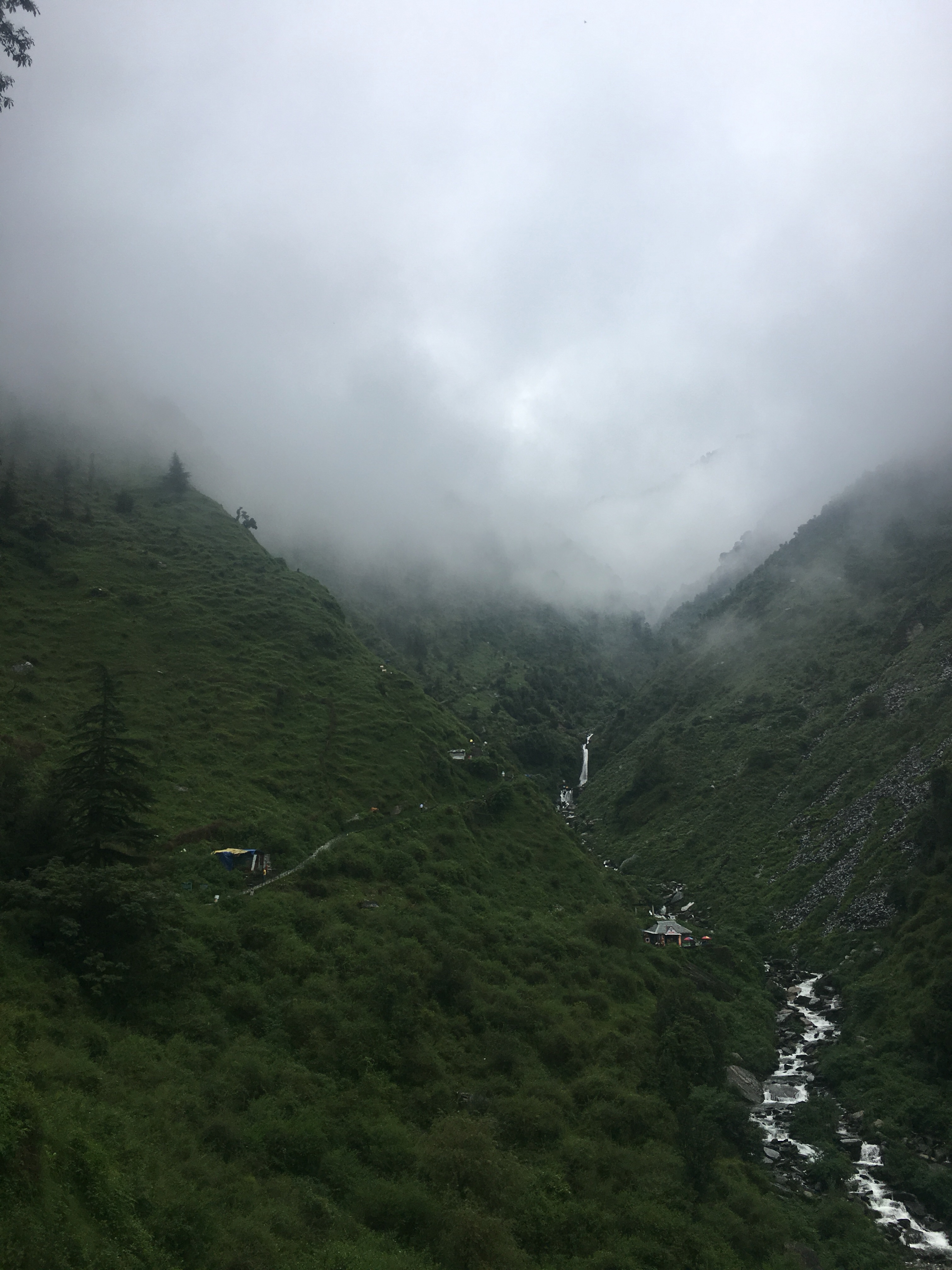 A poco menos de media hora de ruta desde McLeod Ganj se encuentra esta catarata rodeada de un paisaje montañoso increíble. La ruta es sencilla pero hay que llevar calzado cómodo (botas de monte o zapatillas, ya que había bastante barro, era monzón). Durante el camino te acompañan niños, monjes, vacas y perros, así que se hace entretenido. Al llegar hay un pequeño puesto donde puedes tomar sopas, un refresco o comprar algún snak.