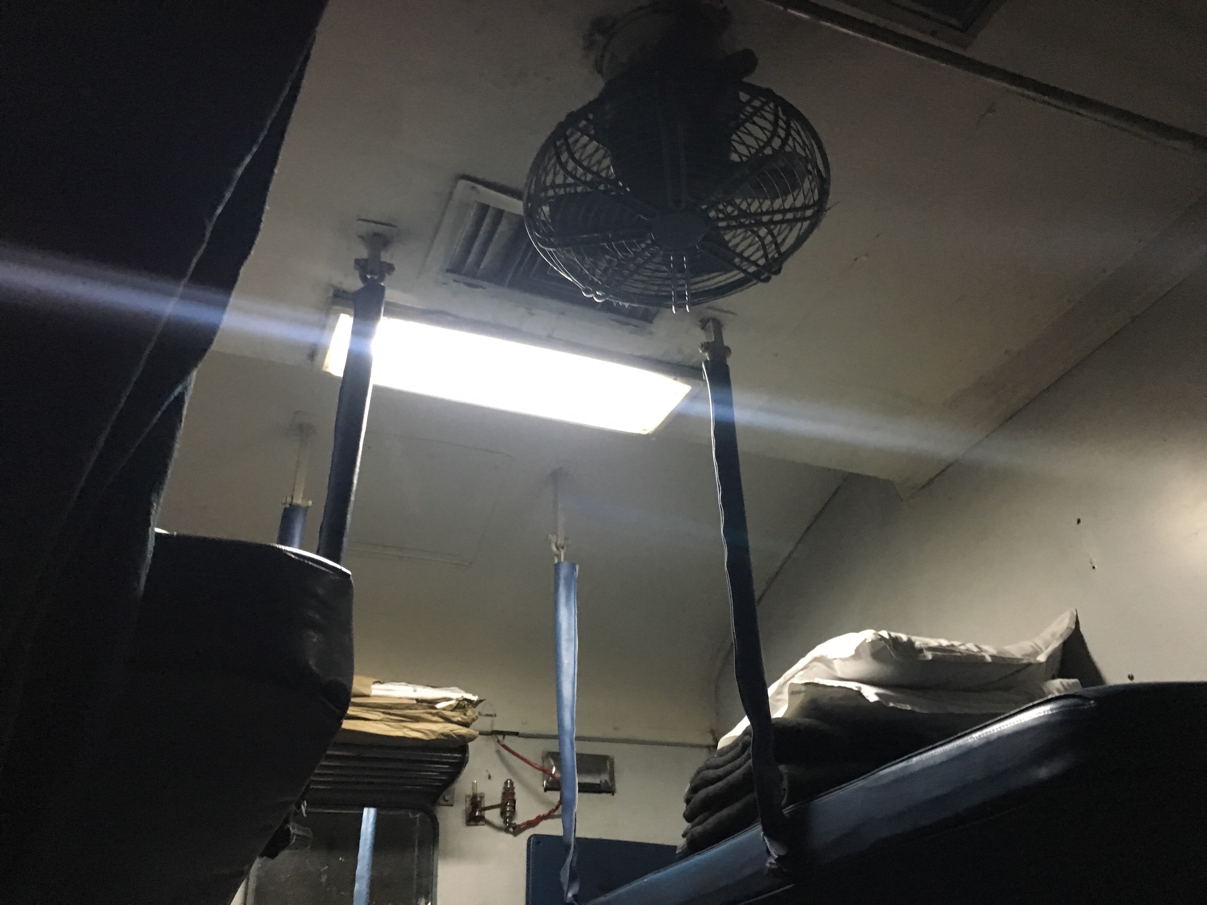 Sleep Class son compartimentos de 6 literas, tres a cada lado. Aquí solo hay ventiladores y no hay ropa de cama.