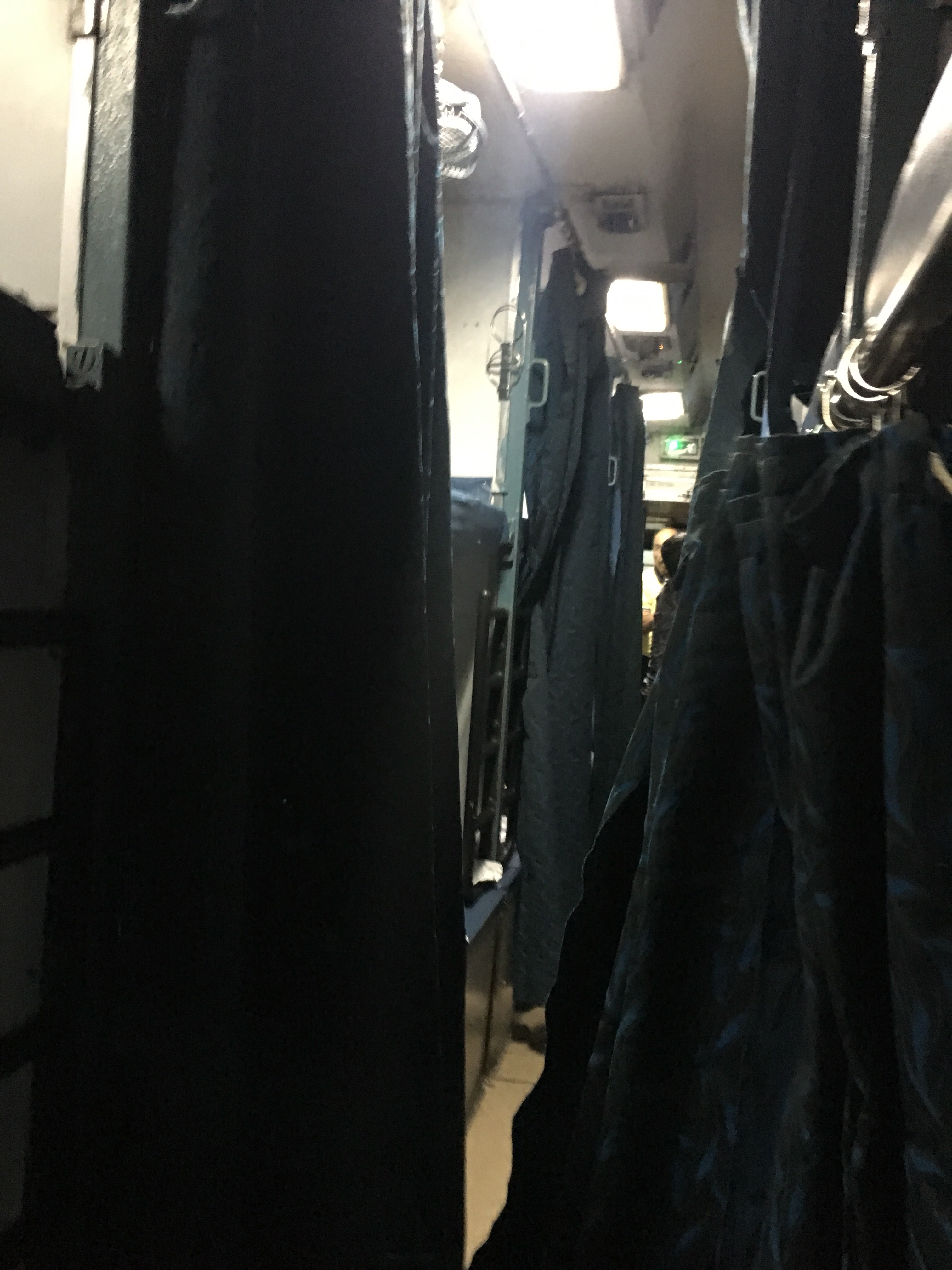 6. No hay puerta. No hay camarote. Hay cortina. Lleva tapones y antifaz si eres un poco especial para coger el sueño. Bueno, si eres especial para coger el sueño mejor vete en avion.