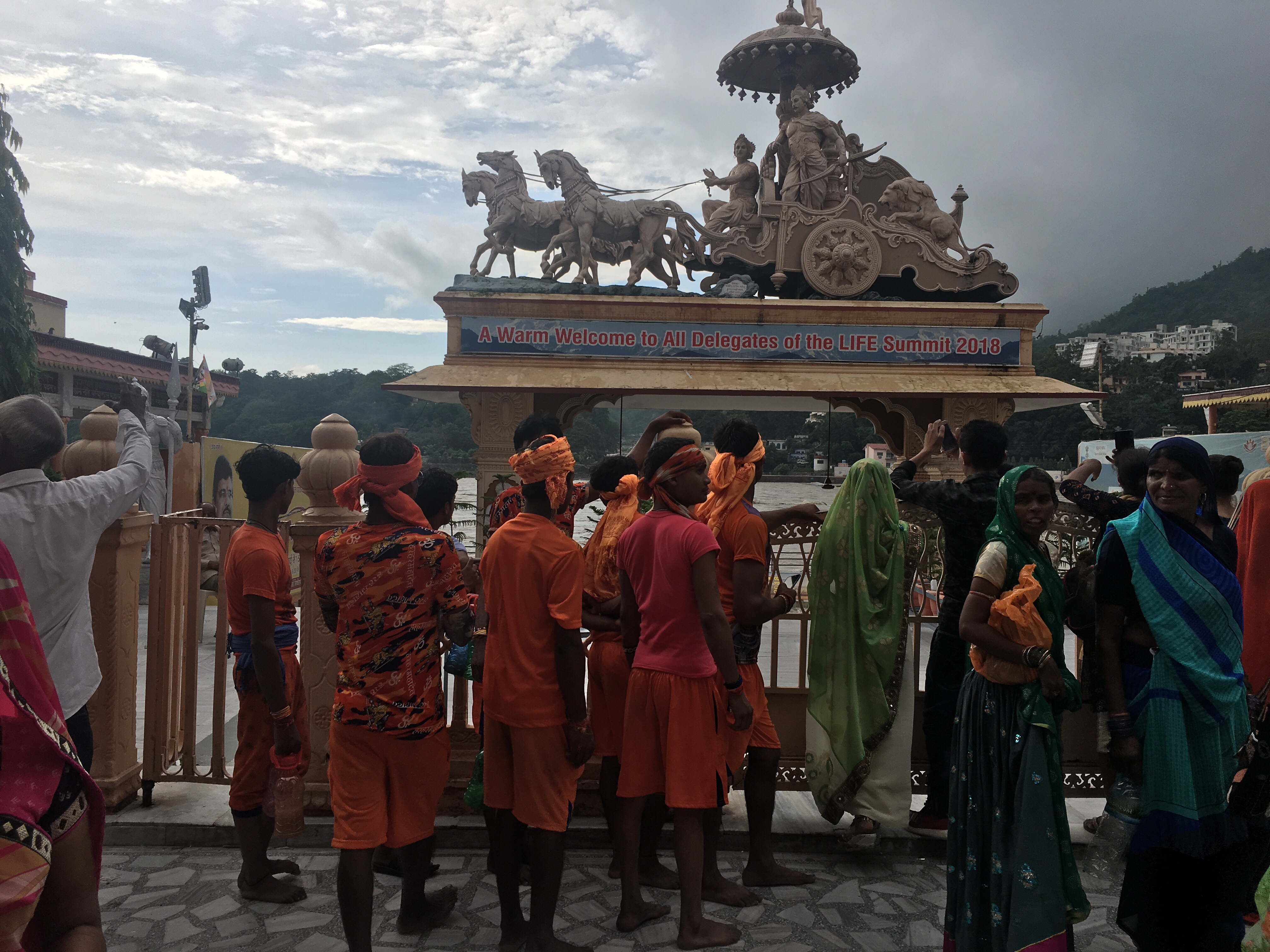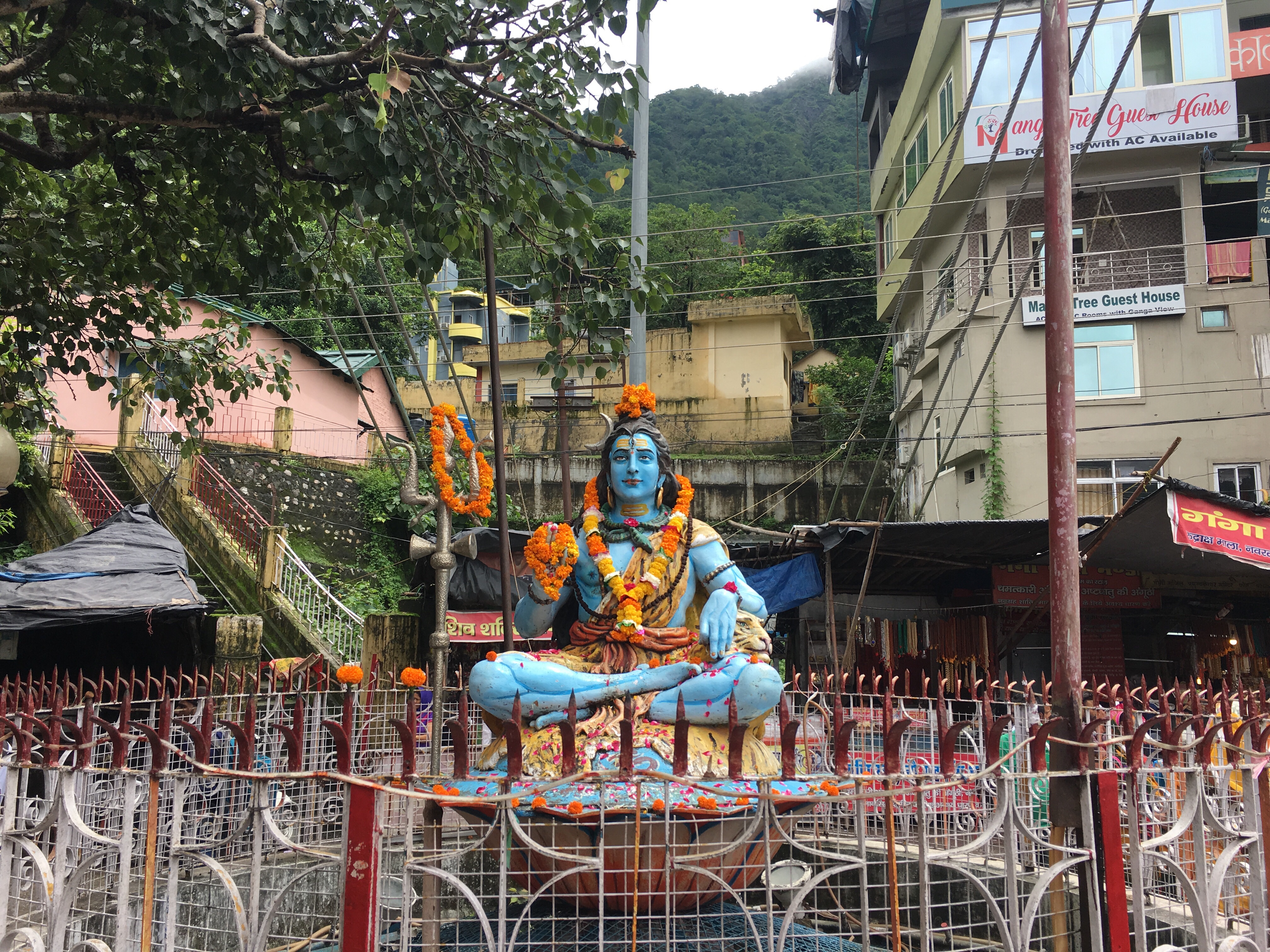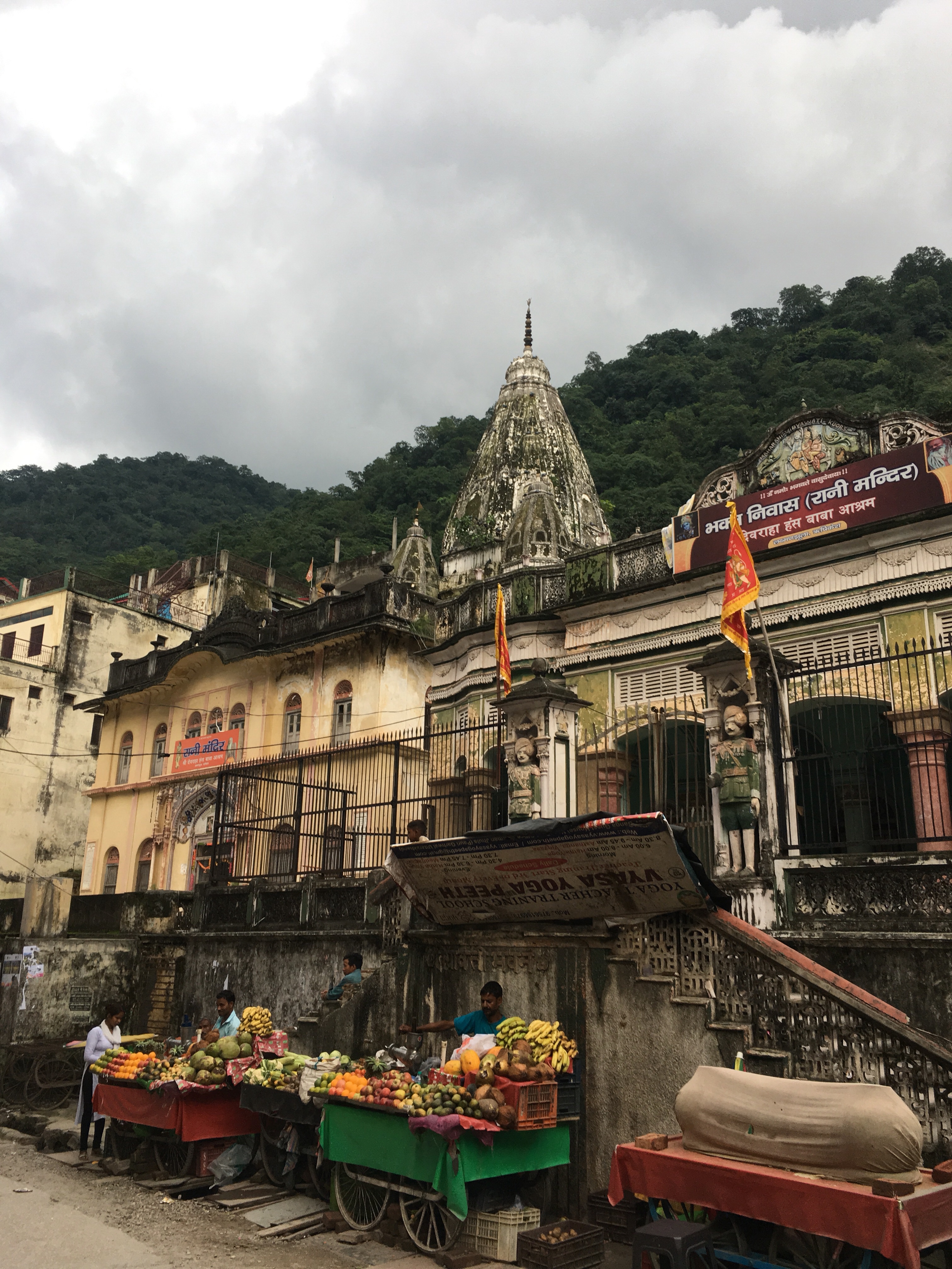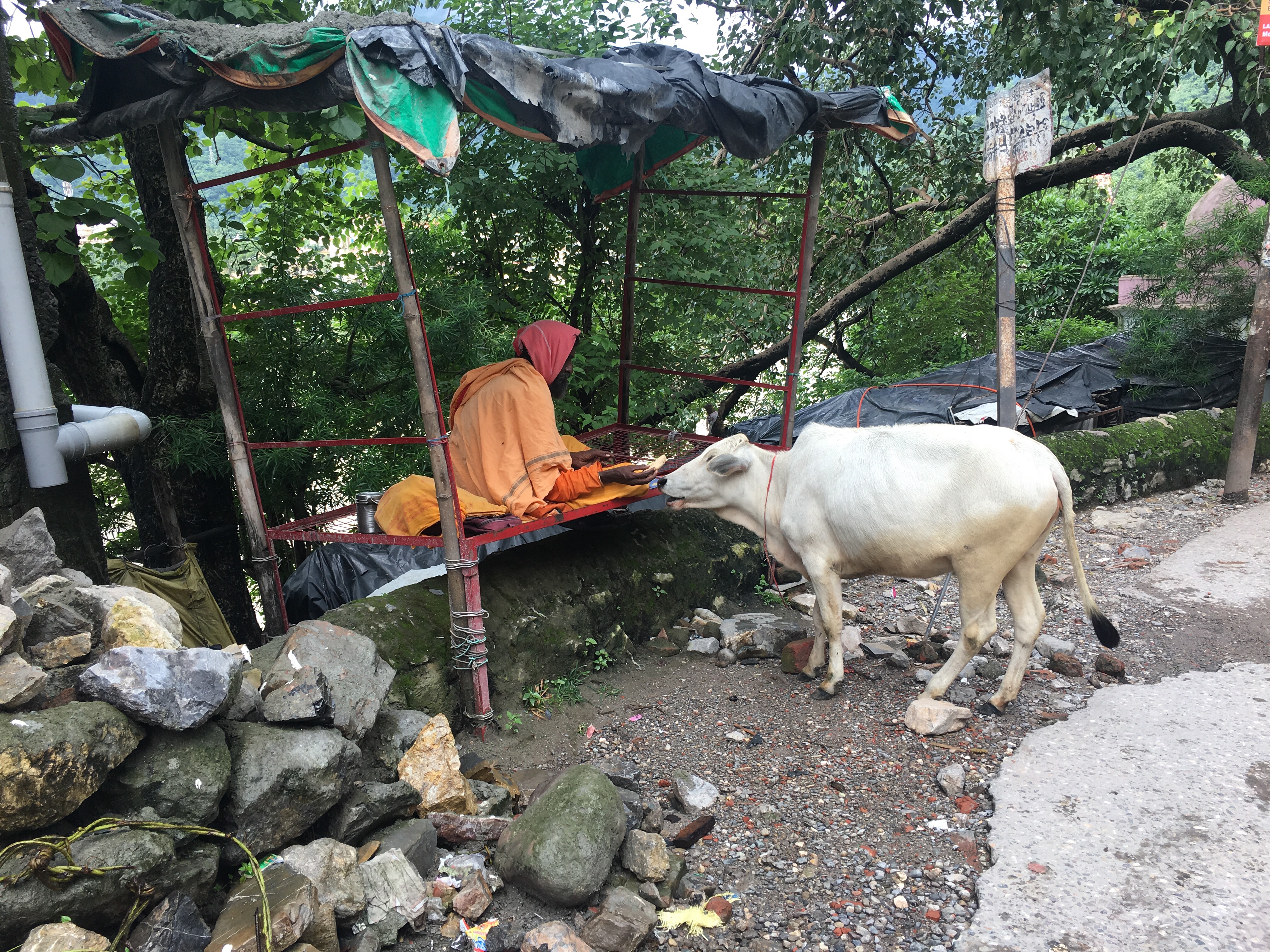 En Rishikesh es famoso el Ashram de los Beatles, que está cerrado y sólo se ve desde fuera. No nos acercamos porque amenazaba tormenta y había que cruzar un pequeño río que desembocaba en el Ganges. Un āśrama o áshram es un lugar de meditación y enseñanza hinduista, una especie de residencia o monasterio, con un gurú. Hay un montón.