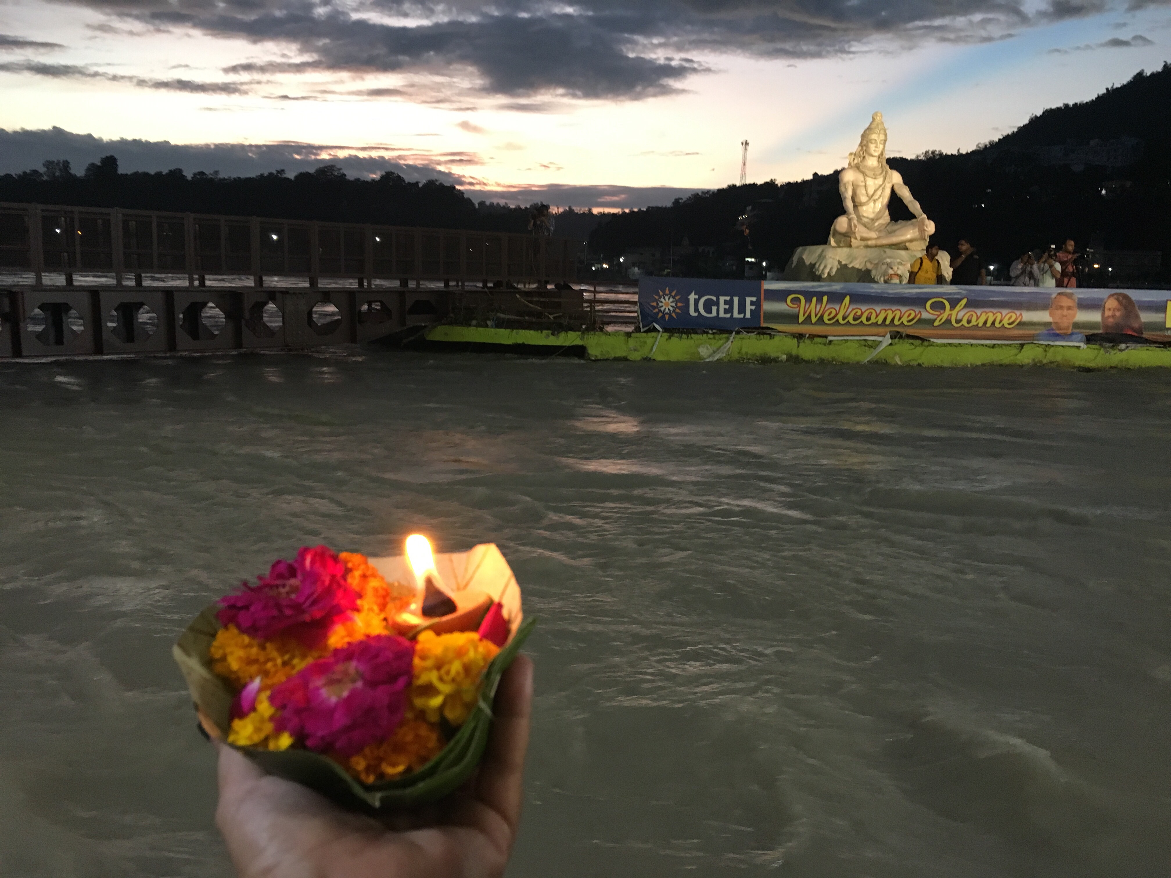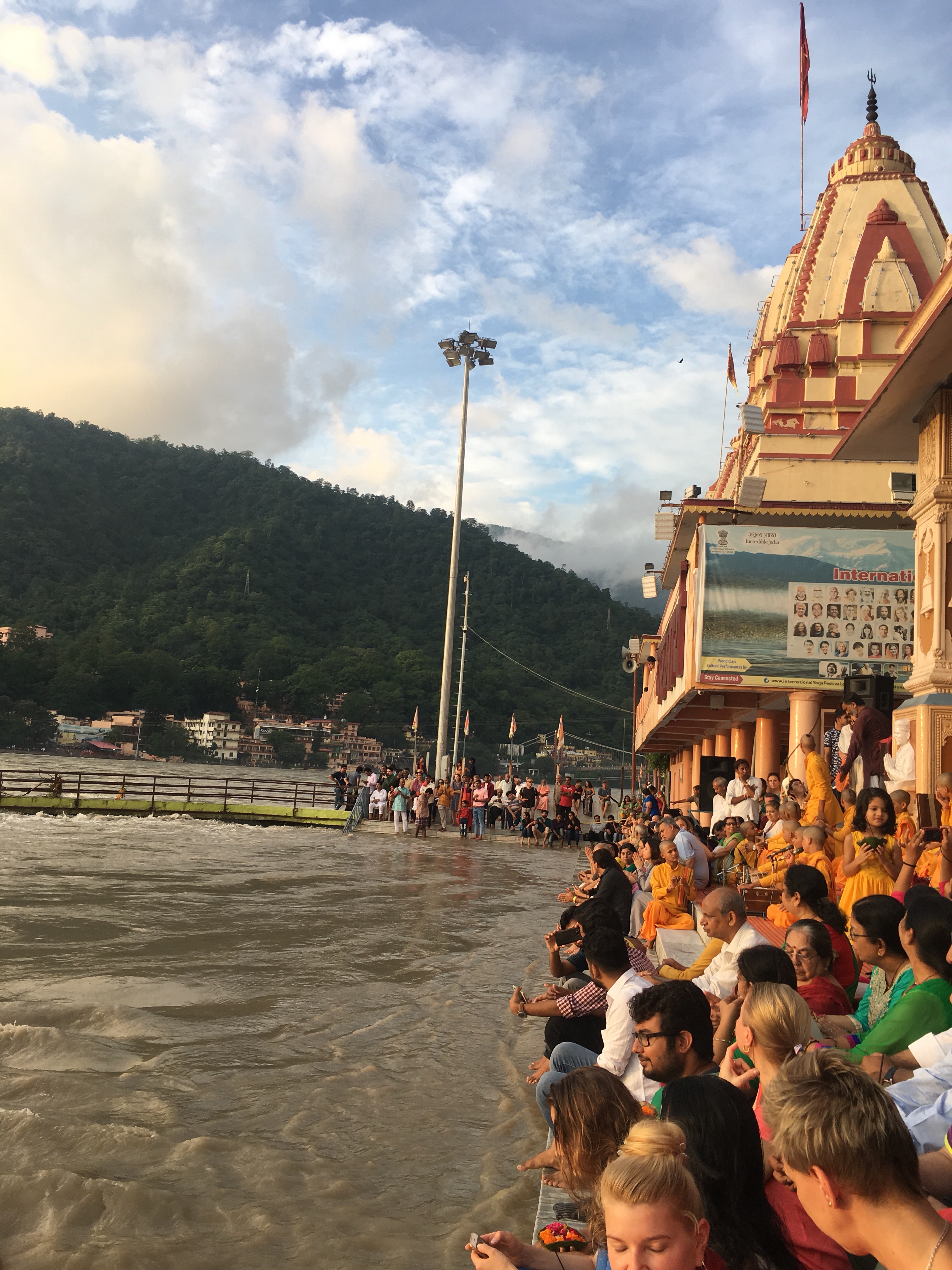 Cada día, al caer el sol, al igual que en el resto de India, se realizaba la última de las cinco Aarti: una pooja (ofrenda) especial, digna de ver. Nosotros participamos en esta ceremonia de fuego y cánticos en honor a la madre Ganges, en el Ashram Parmarth Niketan. Según comentaban los guías era muy turística y por eso era quizá la más concurrida. En el Ashram se daban clases de Yoga gratuitas cada día a las cuatro de la tarde.