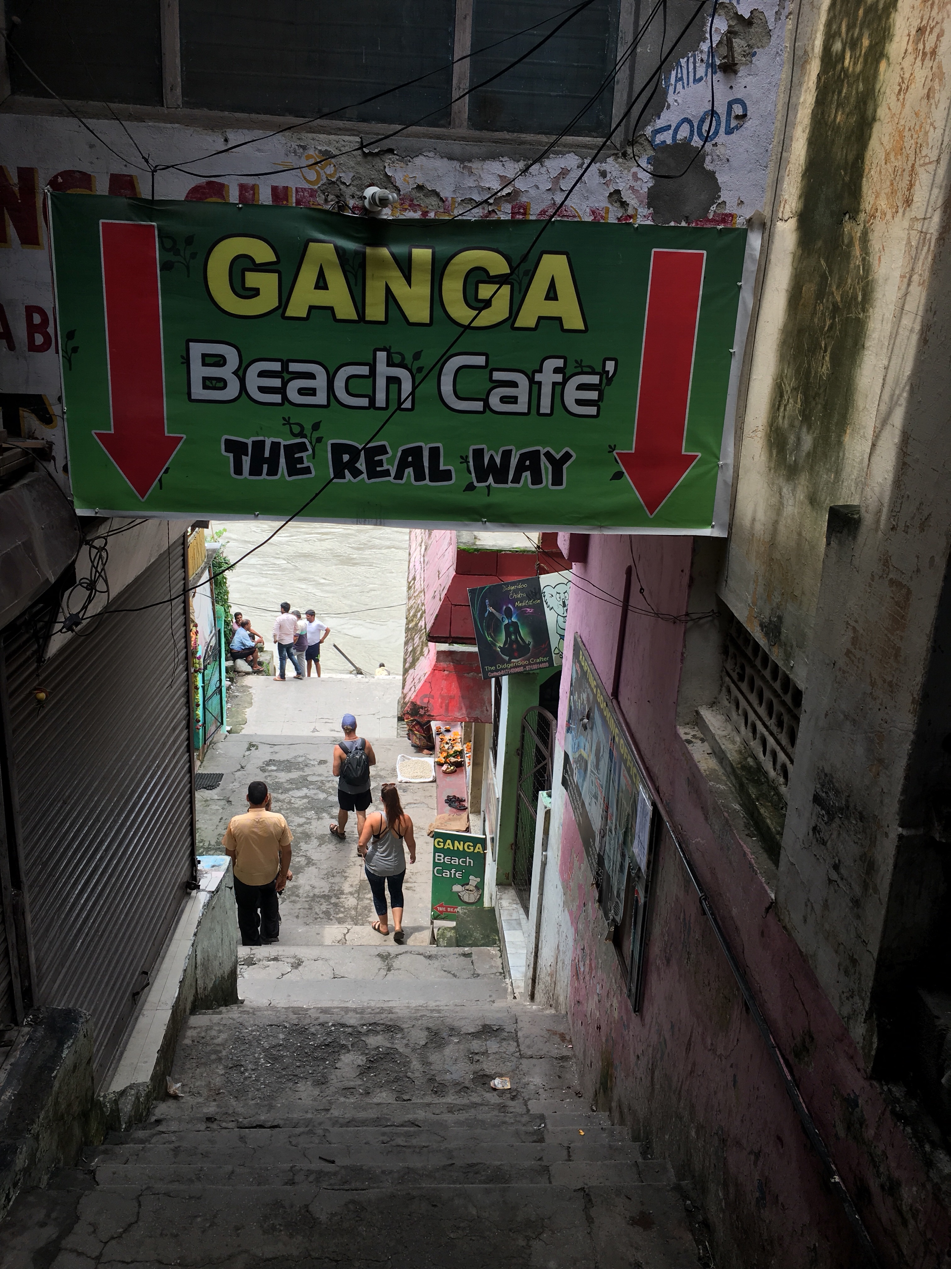 Rishikesh está bastante preparado para los turistas, tienes cajeros (puedes cambiar euros en alguna tienda también—si fallan los cajeros, lo que es muy habitual—, nosotros cambiamos en una joyería) tienes montones de cafeterías y restaurantes con comida local e internacional, con wifi y visitas increibles al río. Repetimos en el Ganga Beach justo al pasar el puente con unas bonitas vistas.