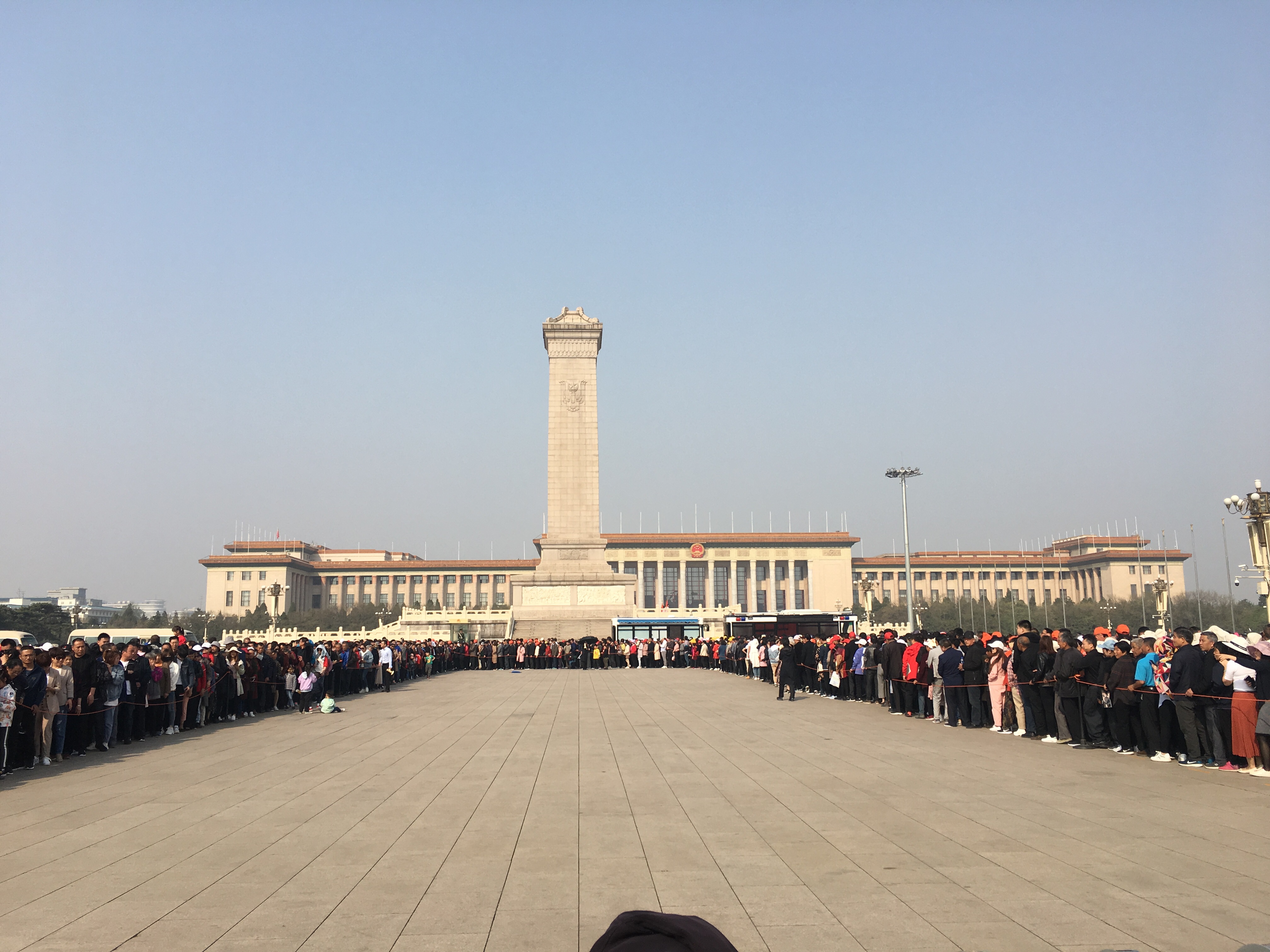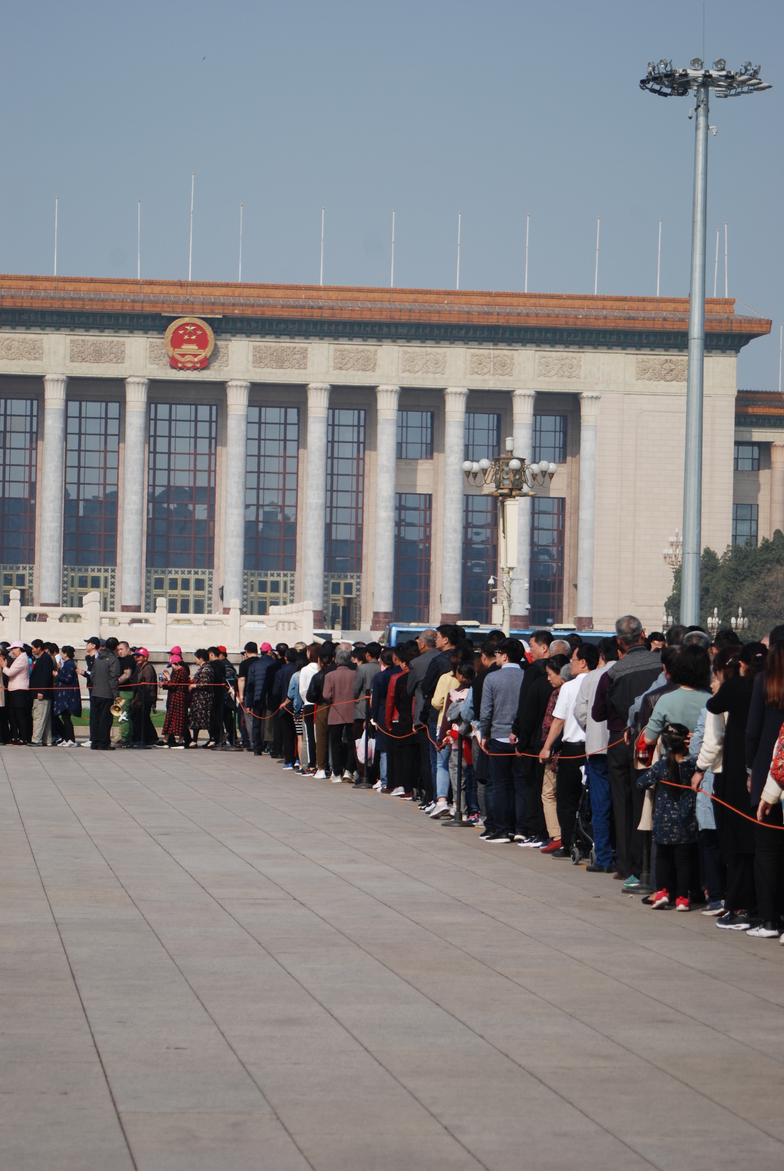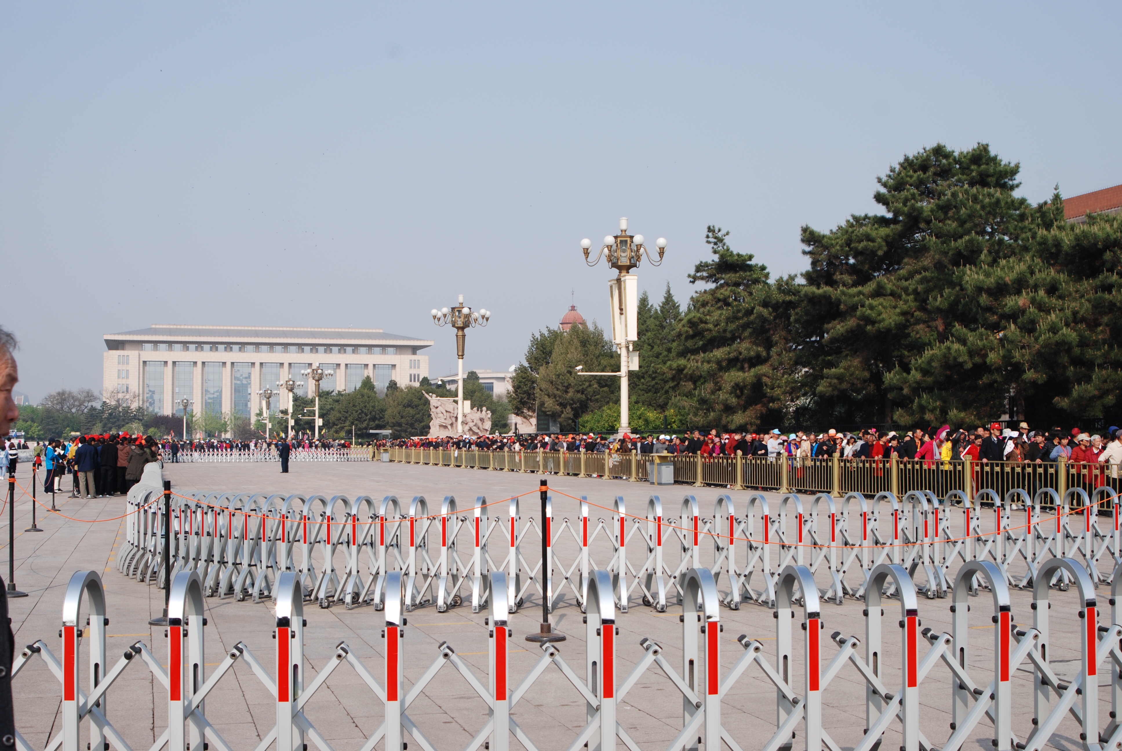 En el Centro un obelisco de piedra, de 38 metros de altura con una inscripción « Los héroes del pueblo son inmortales» y la tumba de Mao, accesible si tienes ganas de hacer cola junto con 8millones de chinos (chino arriba, chino abajo)…quizá la cola sea rápida porque viene a ser como la de Lenin en la Plaza Roja de Moscú, no te puedes parar ni fotografiar…es un Hola/Adiós…Así que, para otra vez con más tiempo…(las colas de las fotografías de abajo eran para la tumba de Mao)
