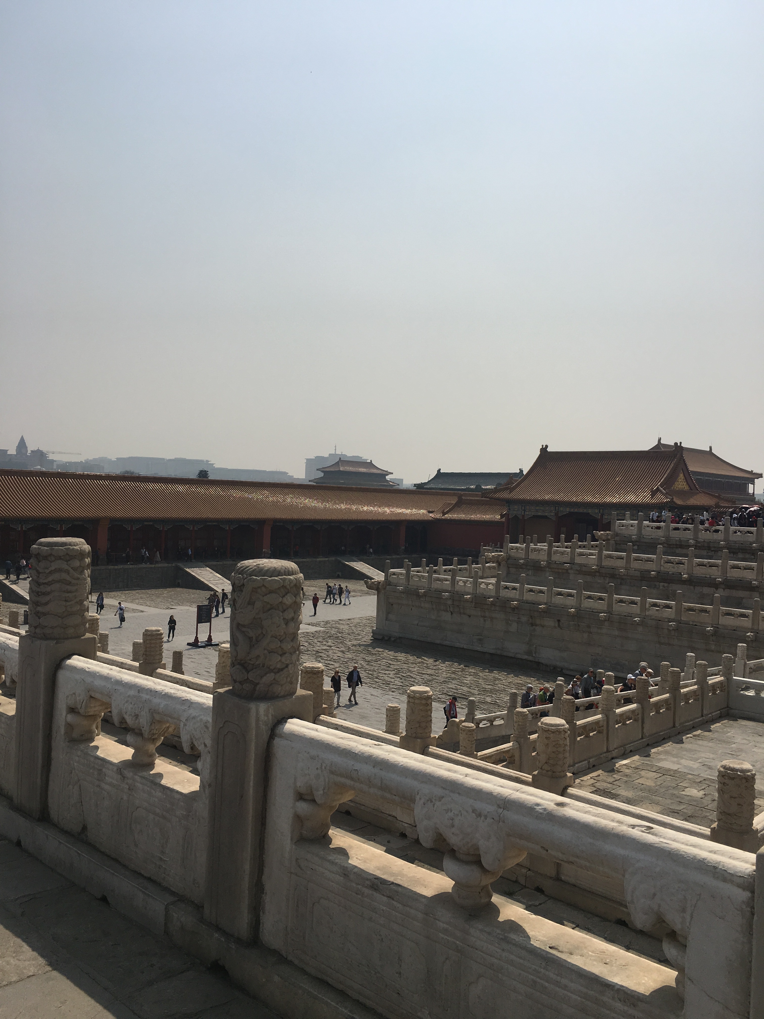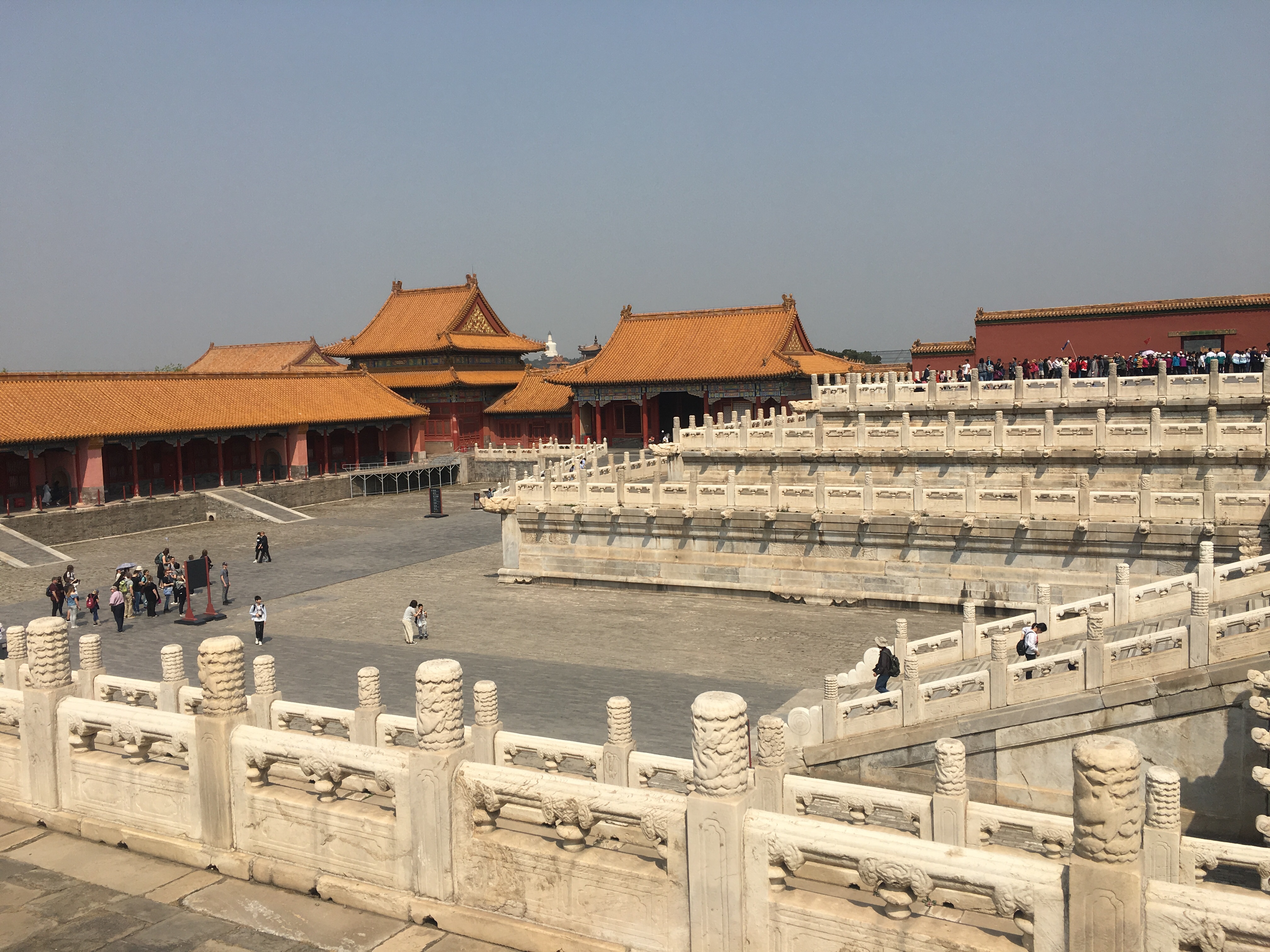 Se van sucediendo patios, pabellones, tejados con figuras de dragones que protegen de los incendios, salones sobre terrazas de mármol, e increíbles escalinatas con rampas de mármol con dragones tallados reservados para el carruaje del Emperador.