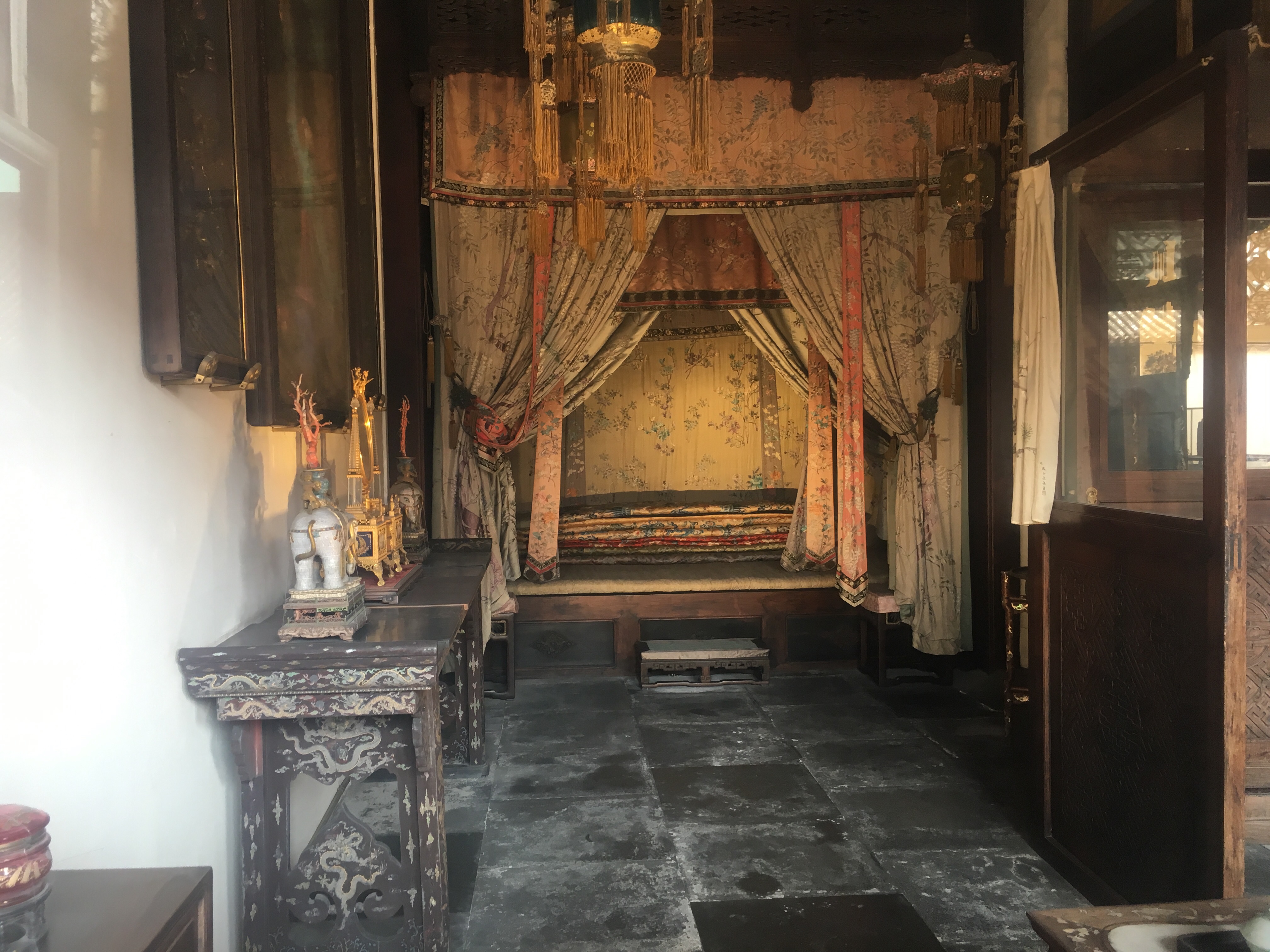 Dentro de los pabellones, no siempre se puede acceder y si se accede no hay nada especial, columnas rojas que dividen la estancia (99mil estancias en toda la ciudad prohibida) y techos decorados, se pueden ver algunas estancias, por ejemplo en la que dormía la emperatriz, a través de unos sucios cristales…no sé si para darle más realismo al asunto o por dejadez.. Pero ya podían aprender de los turcos y como mantienen Topkapi.