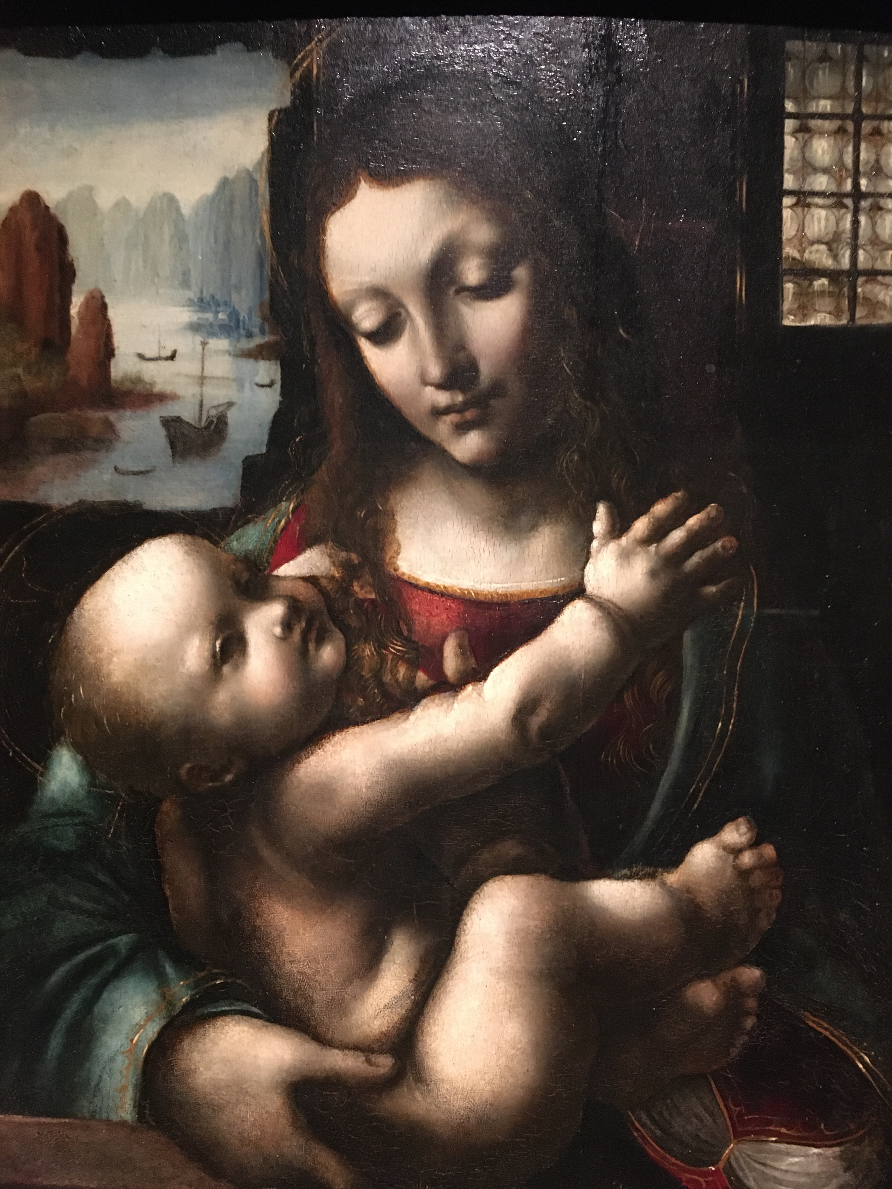 Suele pasar. Cuando te piensas que eres capaz de distinguir un cuadro de Leonardo del resto de pintores de la época, te tropiezas con los increíbles cuadros de los pintores lombardos, los «leonardescos», que fueron o discípulos de la escuela de Leonardo o influidos por él…(Francesco Melzi, Gian Giacomo Caprotti-Salai, Bernardino Luini, Giovani Boltraffio, Andrea Solario, Cesare da Sesto, Marco d’Oggiono, Francesco Galli…) entonces te das cuenta de tu ignorancia en materia de arte. Normal.