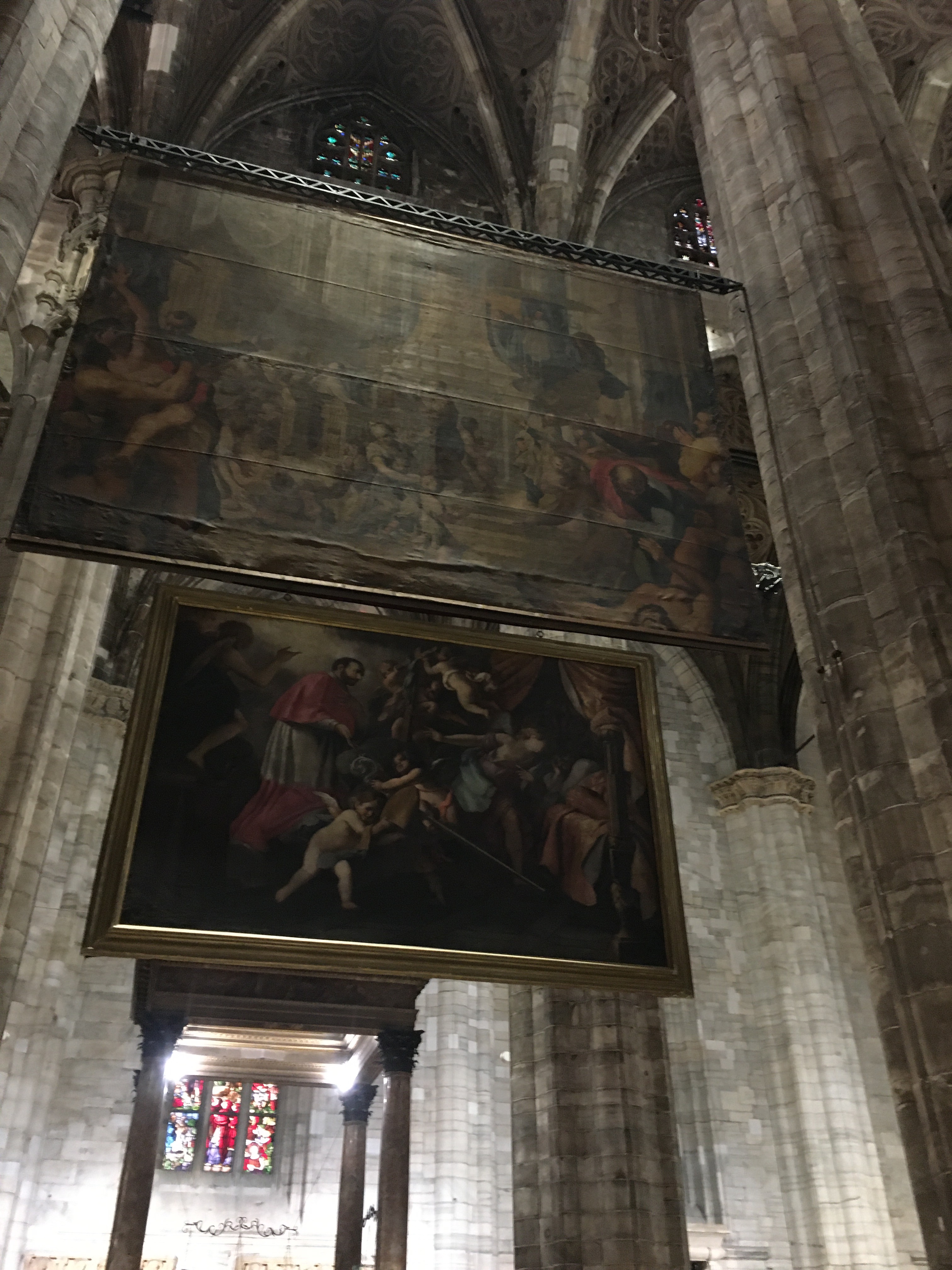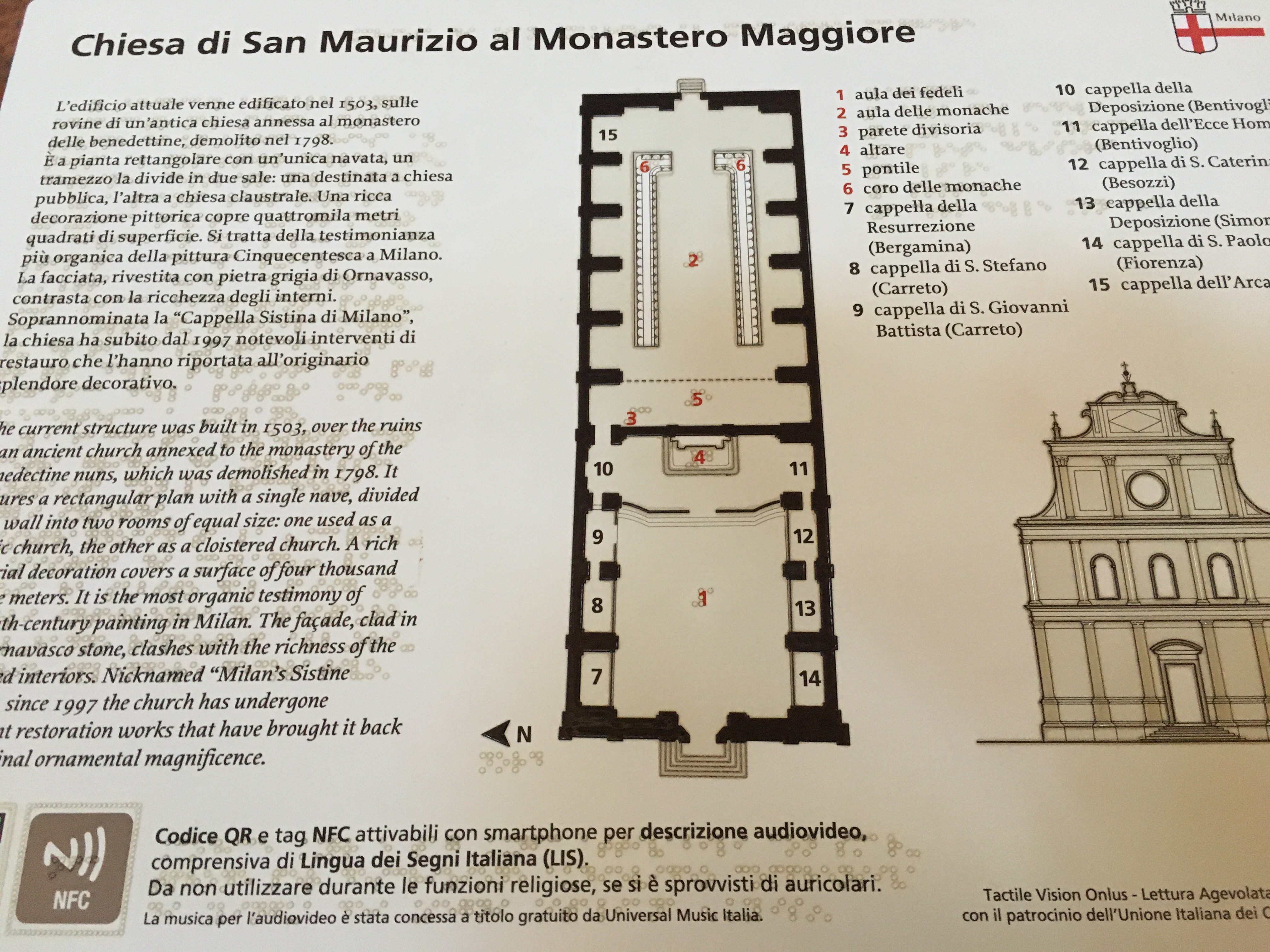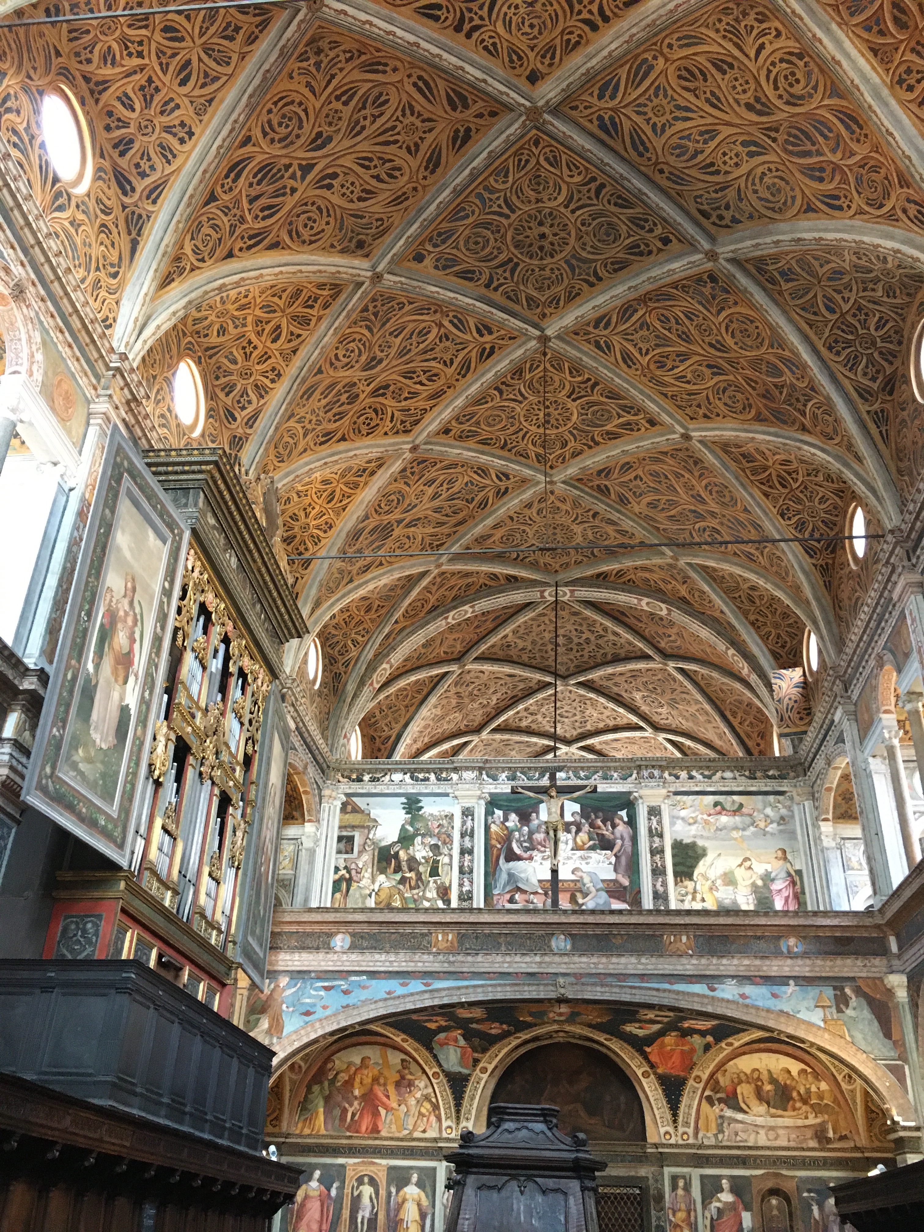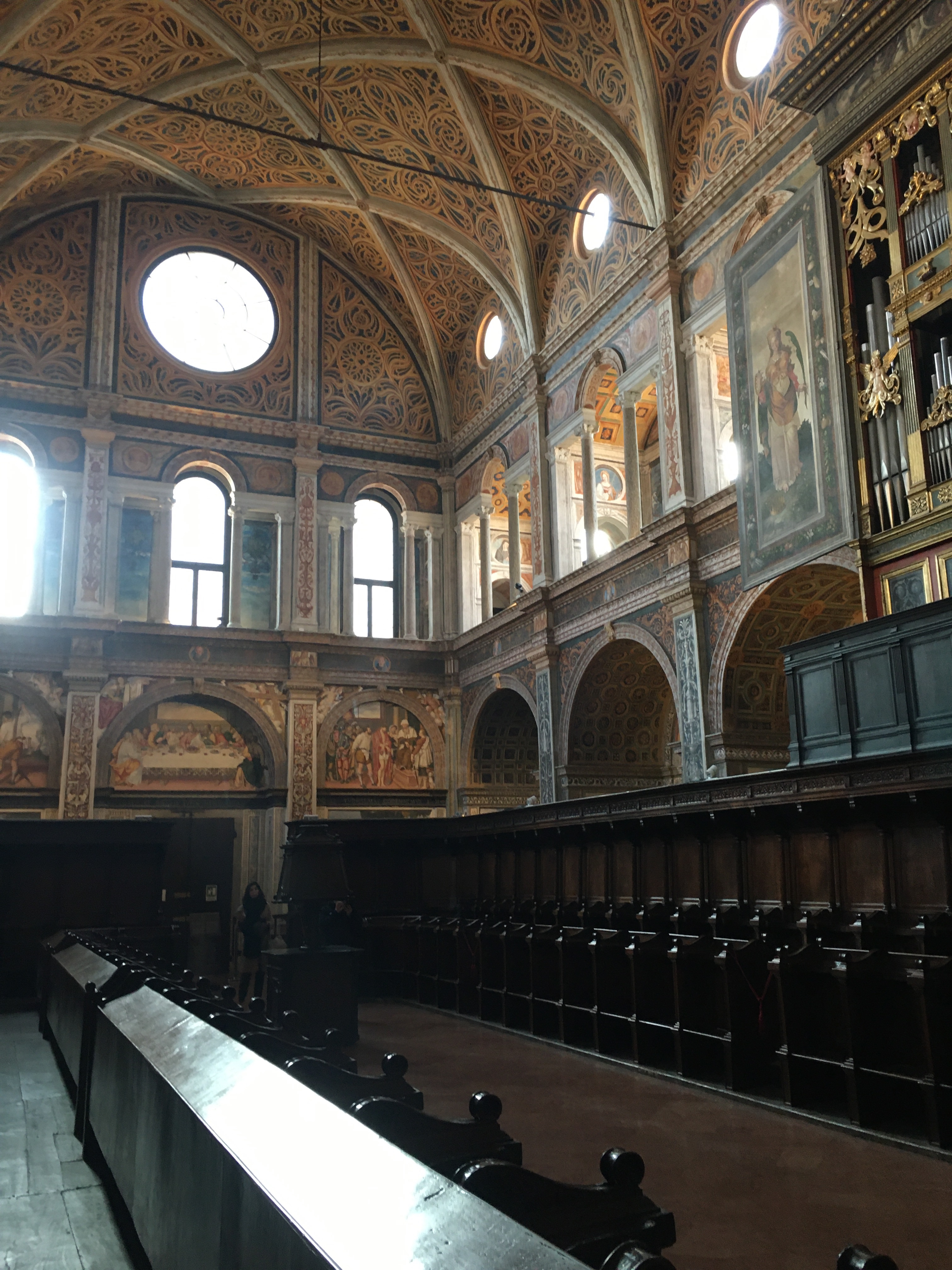 2. La iglesia en el antiguo Monasterio Mayor de San Mauricio al lado del museo arqueológico, en el corso Magenta. Antiguo convento benedictino con increíbles frescos del s. XVI y llamada la «Capilla Sixtina» de Milán. Frescos del diluvio universal, la adoración de los reyes…