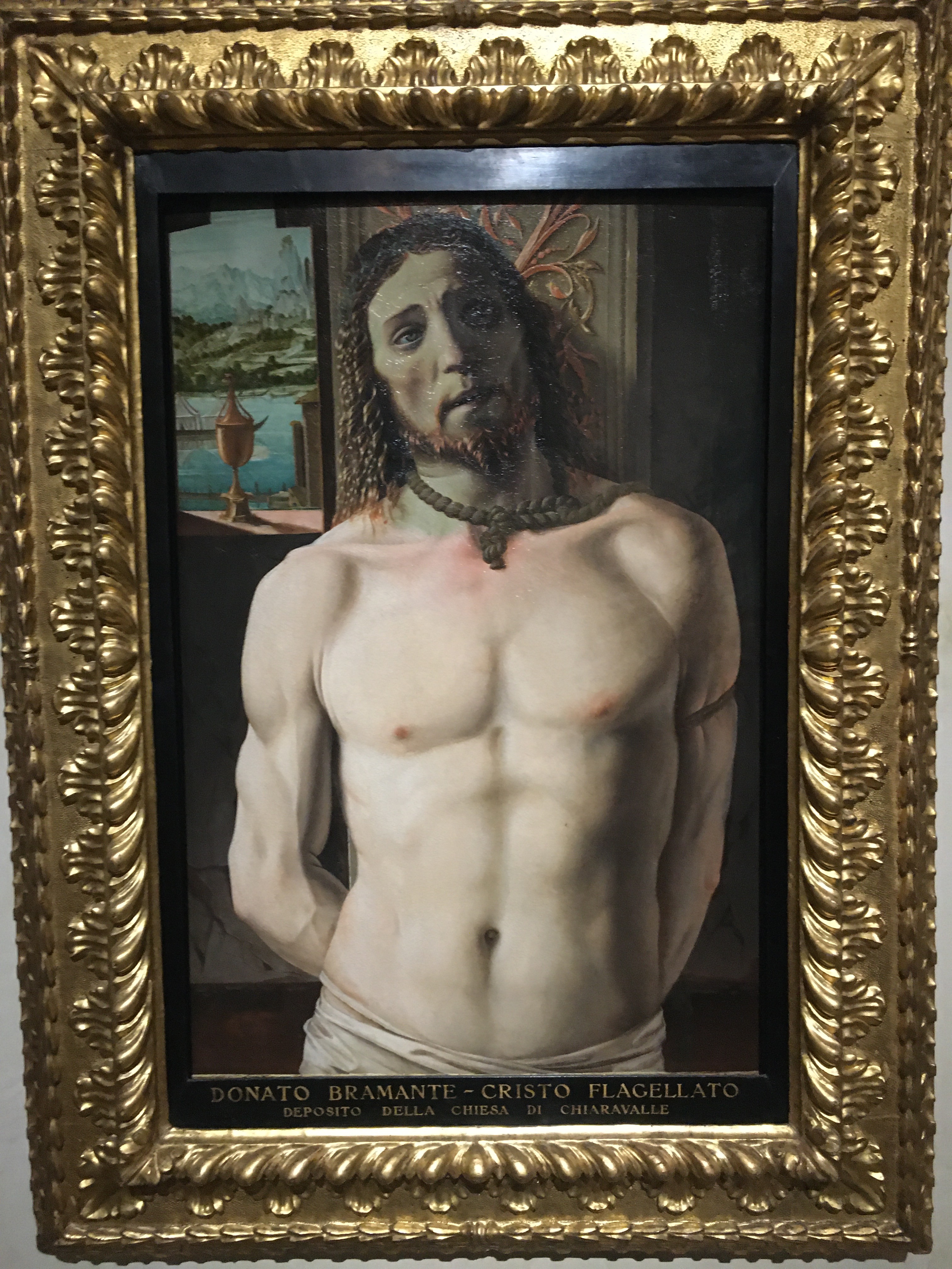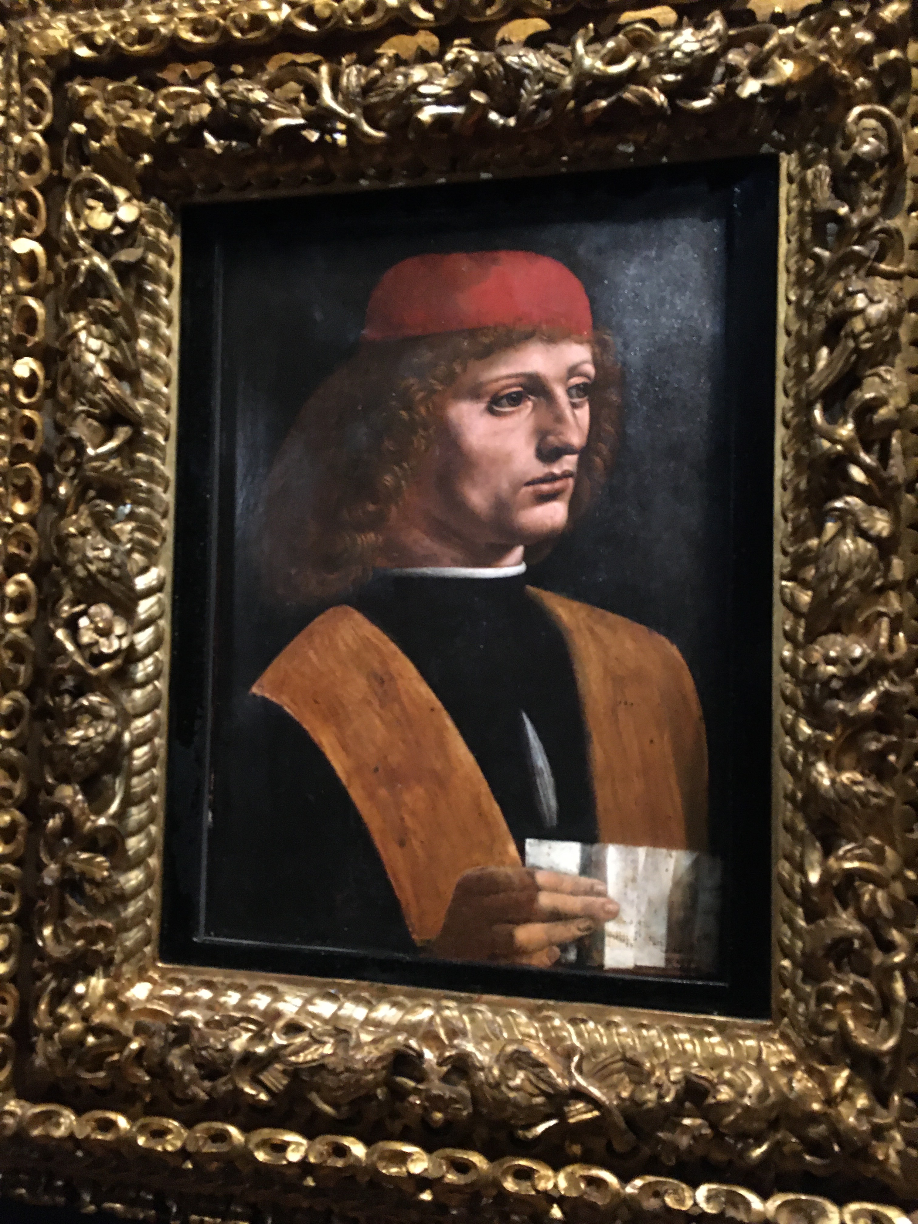 En la pinacoteca hay obras de la escuela de Leonardo y, normalmente, encuentras alguno de los famosos cuadros de Leonardo (si no están de ruta) como el ‘Retrato de un músico’. (Cuando yo fui estaba de visita en el Louvre..)