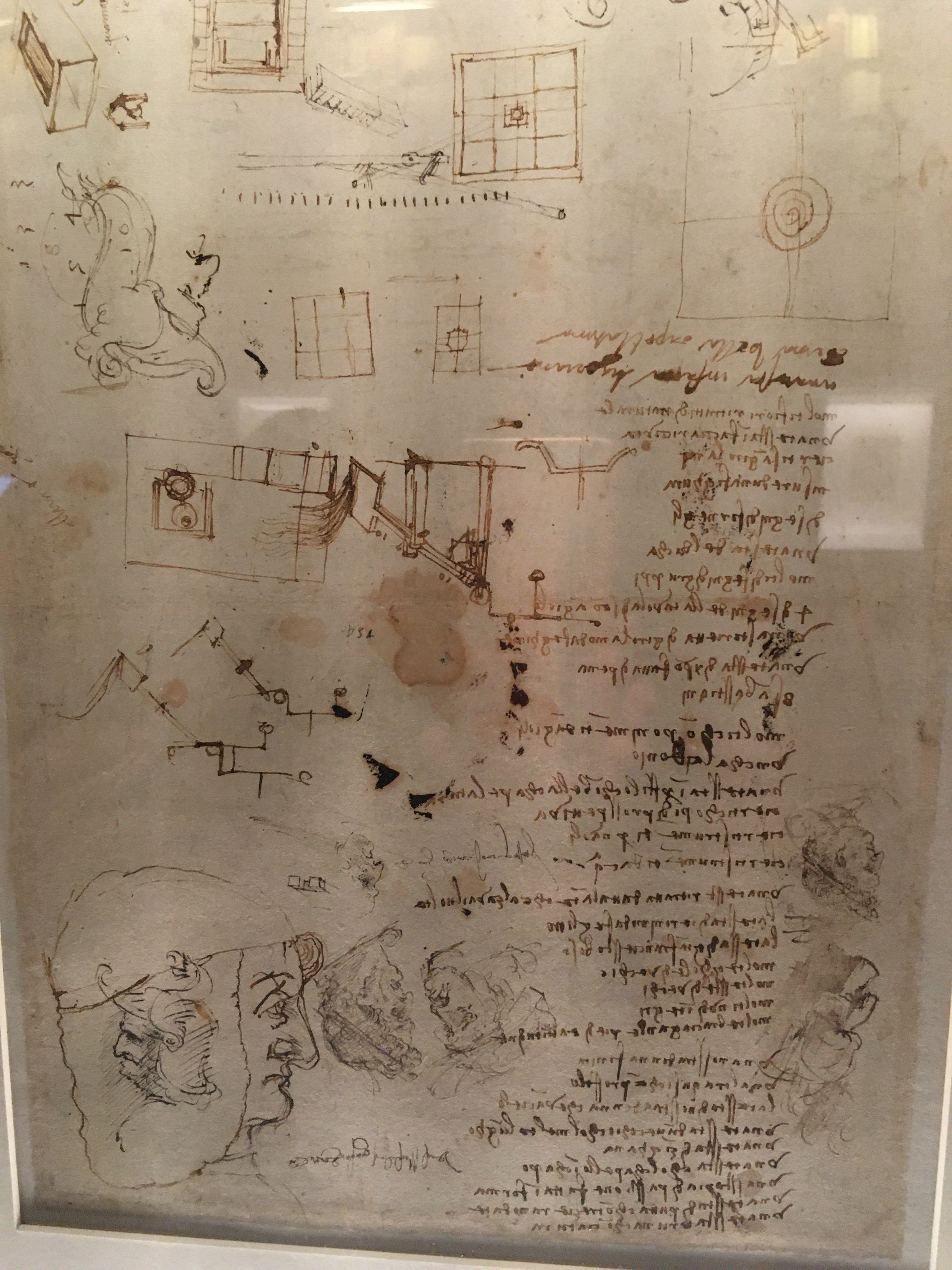Desilusión: la Biblioteca Ambrosiana y el códice Atlántico. Se exponen algunos folios en rotación, es decir puede que no estén expuestos en ese momento los más interesantes.