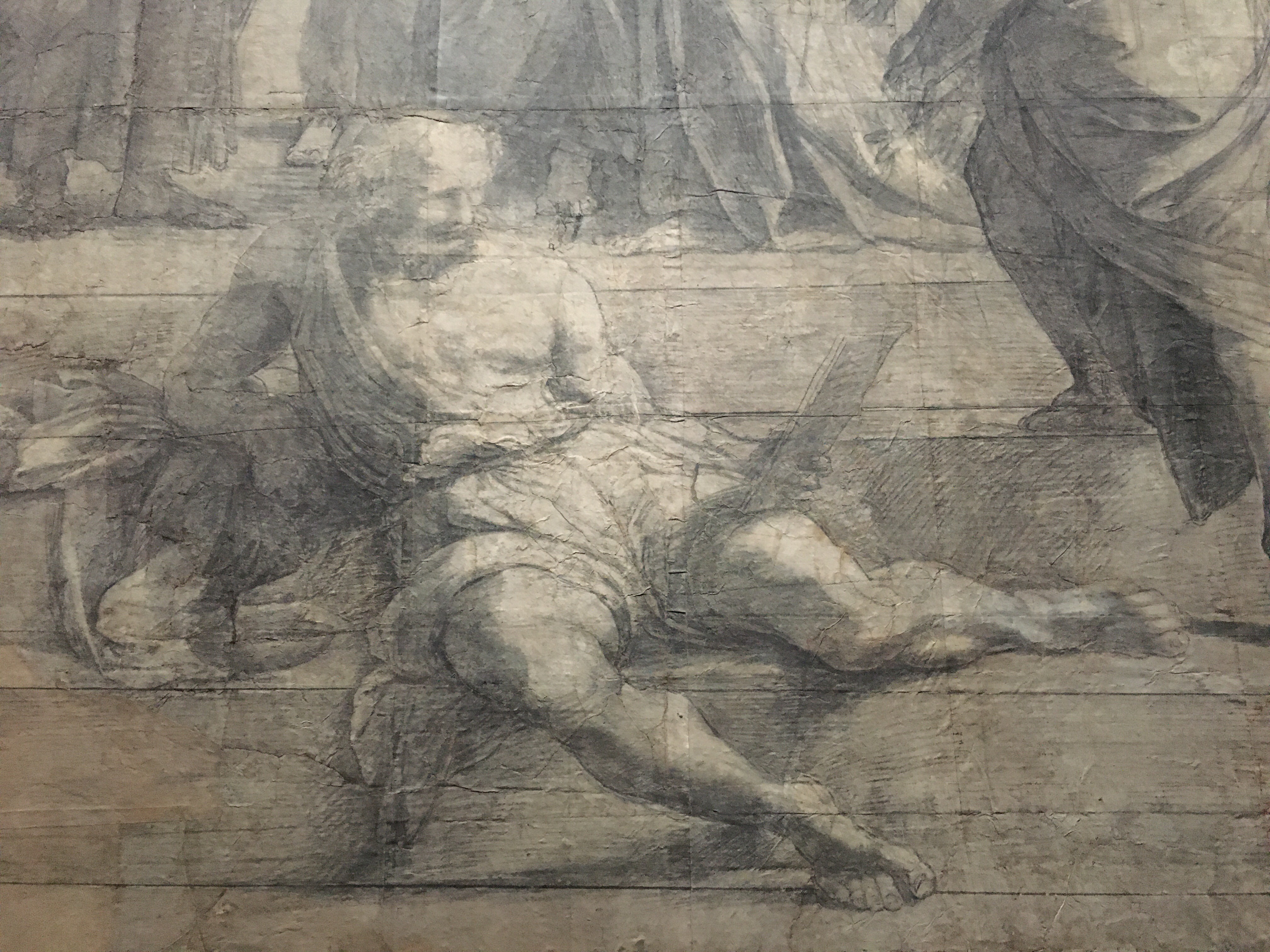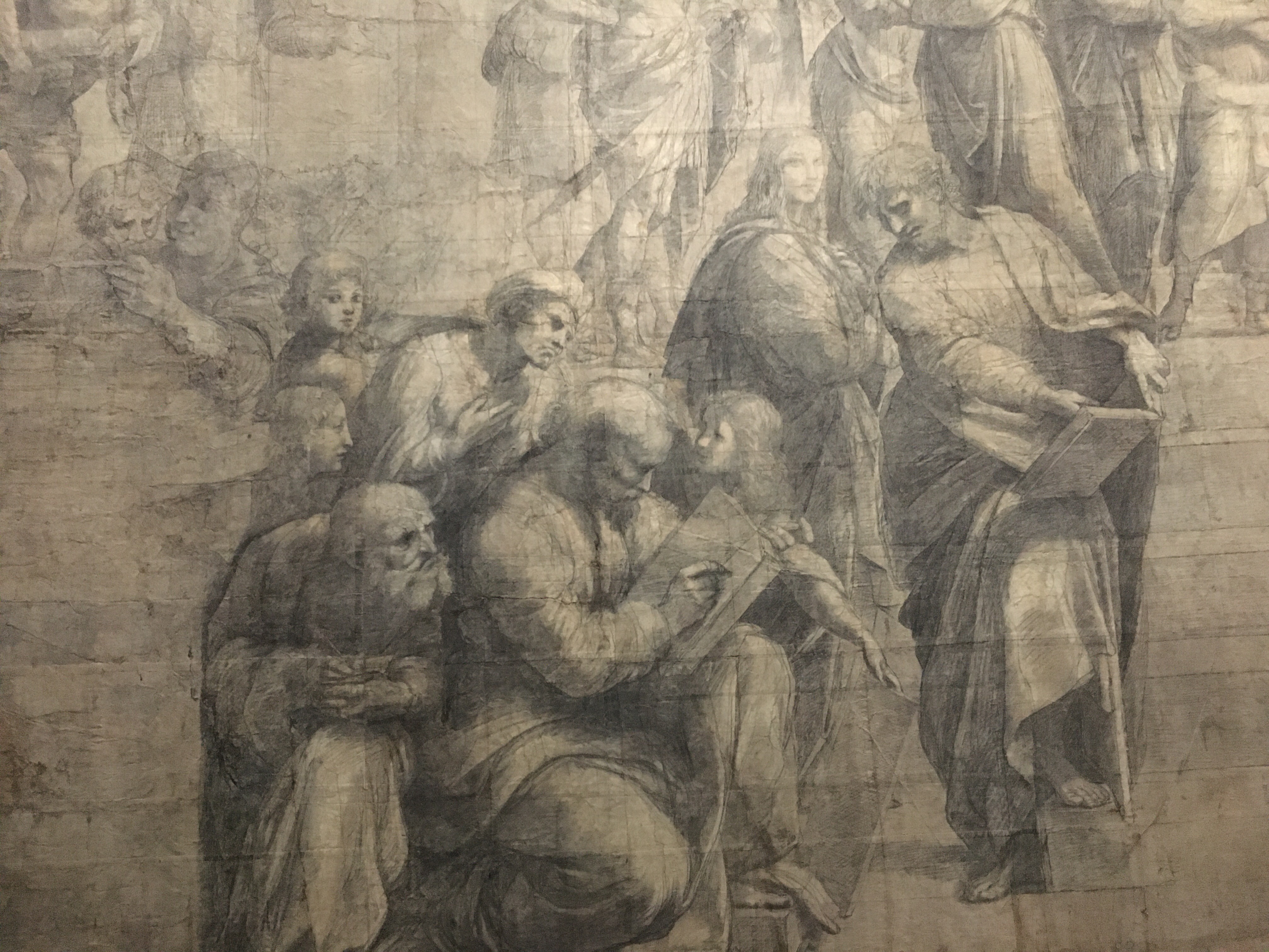 Sin embargo y contra todo pronóstico lo más increíble de la Pinacoteca ambrosiana es el cartón en el que Rafael preparó ‘La escuela de Atenas’…Es un dibujo, en carboncillo sobre un cartón de casi tres metros de alto por ocho de ancho a tamaño natural preparatorio del fresco que está en la ‘Sala de la Signatura’ en el Palacio Apostólico vaticano….alucinante!