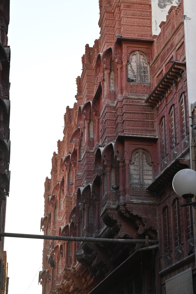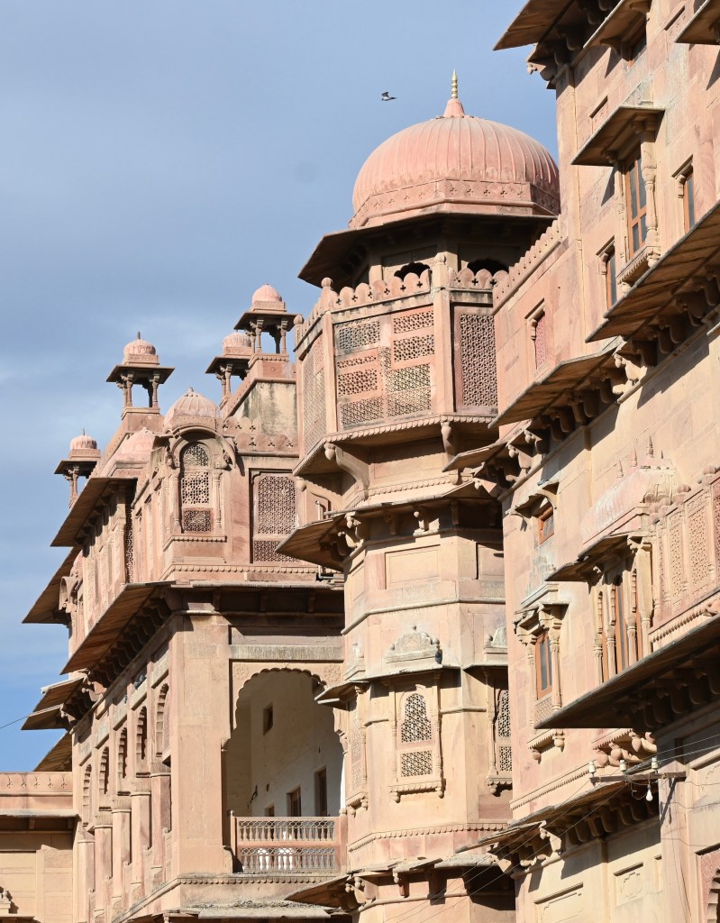 3. Havelis en la ciudad vieja. El más famoso es el Rampuri Haveli, una enorme mansión levantada en el siglo XV, y que desde el siglo XX alberga el Bhanwar Niwas, un hotel mandado construir por una rica familia de comerciantes de Bikaner. Llegué al barrio viejo en tuc-tuc, las calles son muy estrechas así que es la mejor manera de llegar. Solo lo vi desde fuera. La ruta i/v en tuc-tuc, incluyendo havelis y templo, desde el fuerte, fueron 300 rupias (sin regatear)