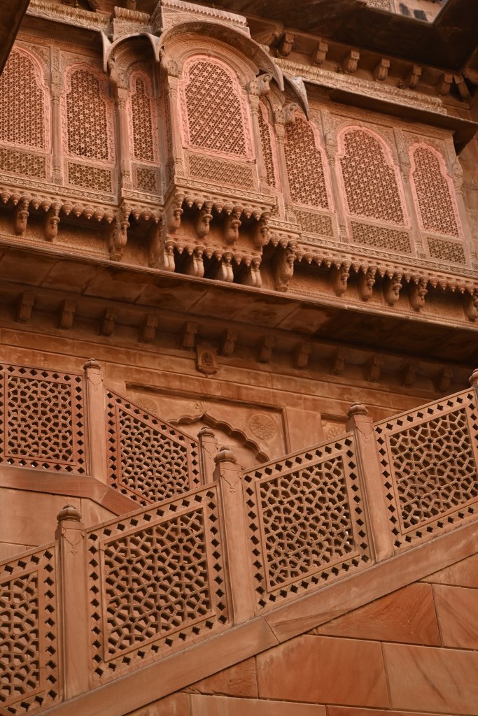 1. Un fuerte: El fuerte de Junagarh edificado entre 1571 y 1612 por Raja Rai Singh, el sexto gobernador de Bikaner. Como excepción de lo que es habitual en el resto de ciudades, el fuerte no está en una colina. Había leído que era barato pero yo diría que me costó unas 700 rupias. 500 por ser visitante extranjero (para los locales el precio es de risa) y otras 200 por la cámara. Esto será siempre igual en la mayoría de lugares, pagar por entrar y pagar por hacer fotos (si te dejan hacer fotos y si te dejan acceder, porque en algunos templos hinduistas no dejan acceder a los extranjeros…) Que maravilla las religiones, así, en general..