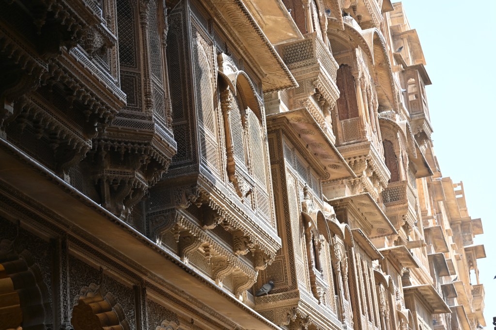 Dos havelis más, el Nathmal KiHaveli y Salim Singh Ki Haveli son edificios tallados y el trabajo parece como que está tallado en madera… el interior es un laberinto de escaleras y pequeños habitáculos. En algunos aún viven algunos animalitos…pero no molestan mucho..