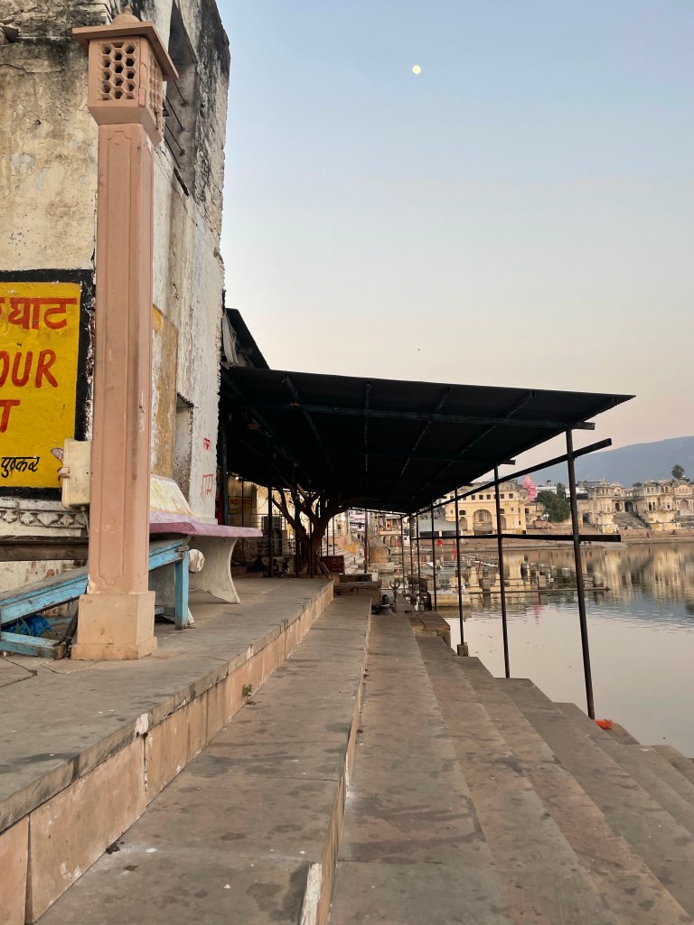 Primero, Pushkar me encantó. Segundo, el hotel también, aunque estaba muy alejado de los ghats como para ir andando tú sola a la noche. Una de cal y otra de arena. Después de todo lo vivido, ¿no me puedes poner en un hotel al lado del lago? Os lo recomiendo. Un hotel en el lago.