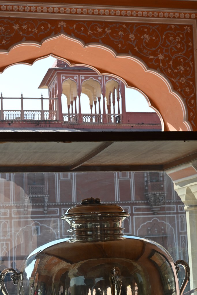 7. El palacio de la ciudad. El palacio de Jaipur. Situado en el corazón de la ciudad vieja, cuenta con magníficos patios, jardines, cenotafios y edificios reales. Fue concebido y construido por el fundador de Jaipur, el rey Rajput Maharaja Sawai Jai Singh II, y ampliado por los gobernantes que lo habitaron más tarde. Hay una parte en la que aún viven el actual Maharajá y su familia.