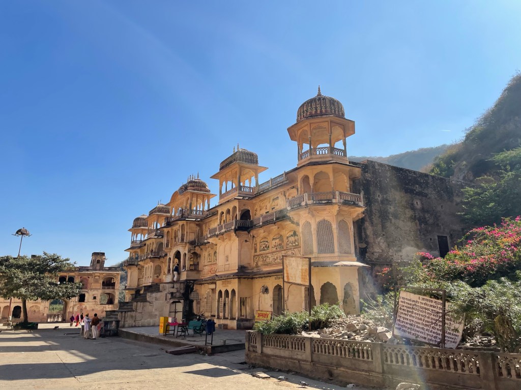 Salimos a las 8. Si ya se que dije que pasaba, pero el que madruga llega antes y tenía varios planes para Jaipur, ya que no es mi primera visita y 1) quiero ir al cine 2) no quiero ir al Jantar Mantar (observatorio) y el guía me propone visitar un templo que queda cerca.